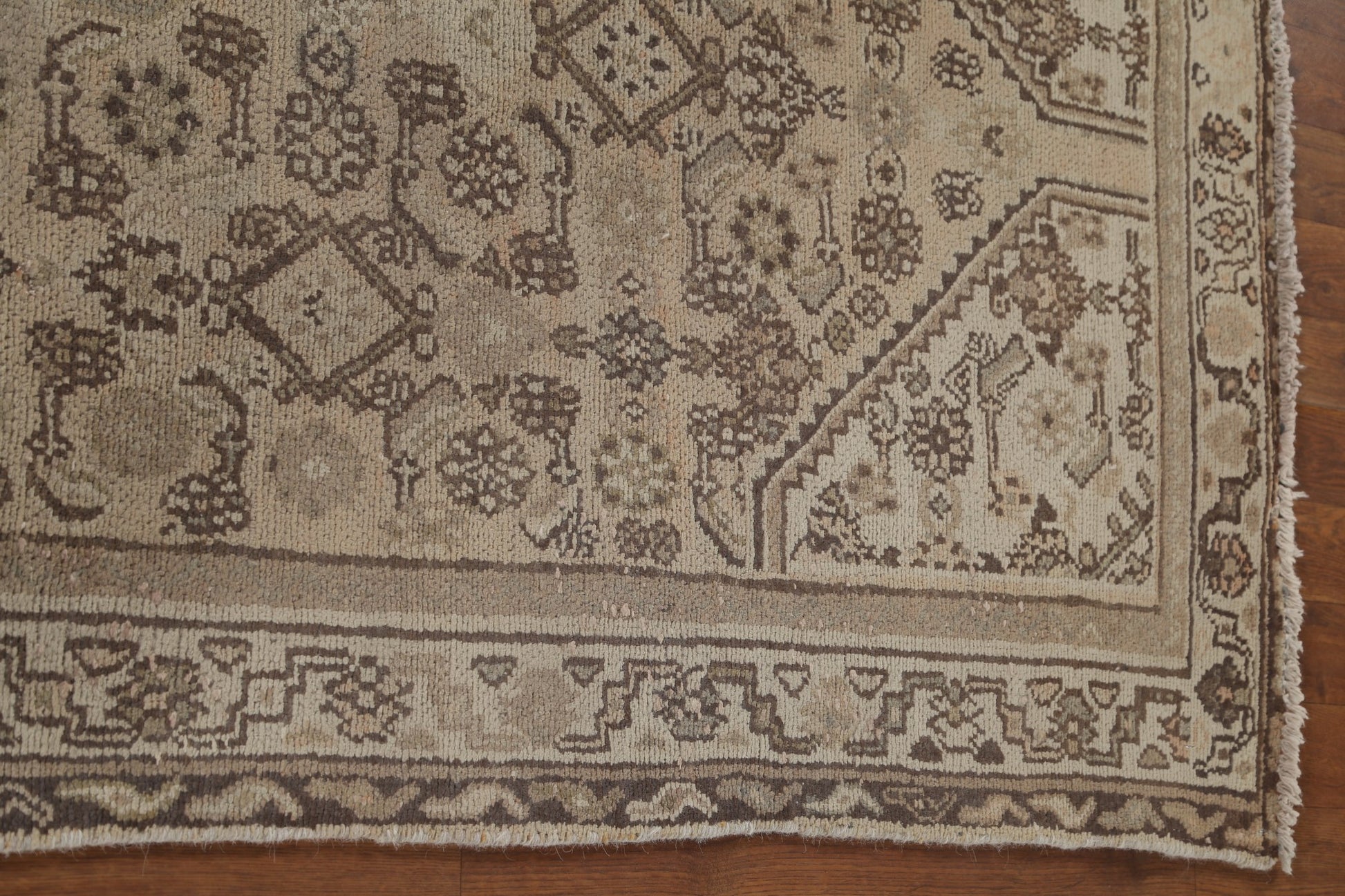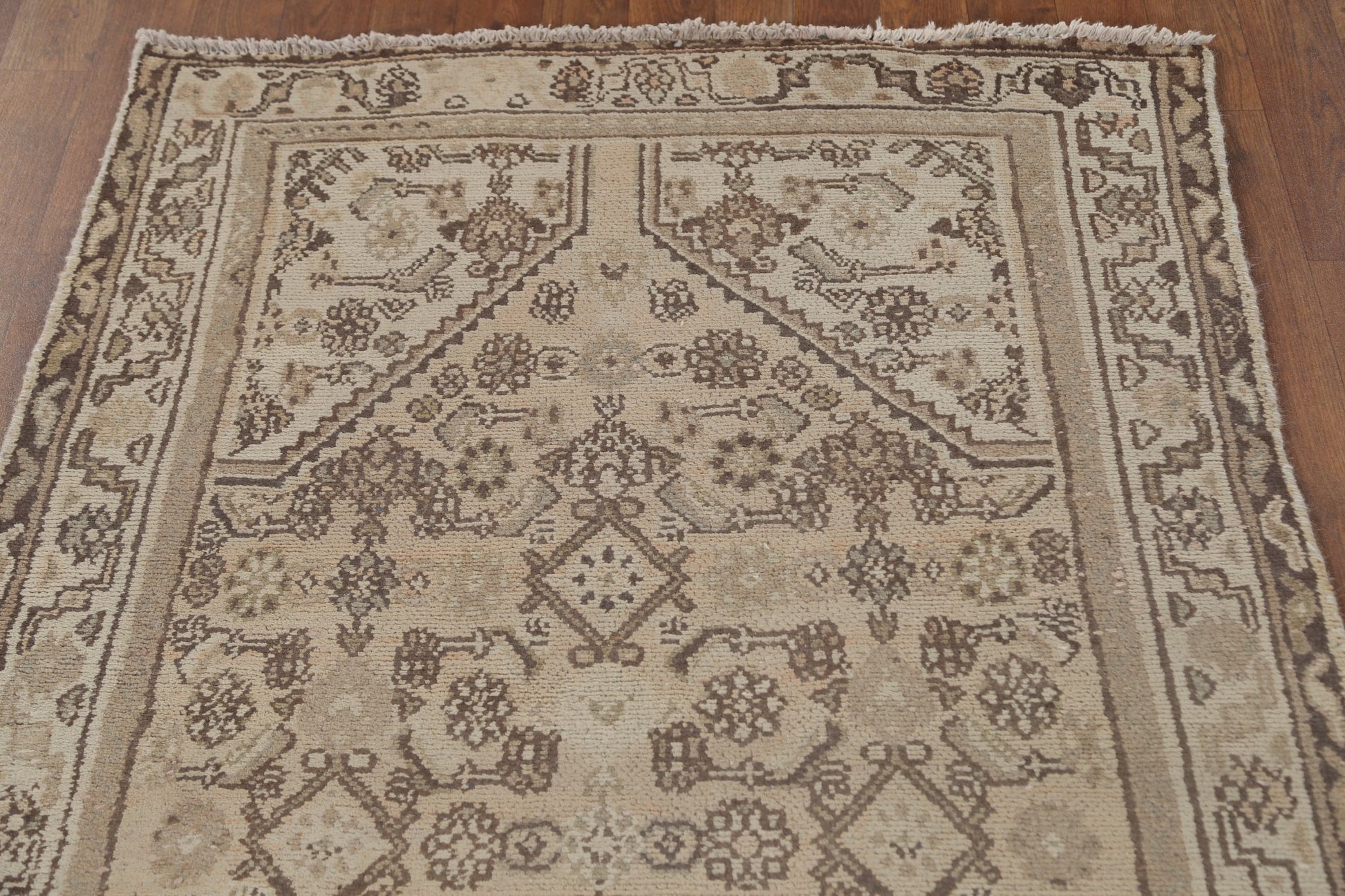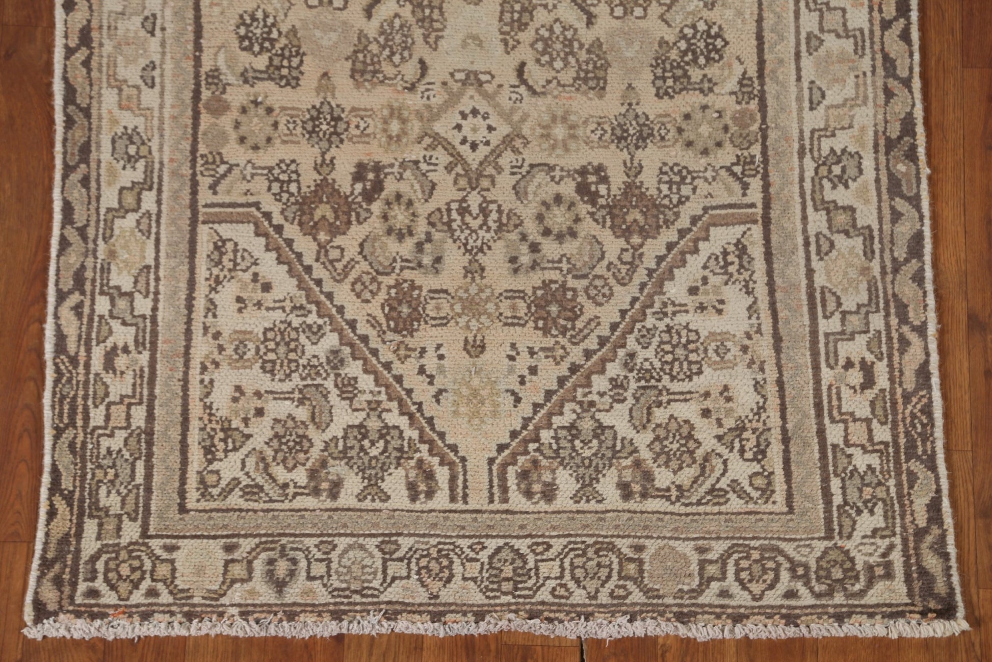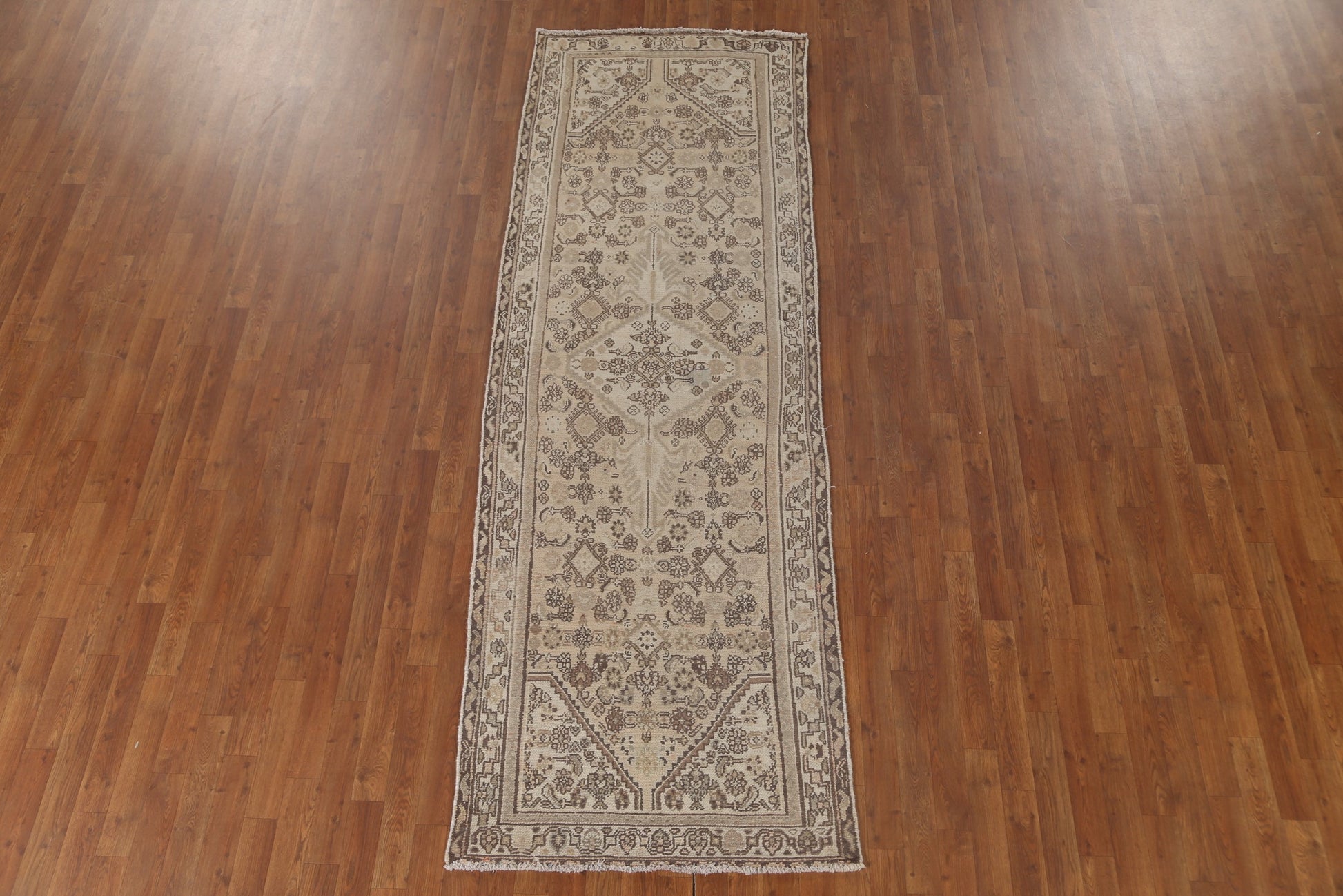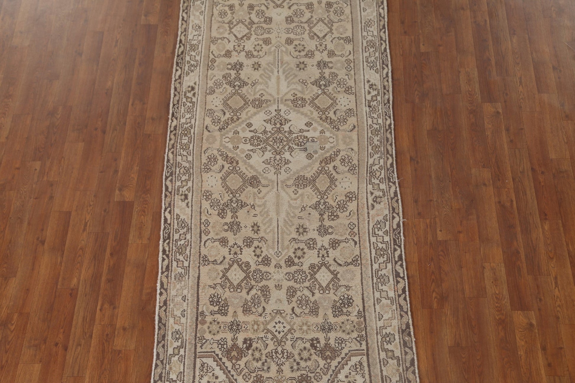 A Beautiful Genuine Persia ( Persia ) Hamedan rug is Hand Knotted by skillful weavers in Persia ( Persia ) with 100% Wool Material. This rug is in Very Good (Evenly Low Pile-Repair) condition. dimensions are 9' 9'' X 3' 3'' in foot and 297 X 99 in centimeter. the primary color is Beige & Ivories.
