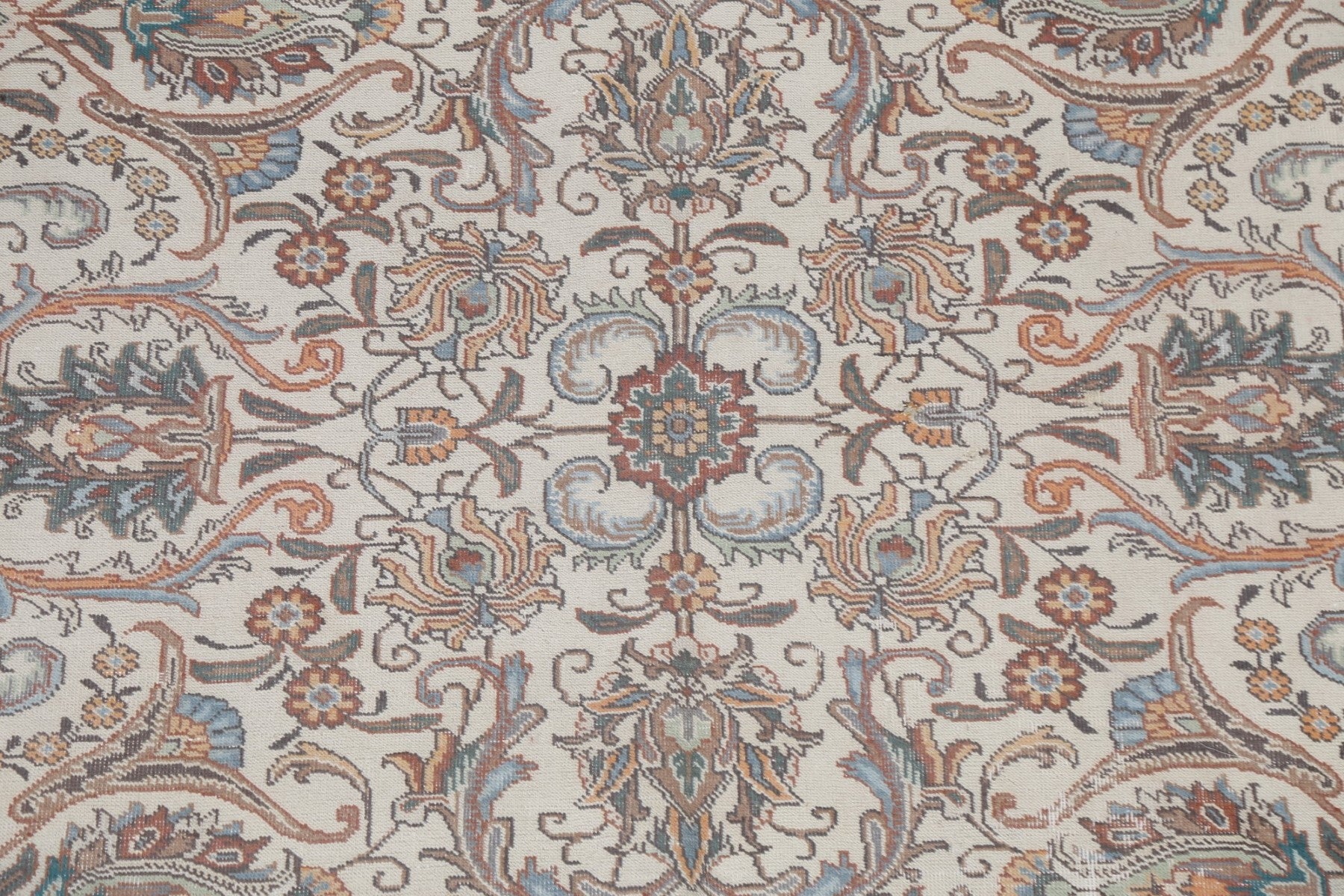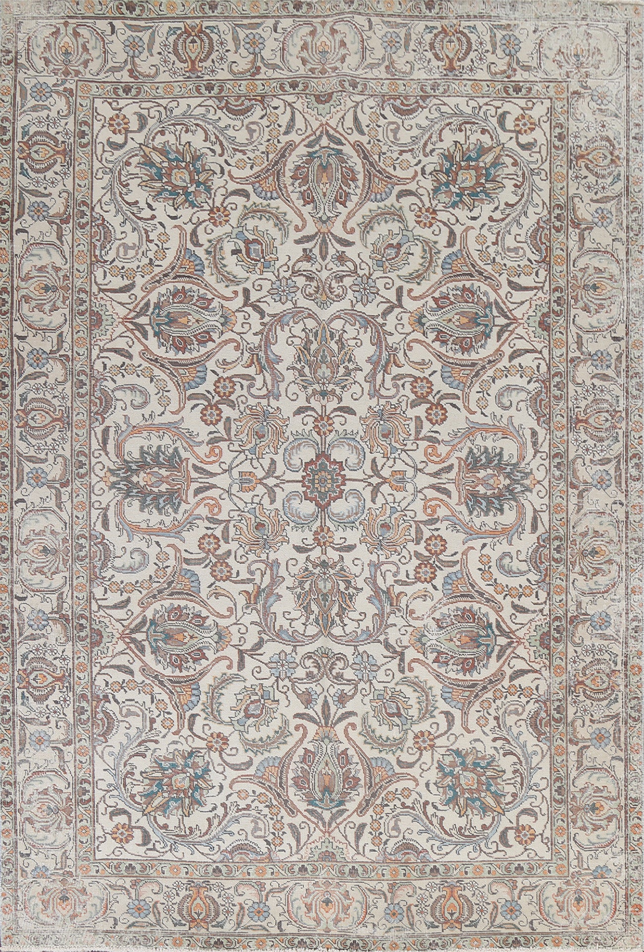 A Beautiful Genuine Persia ( Persia ) Tabriz rug is Hand Knotted by skillful weavers in Persia ( Persia ) with 100% Wool Material. This rug is in Very Good (Evenly Low Pile) condition. dimensions are 9' 3'' X 6' 7'' in foot and 282 X 201 in centimeter. the primary color is Beige & Ivories.
