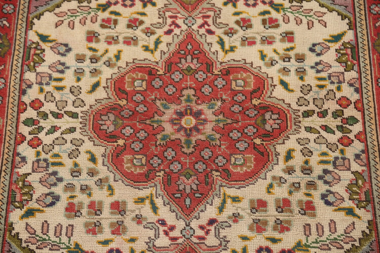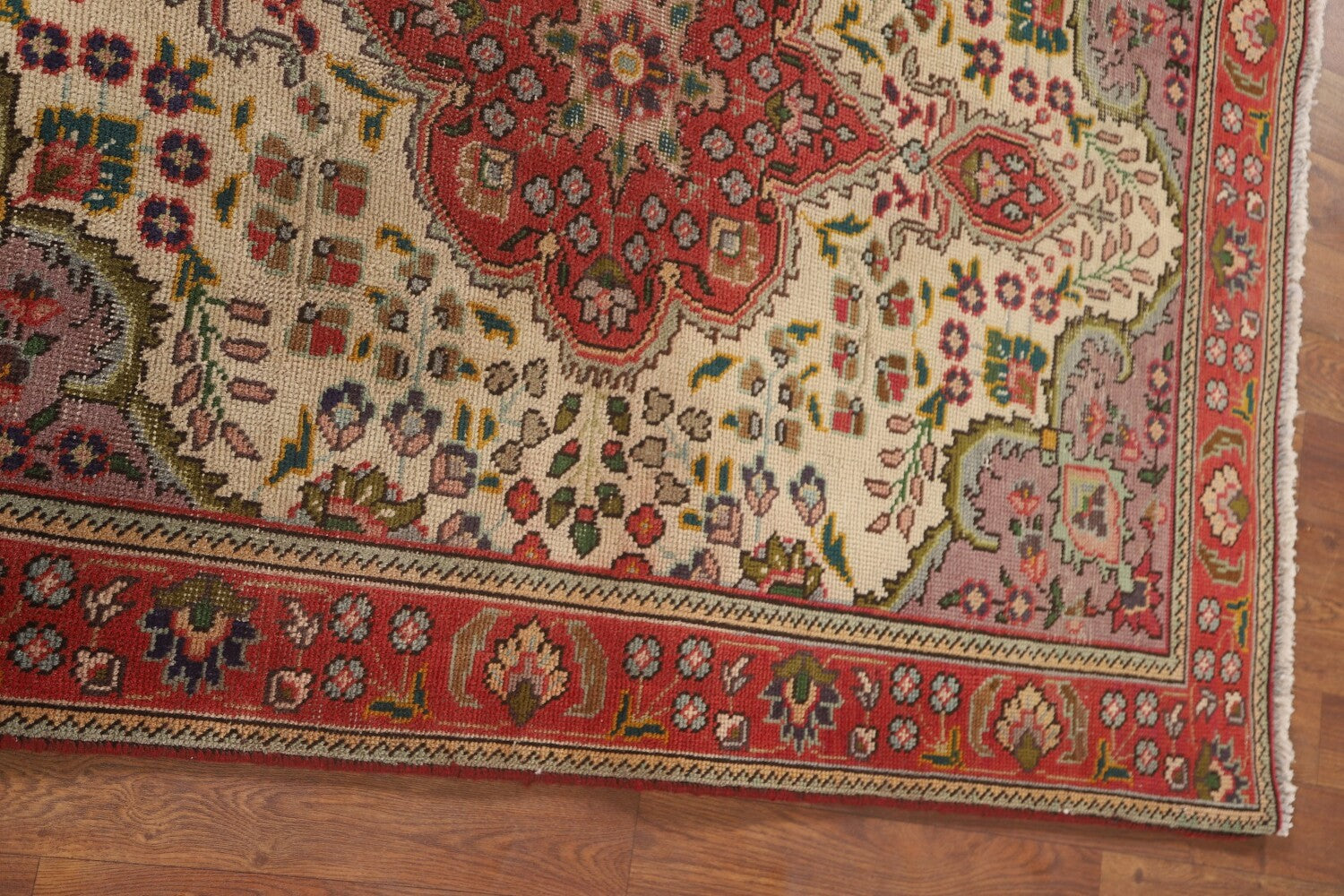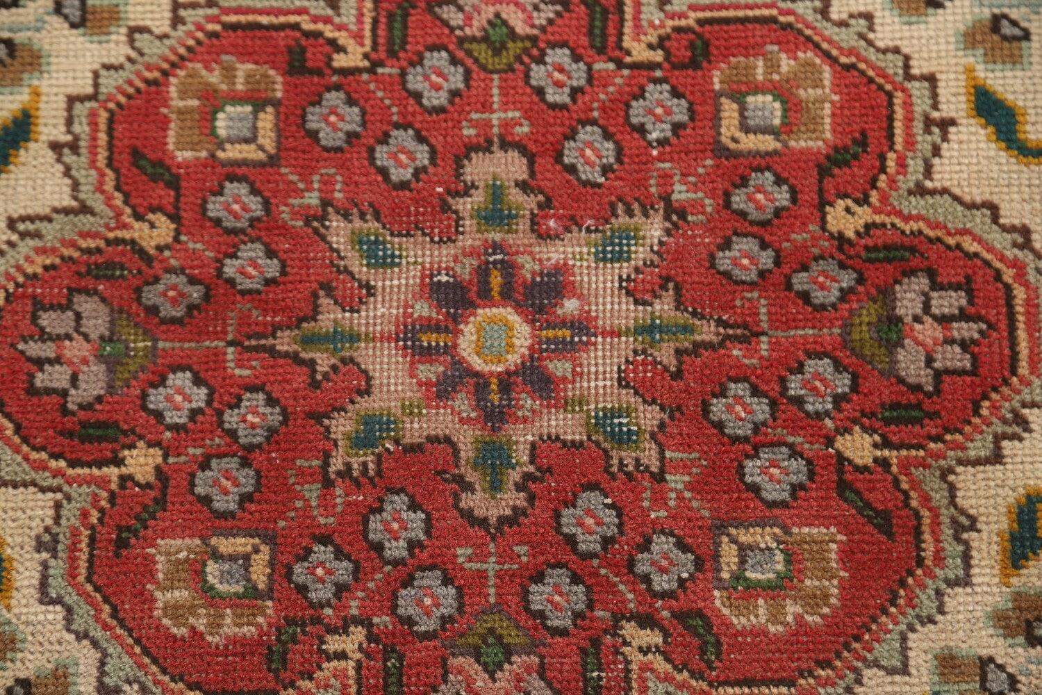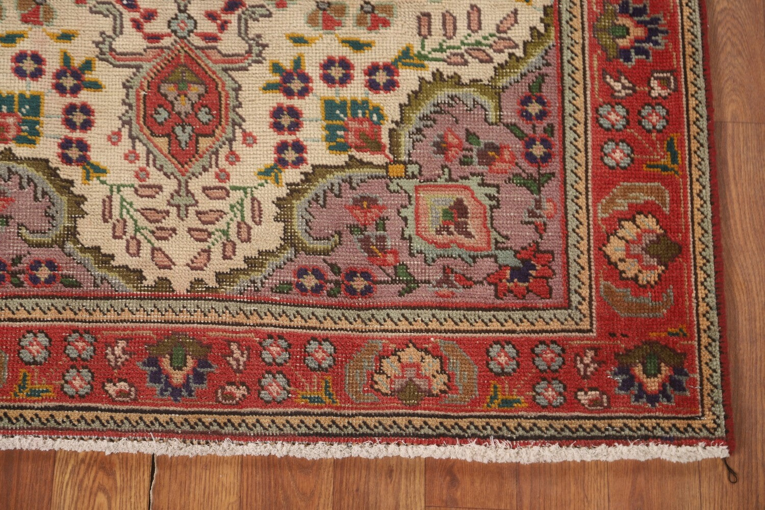 A Beautiful Genuine Persia ( Persia ) Tabriz rug is Hand Knotted by skillful weavers in Persia ( Persia ) with 100% Wool Material. This rug is in Very Good (Evenly Low Pile) condition. dimensions are 4' 7'' X 3' 4'' in foot and 140 X 102 in centimeter. the primary color is Beige & Ivories.