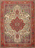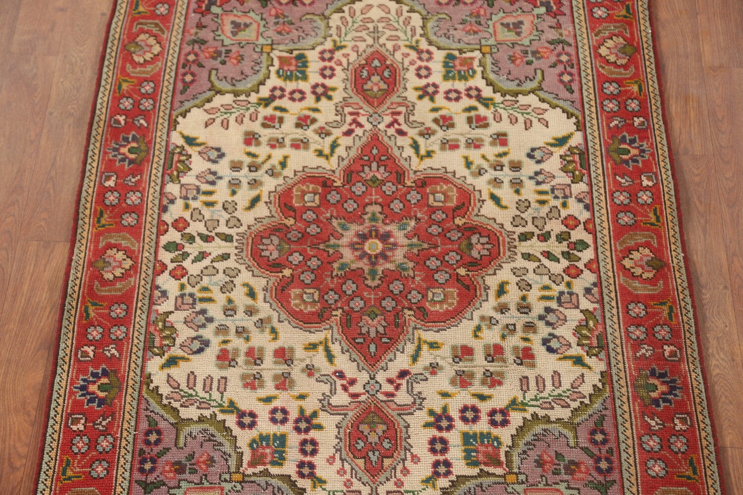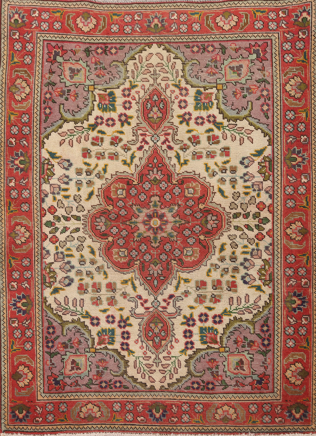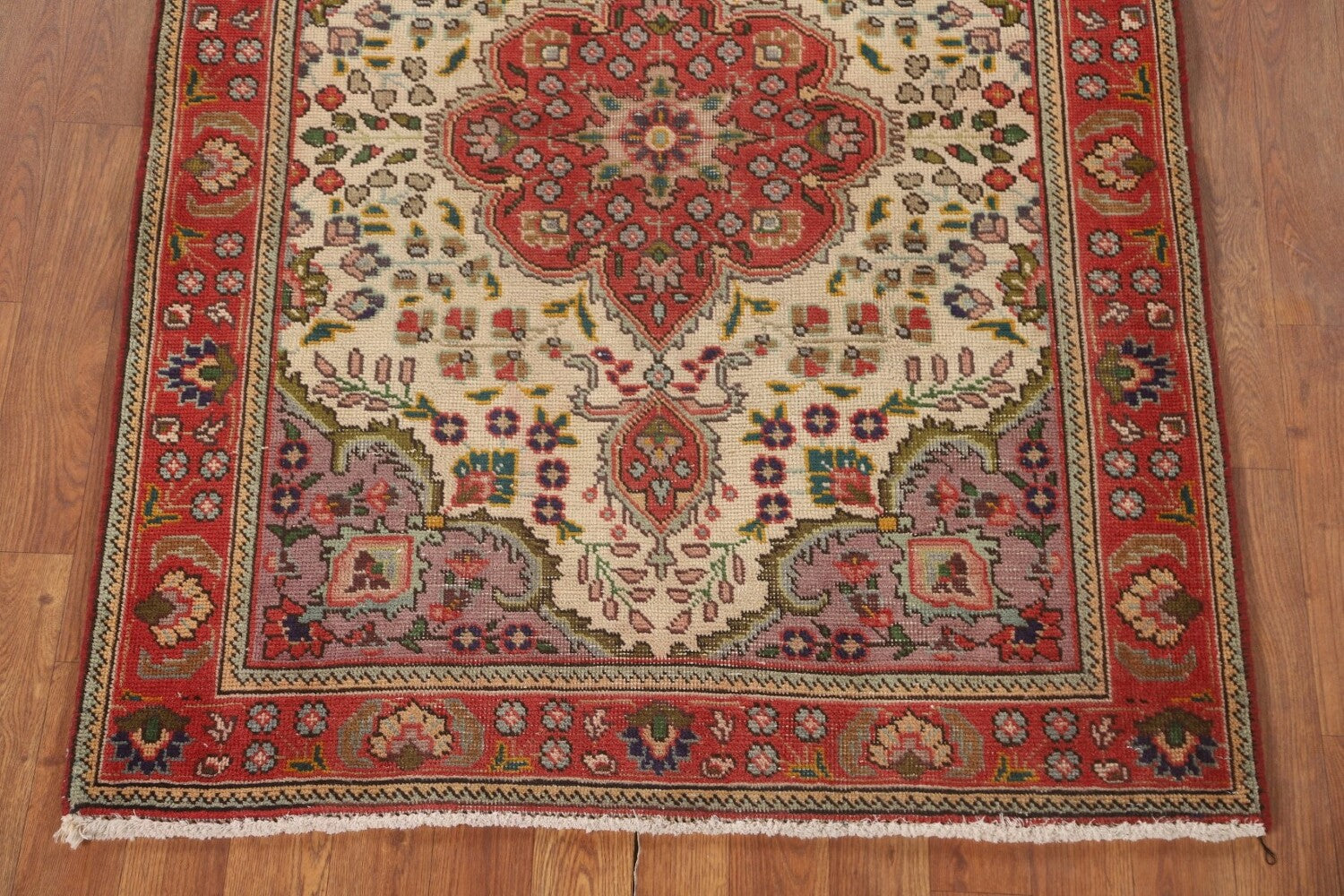 A Beautiful Genuine Persia ( Persia ) Tabriz rug is Hand Knotted by skillful weavers in Persia ( Persia ) with 100% Wool Material. This rug is in Very Good (Evenly Low Pile) condition. dimensions are 4' 7'' X 3' 4'' in foot and 140 X 102 in centimeter. the primary color is Beige & Ivories.