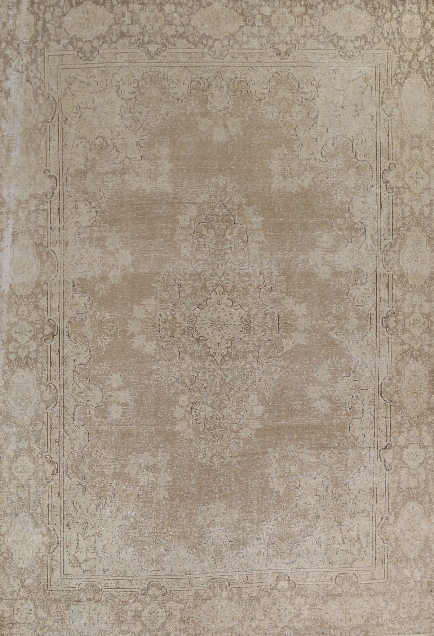 A Beautiful Genuine Persia ( Persia ) Kerman rug is Hand Knotted by skillful weavers in Persia ( Persia ) with 100% Wool Material. This rug is in Very Good (Evenly Low Pile) condition. dimensions are 12' 8'' X 9' 0'' in foot and 386 X 274 in centimeter. the primary color is Brown.