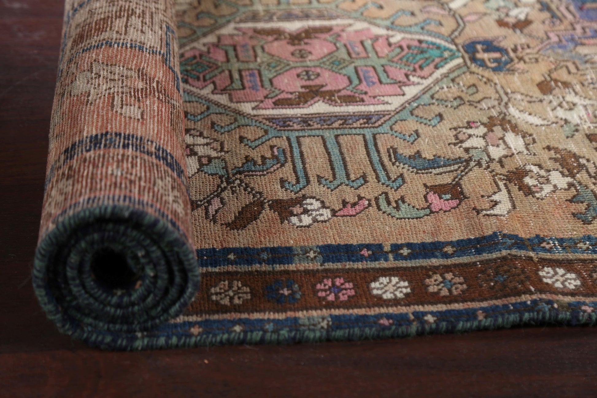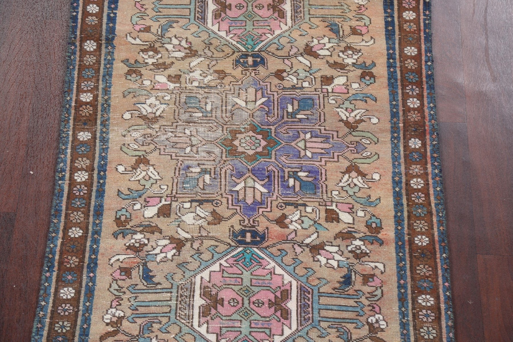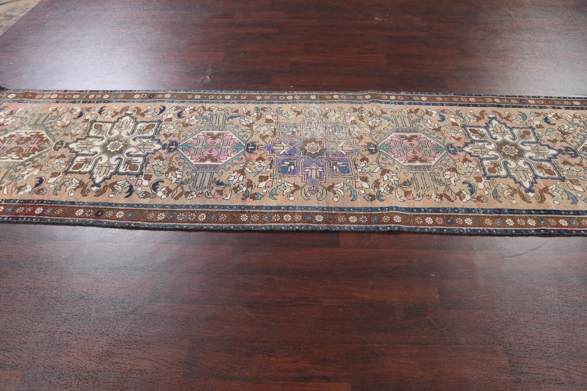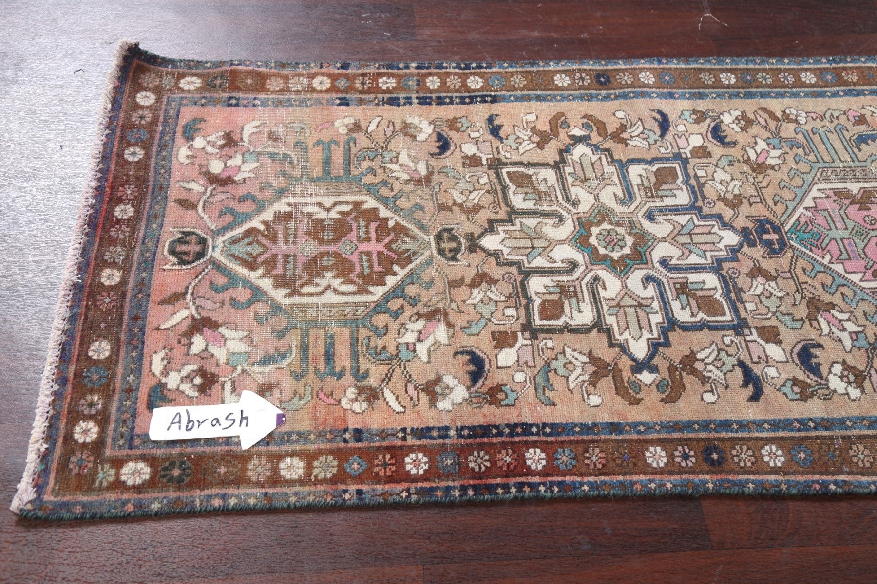 A Beautiful Genuine Persia ( Persia ) Heriz rug is Hand Knotted by skillful weavers in Persia ( Persia ) with 100% Wool Material. This rug is in Very Good (Evenly Low Pile-Abrash) condition. dimensions are 12' 0'' X 3' 2'' in foot and 366 X 97 in centimeter. the primary color is Multi-Colored.