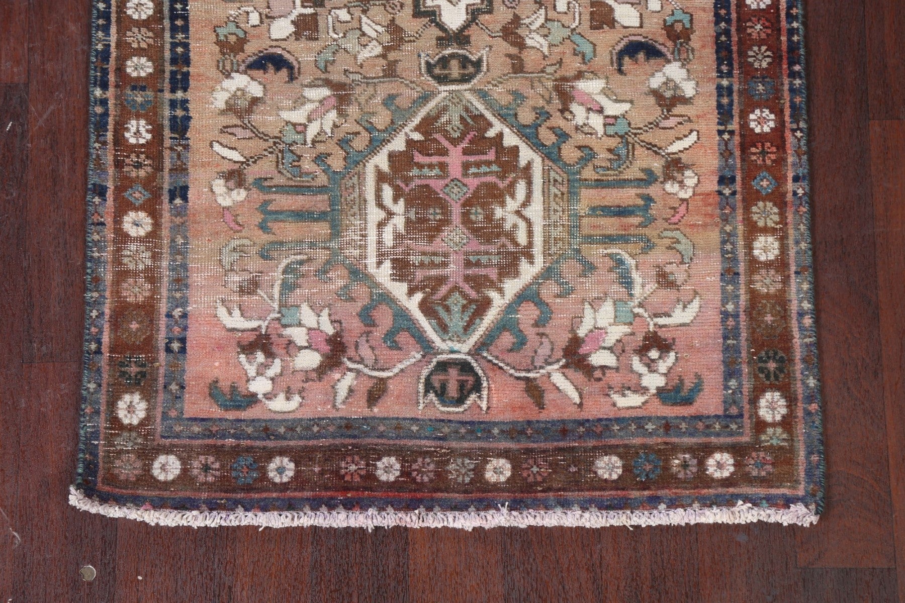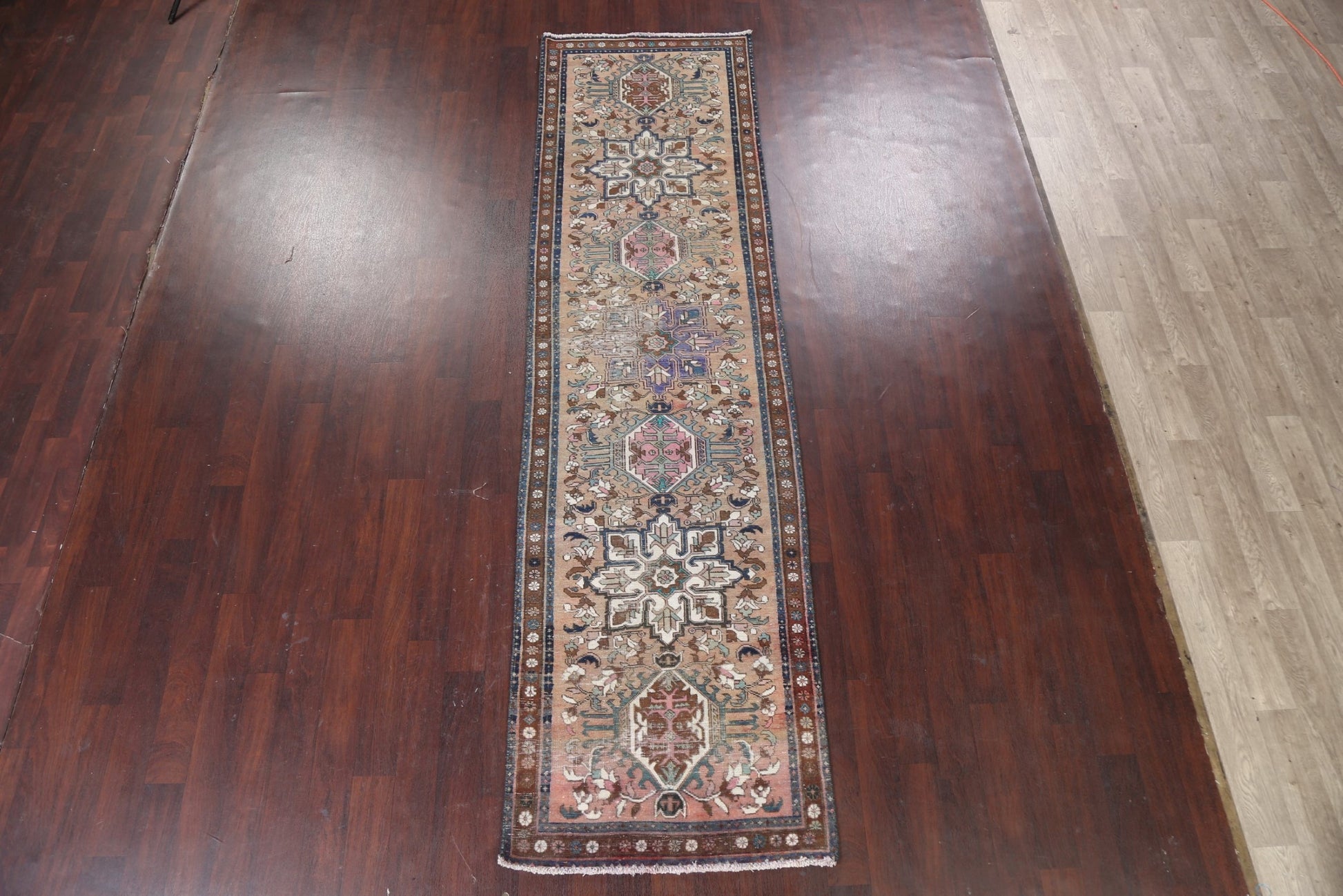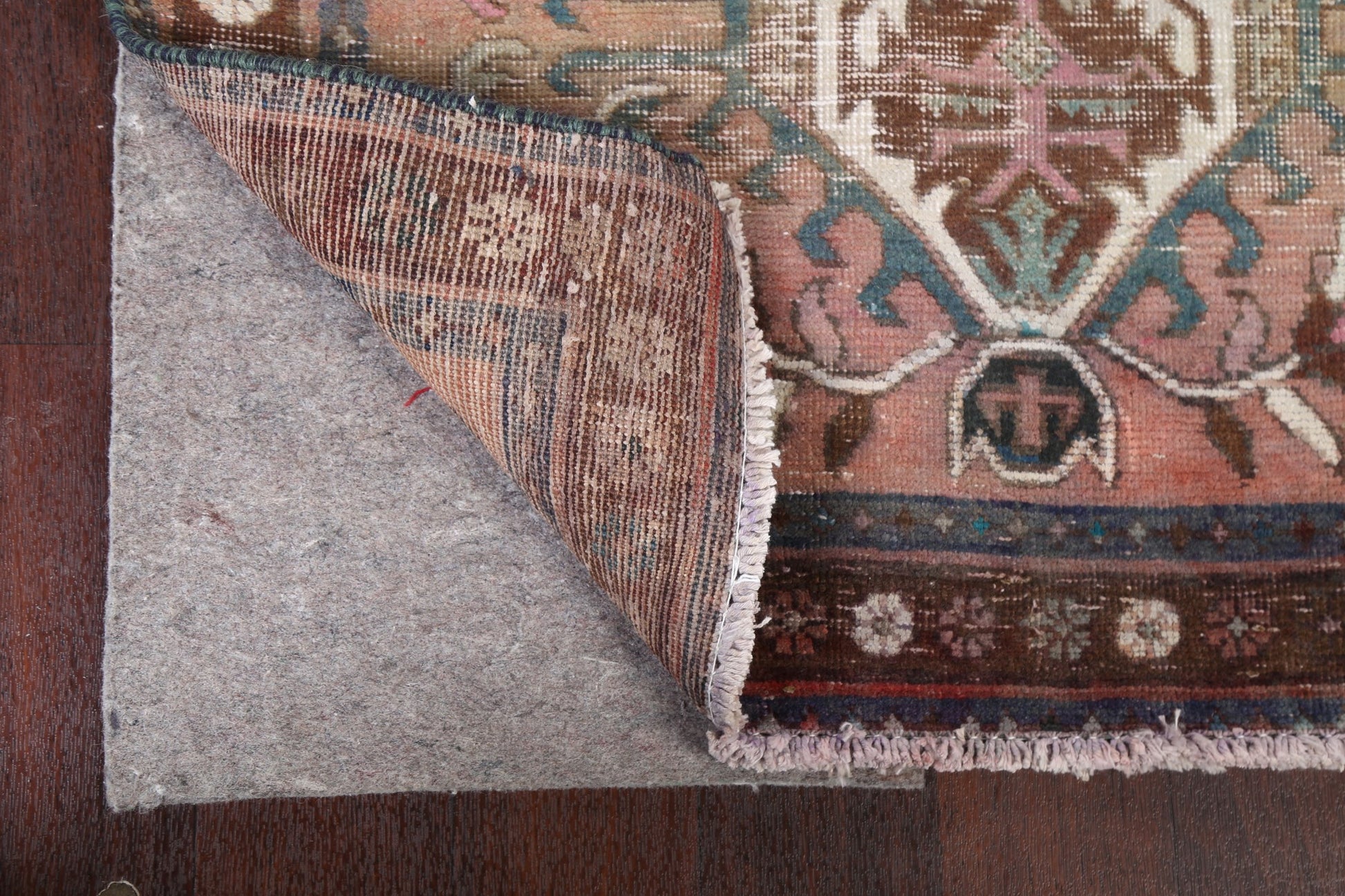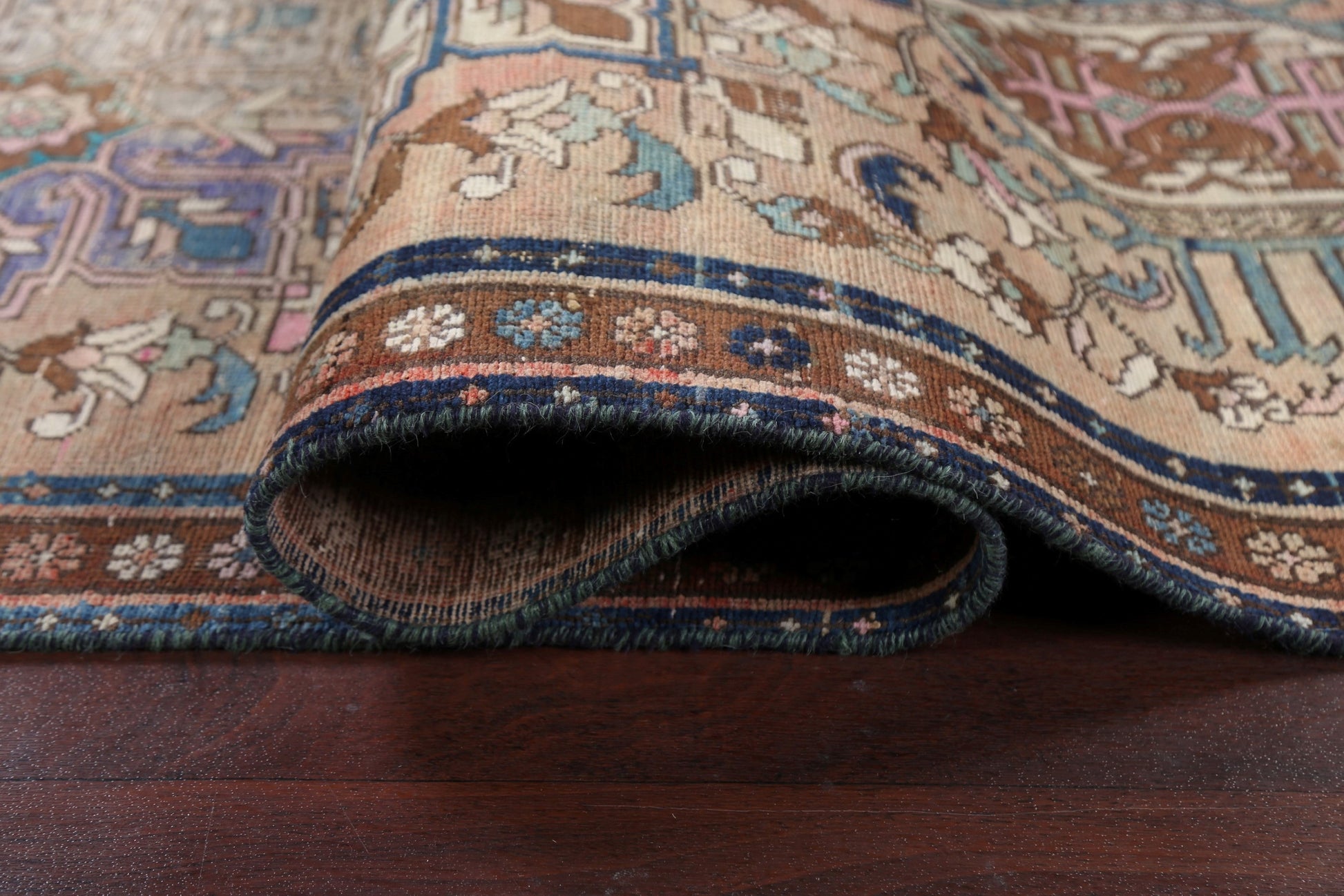 A Beautiful Genuine Persia ( Persia ) Heriz rug is Hand Knotted by skillful weavers in Persia ( Persia ) with 100% Wool Material. This rug is in Very Good (Evenly Low Pile-Abrash) condition. dimensions are 12' 0'' X 3' 2'' in foot and 366 X 97 in centimeter. the primary color is Multi-Colored.