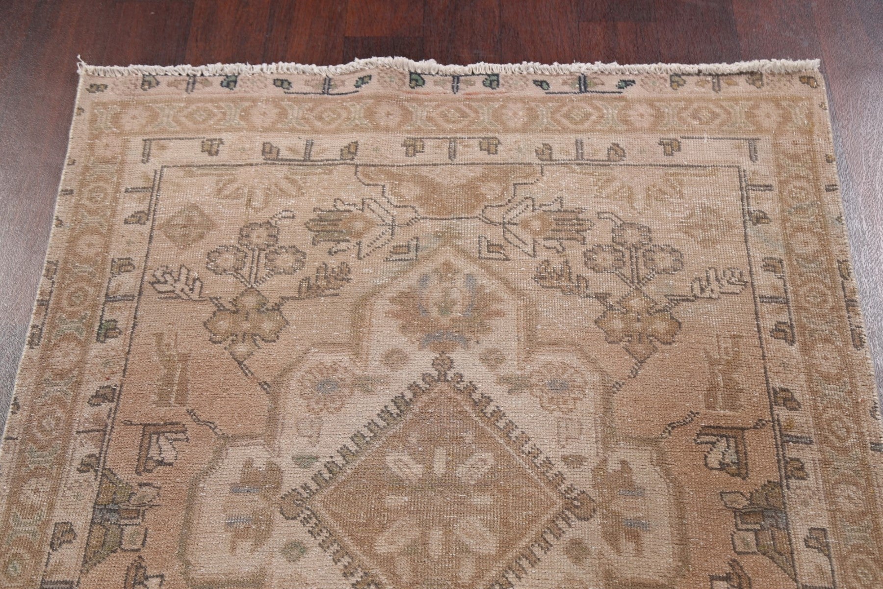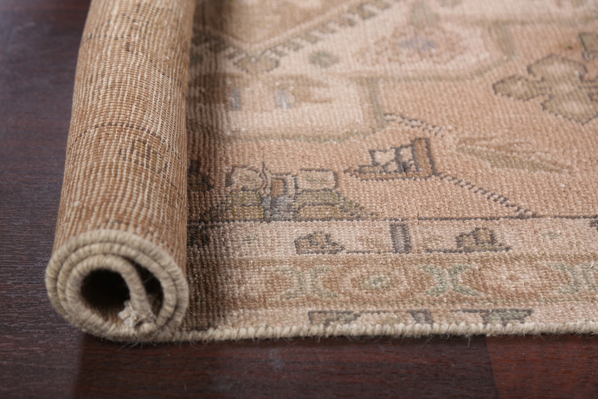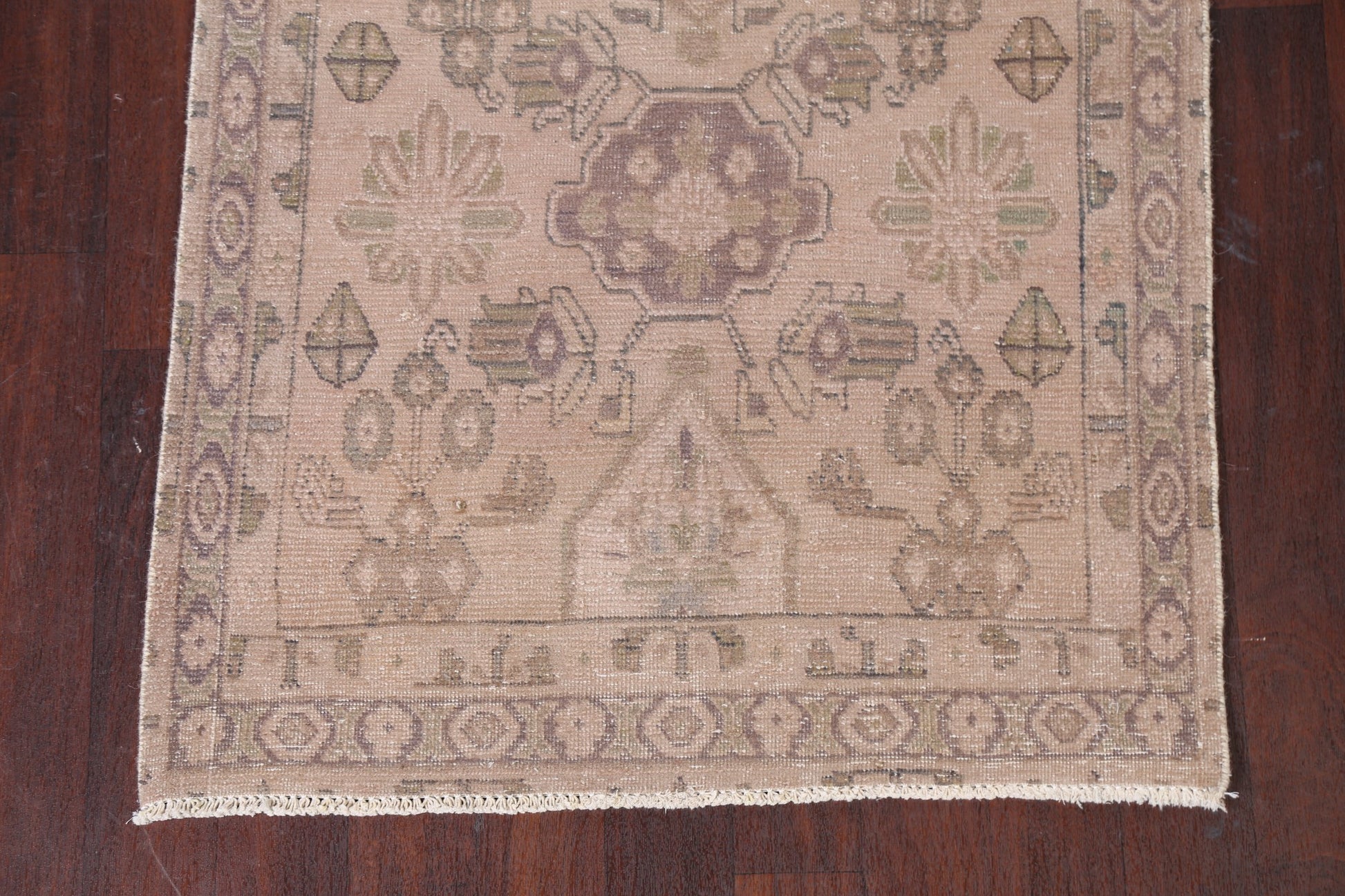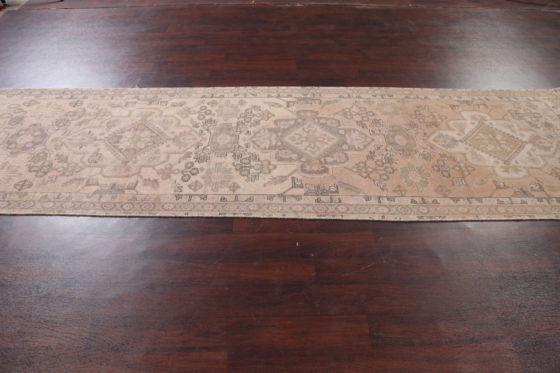 A Beautiful Genuine Persia ( Persia ) Heriz rug is Hand Knotted by skillful weavers in Persia ( Persia ) with 100% Wool Material. This rug is in Very Good (Evenly Low Pile-Abrash) condition. dimensions are 12' 11'' X 3' 6'' in foot and 394 X 107 in centimeter. the primary color is Pink.