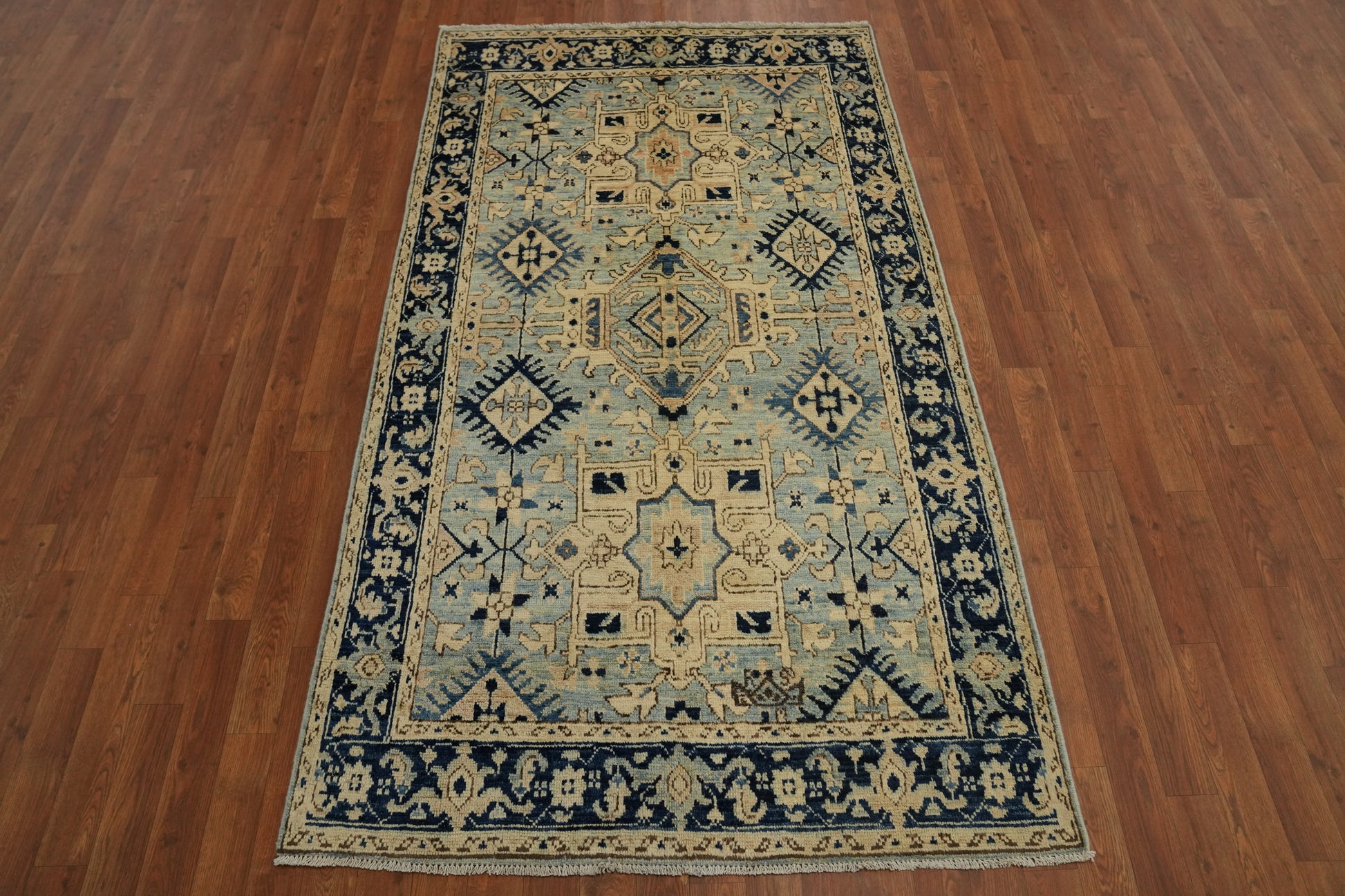 Vintage-Inspired Rug 4x7 Featuring Classic Blue and Beige Designs