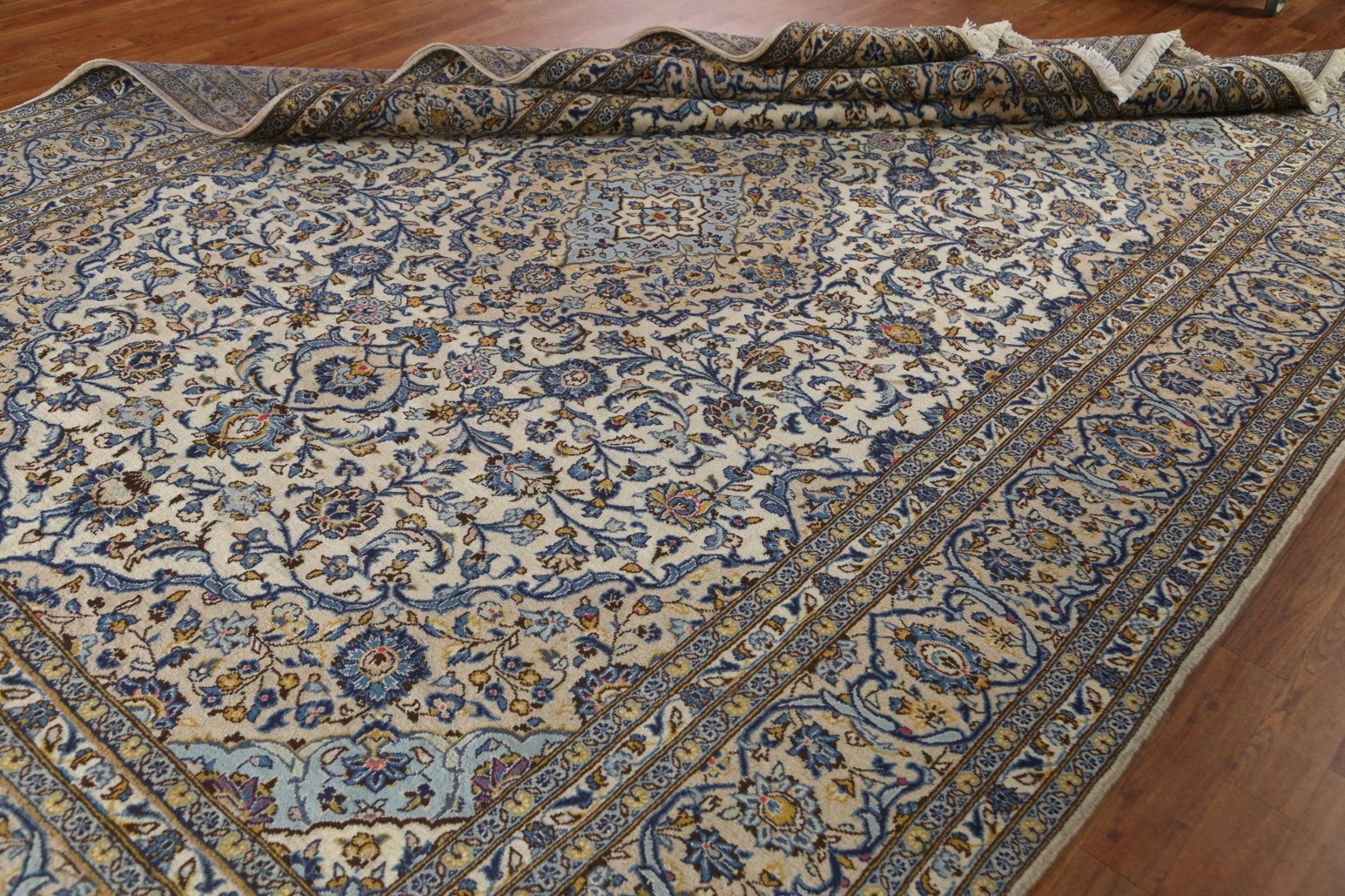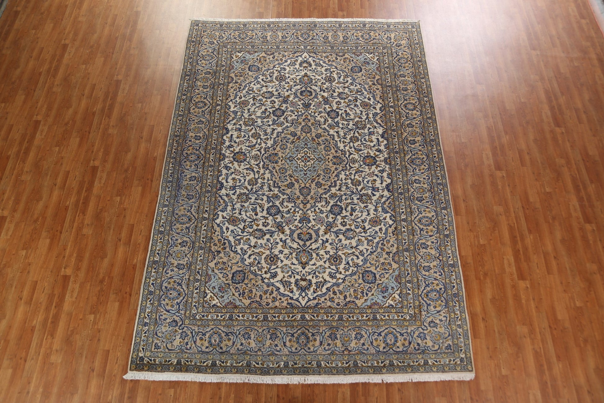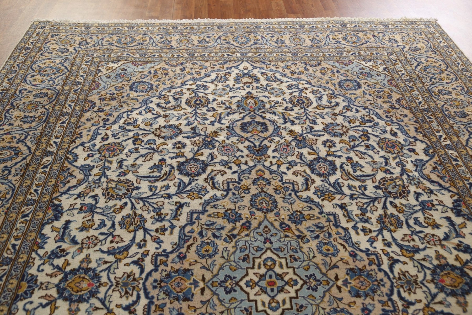 Vintage Ivory Kashan Persian Area Rug 8x12