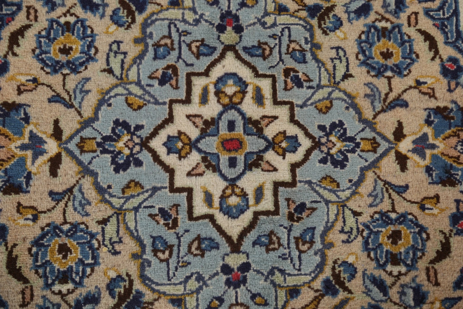 A Beautiful Genuine Persia ( Persia ) Kashan rug is Hand Knotted by skillful weavers in Persia ( Persia ) with 100% Wool Material. This rug is in Very Good condition. dimensions are 11' 8'' X 8' 1'' in foot and 356 X 246 in centimeter. the primary color is Beige & Ivories.