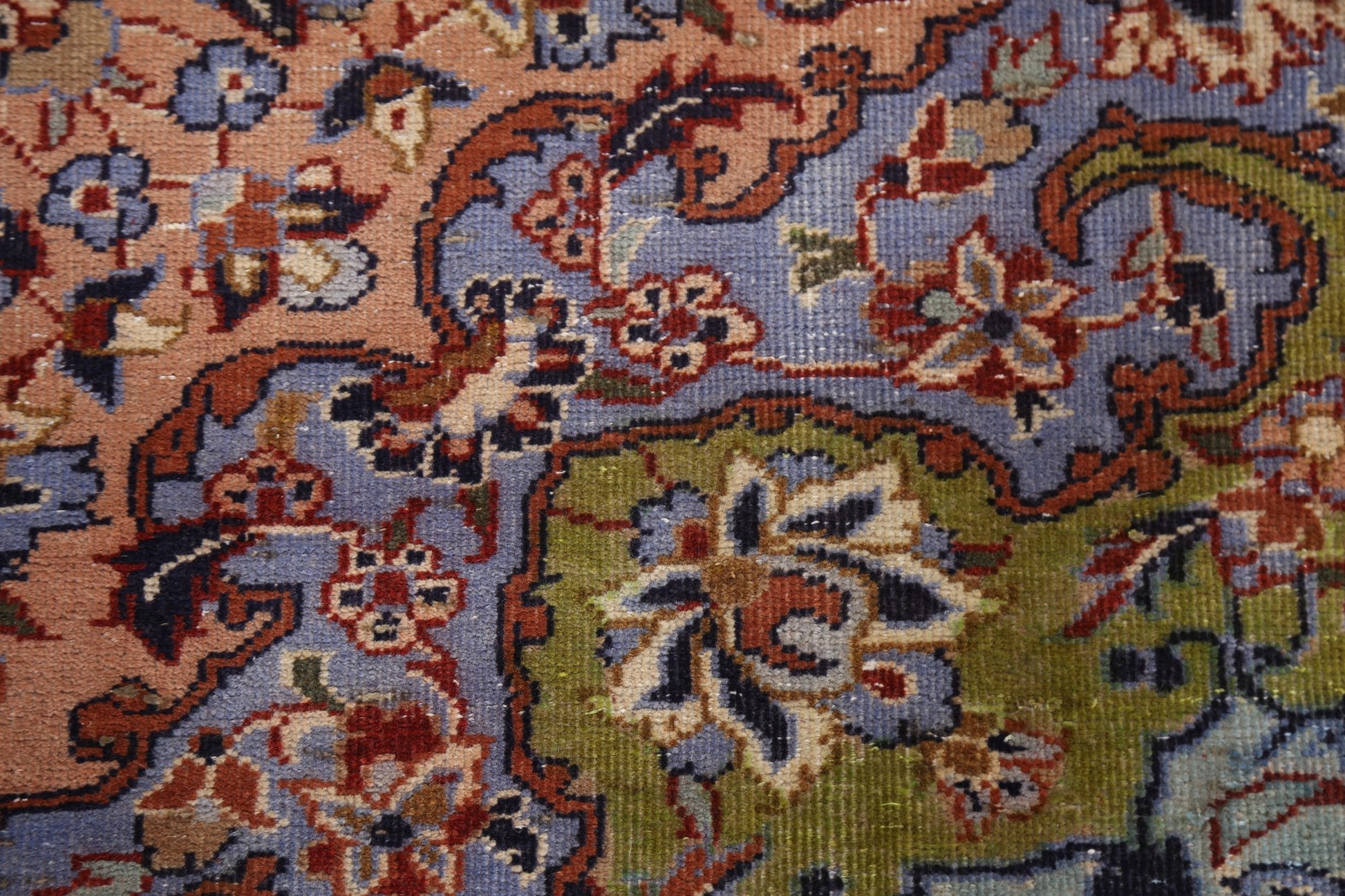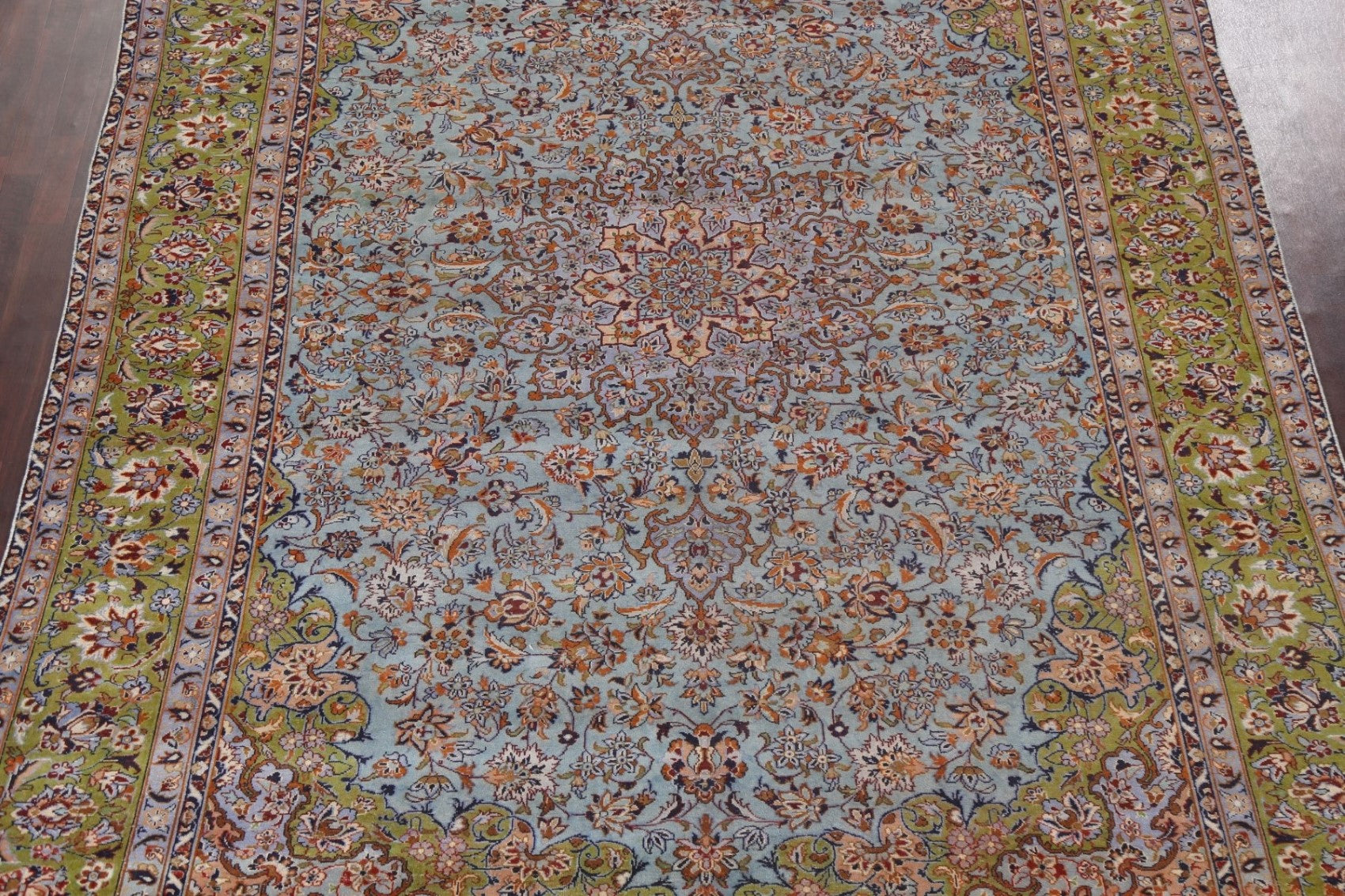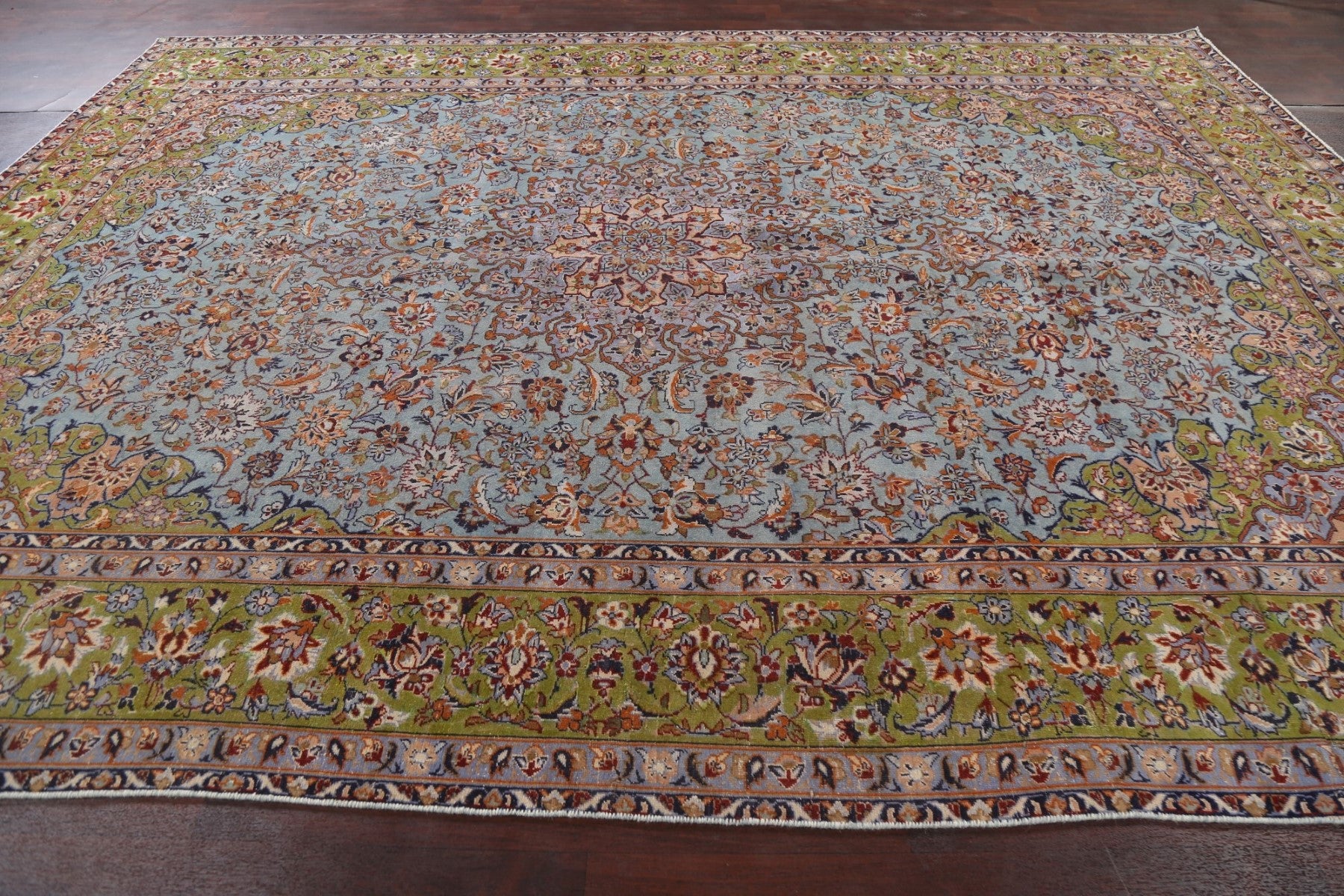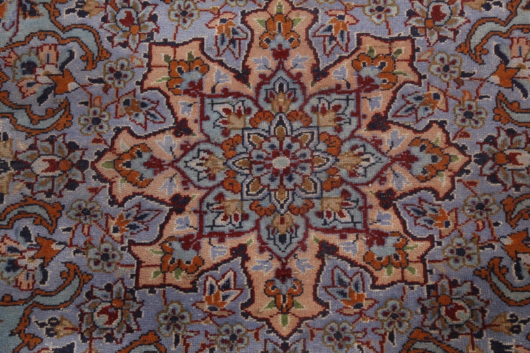 A Beautiful Genuine Persia ( Persia ) Kashan rug is Hand Knotted by skillful weavers in Persia ( Persia ) with 100% Wool Material. This rug is in Very Good (Evenly Low Pile) condition. dimensions are 12' 11'' X 9' 5'' in foot and 394 X 287 in centimeter. the primary color is Navy Blue & Blues.