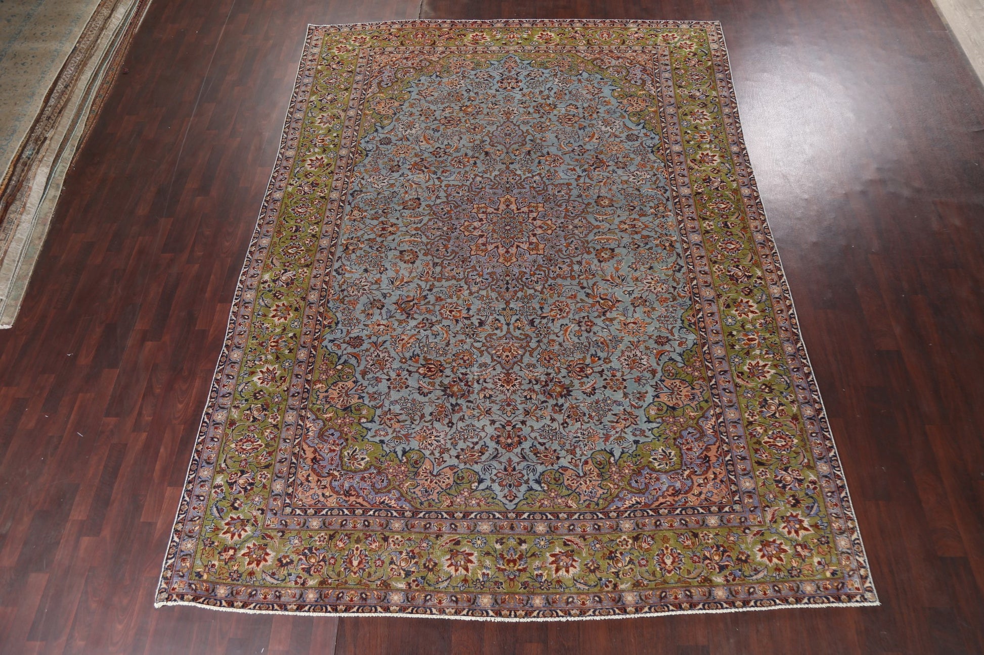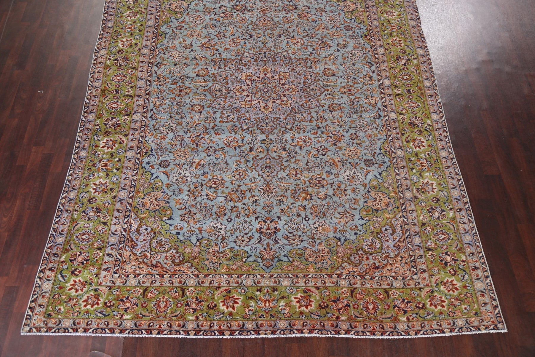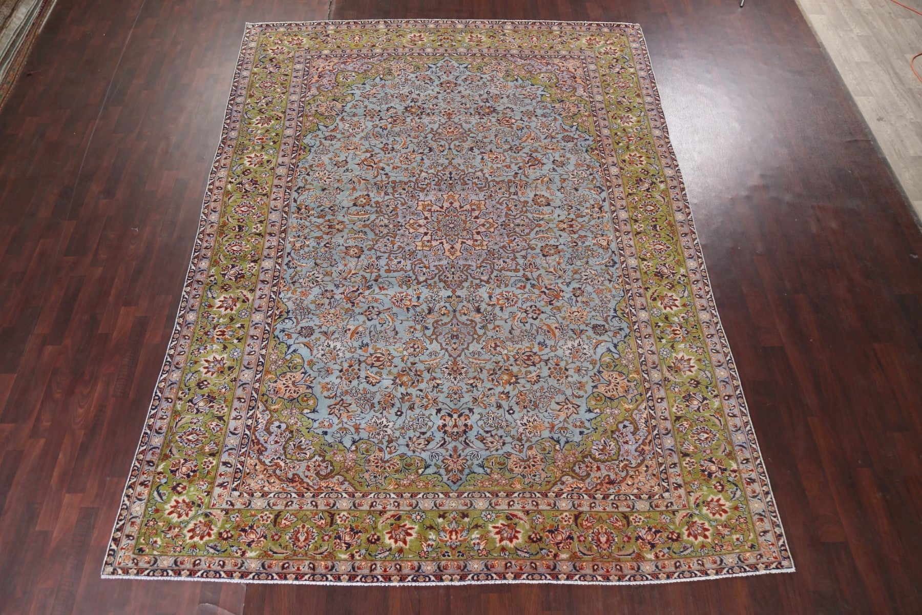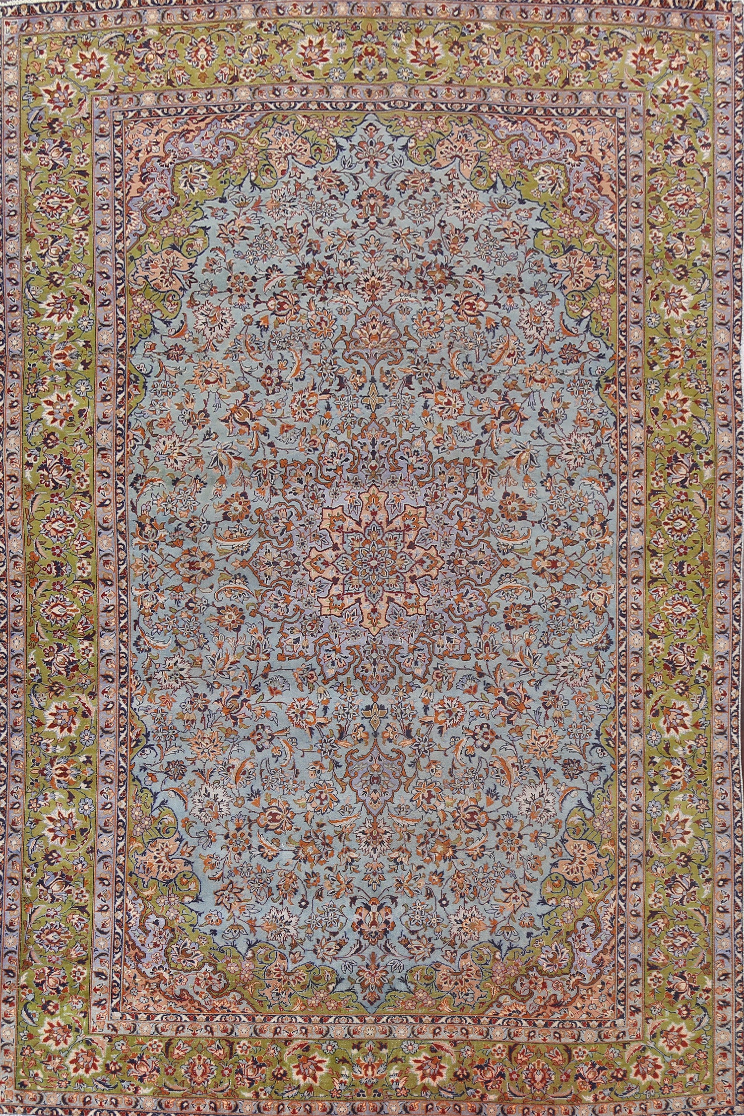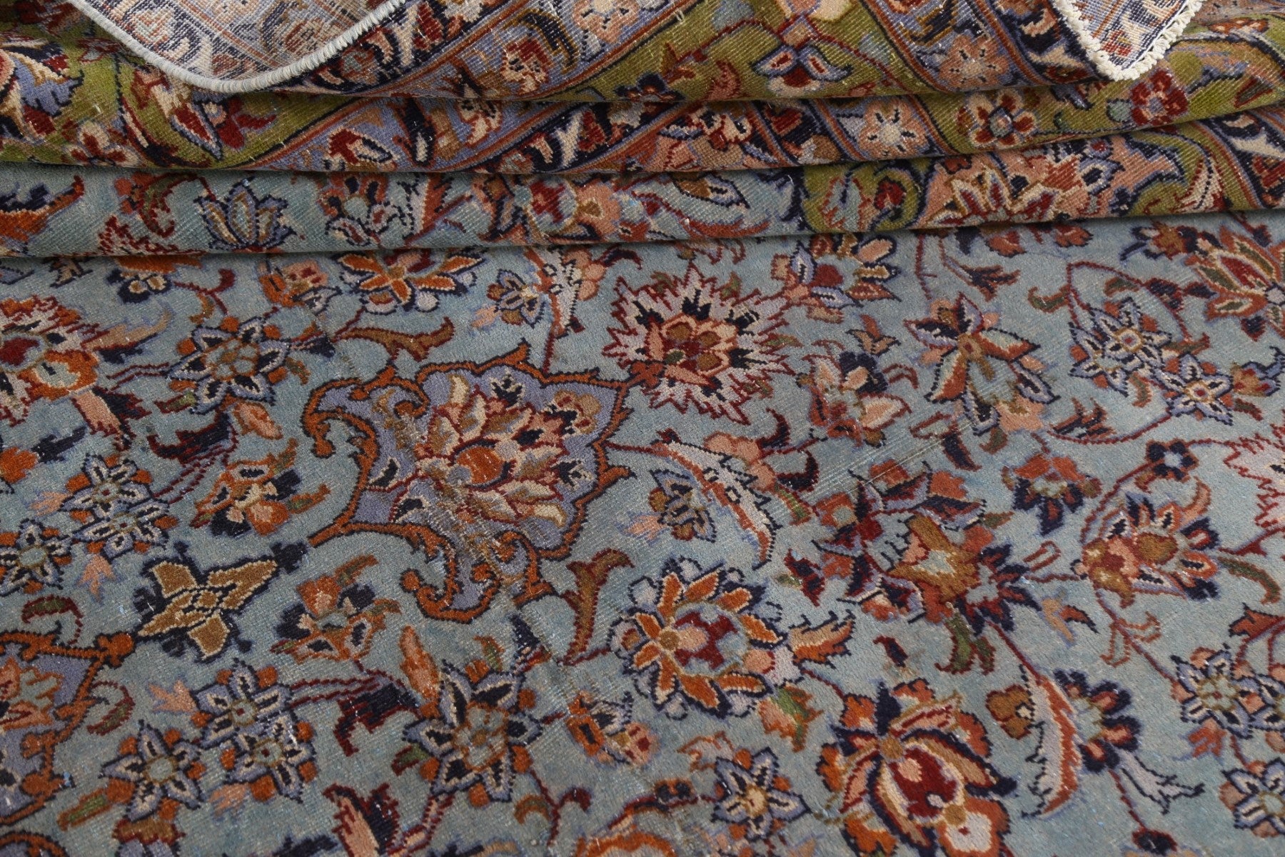 A Beautiful Genuine Persia ( Persia ) Kashan rug is Hand Knotted by skillful weavers in Persia ( Persia ) with 100% Wool Material. This rug is in Very Good (Evenly Low Pile) condition. dimensions are 12' 11'' X 9' 5'' in foot and 394 X 287 in centimeter. the primary color is Navy Blue & Blues.