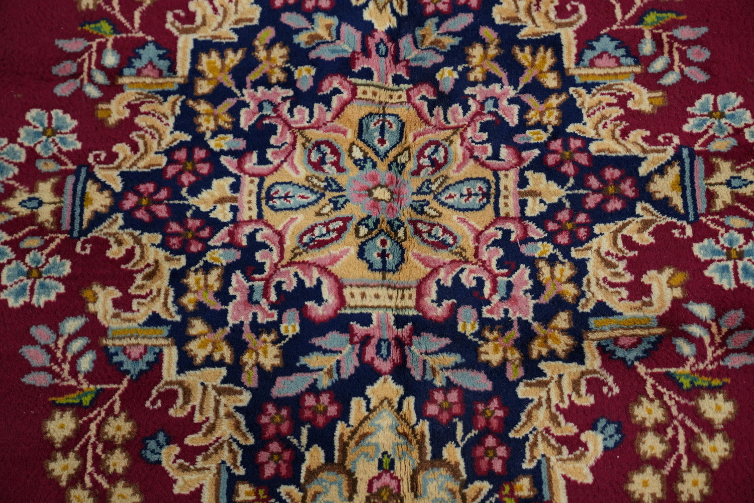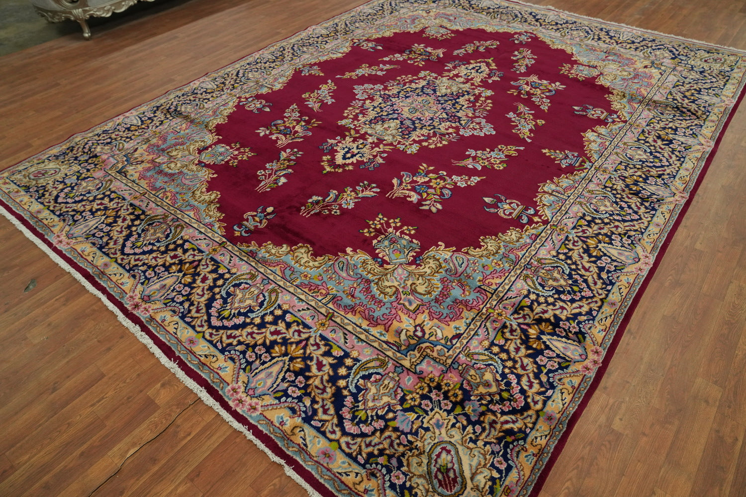 A Beautiful Genuine Persia ( Persia ) Kerman rug is Hand Knotted by skillful weavers in Persia ( Persia ) with 100% Wool Material. This rug is in Very Good condition. dimensions are 13' 4'' X 9' 9'' in foot and 406 X 297 in centimeter. the primary color is Red.