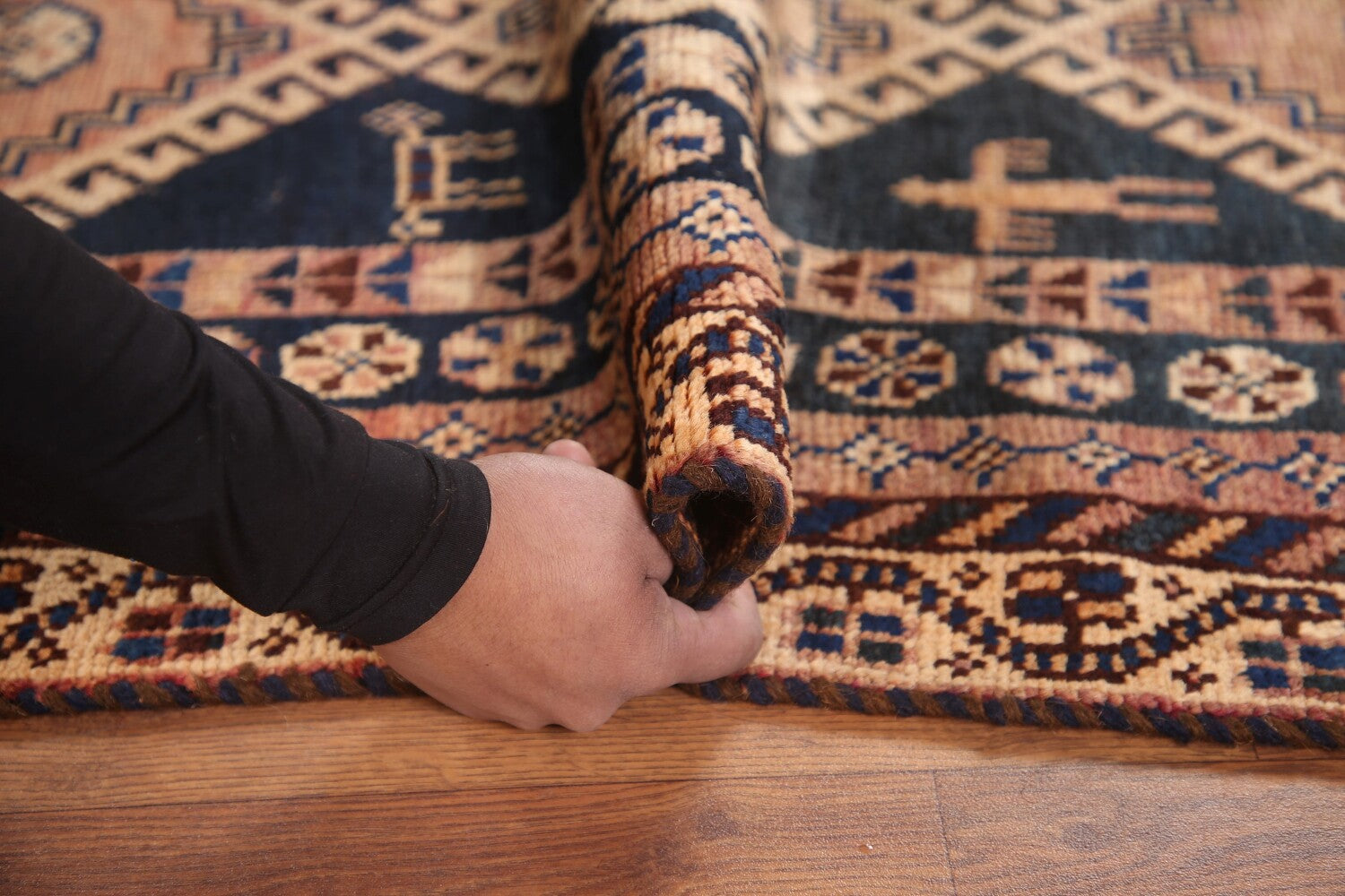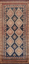 A Beautiful Genuine Persia ( Persia ) Lori rug is Hand Knotted by skillful weavers in Persia ( Persia ) with 100% Wool Material. This rug is in Very Good condition. dimensions are 8' 9'' X 4' 1'' in foot and 267 X 124 in centimeter. the primary color is Navy Blue & Blues.