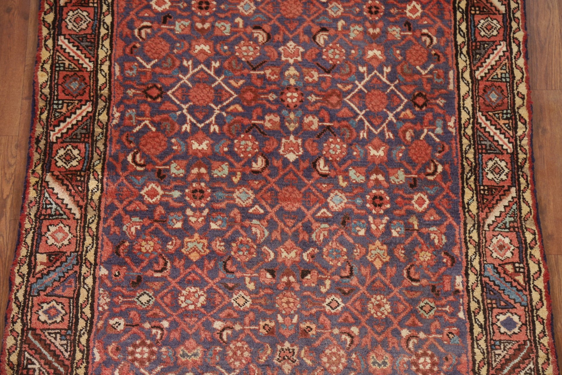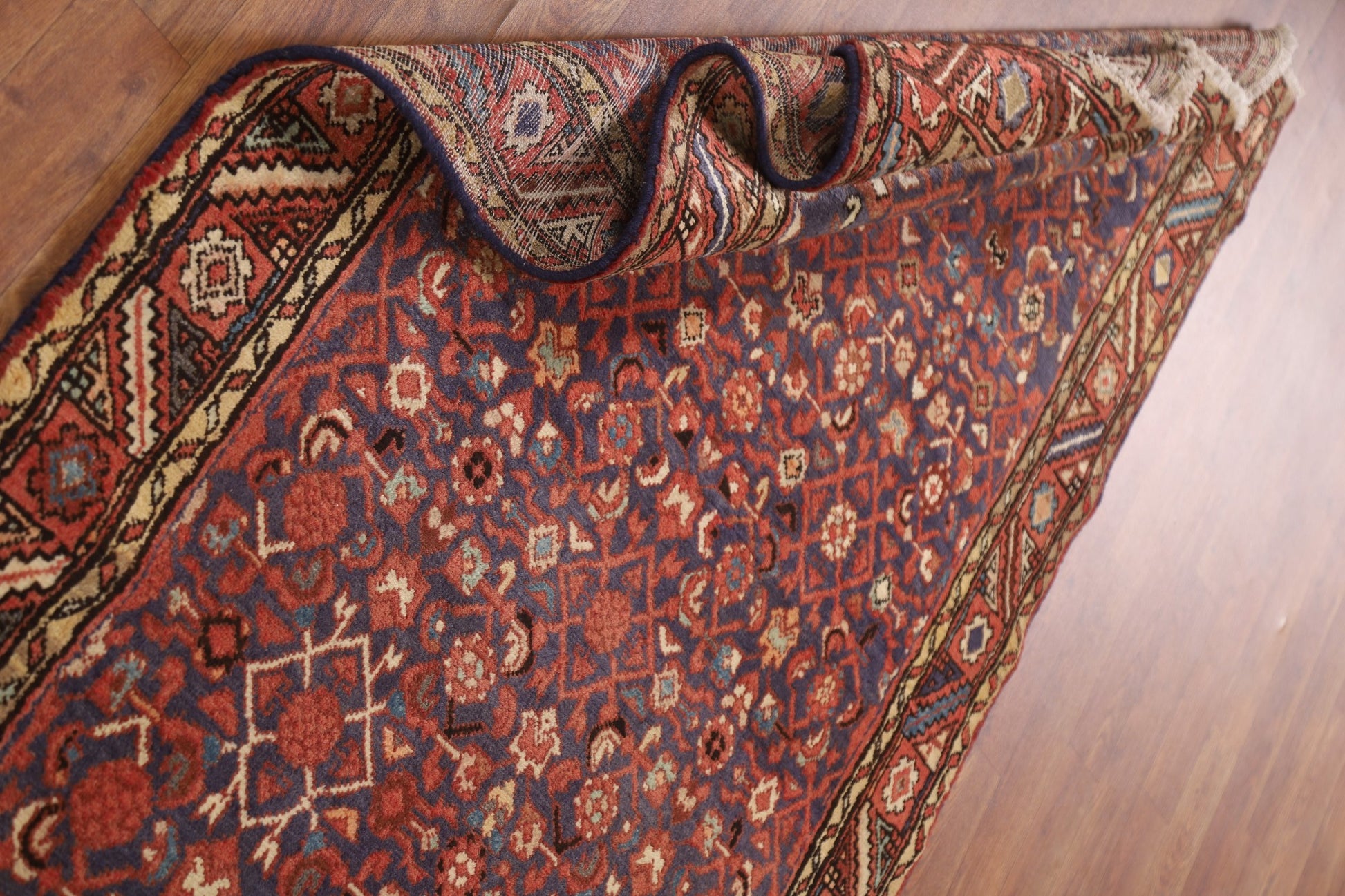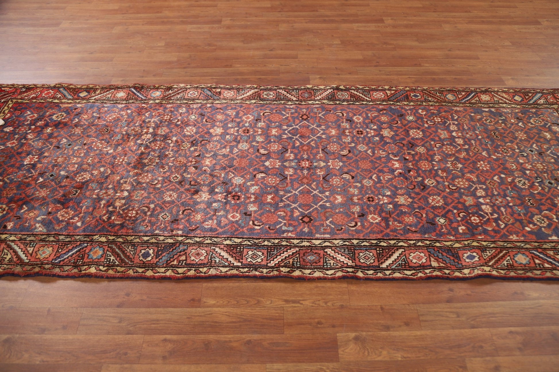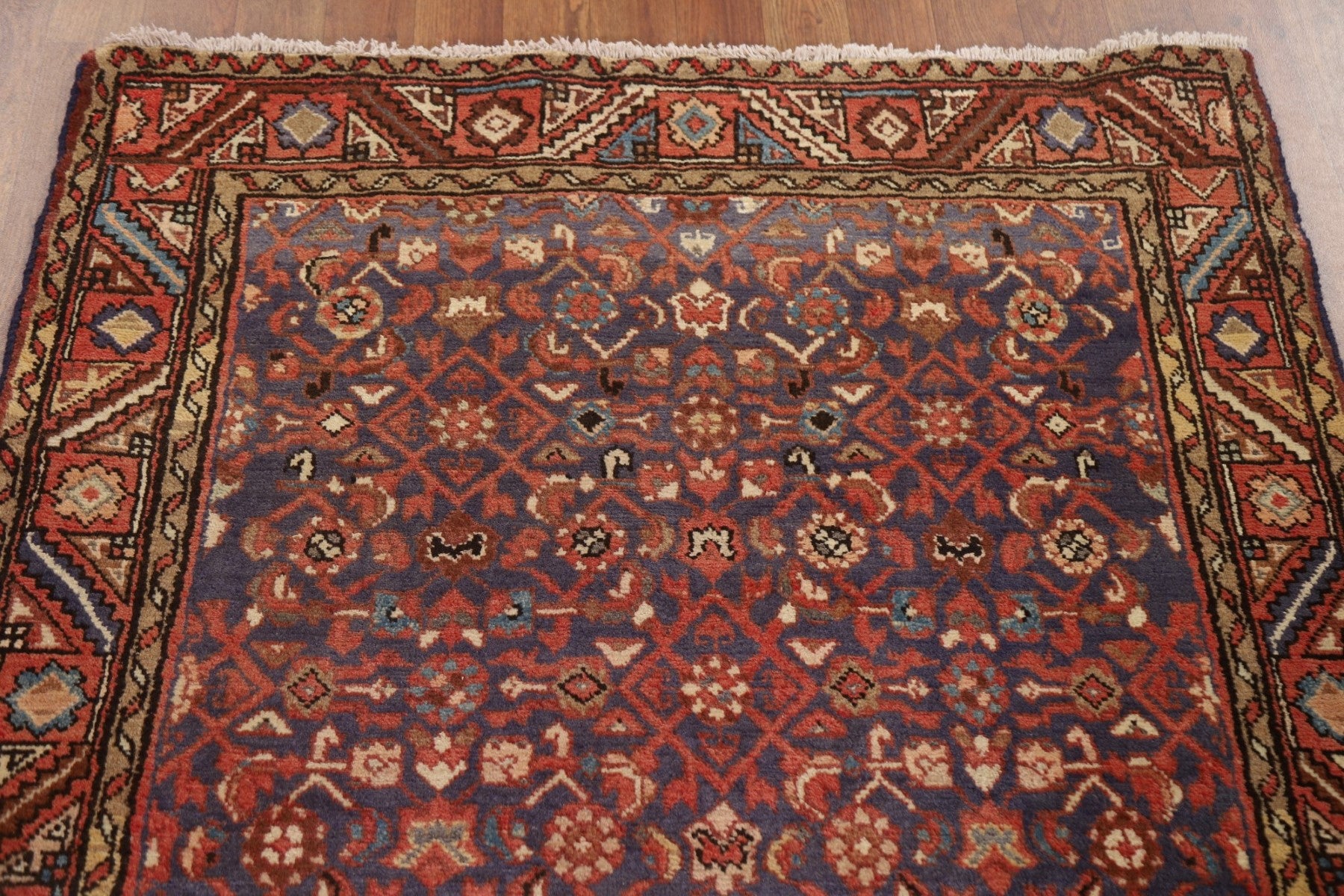 A Beautiful Genuine Persia ( Persia ) Mahal rug is Hand Knotted by skillful weavers in Persia ( Persia ) with 100% Wool Material. This rug is in Very Good (Abrash) condition. dimensions are 9' 7'' X 3' 6'' in foot and 292 X 107 in centimeter. the primary color is Navy Blue & Blues.
