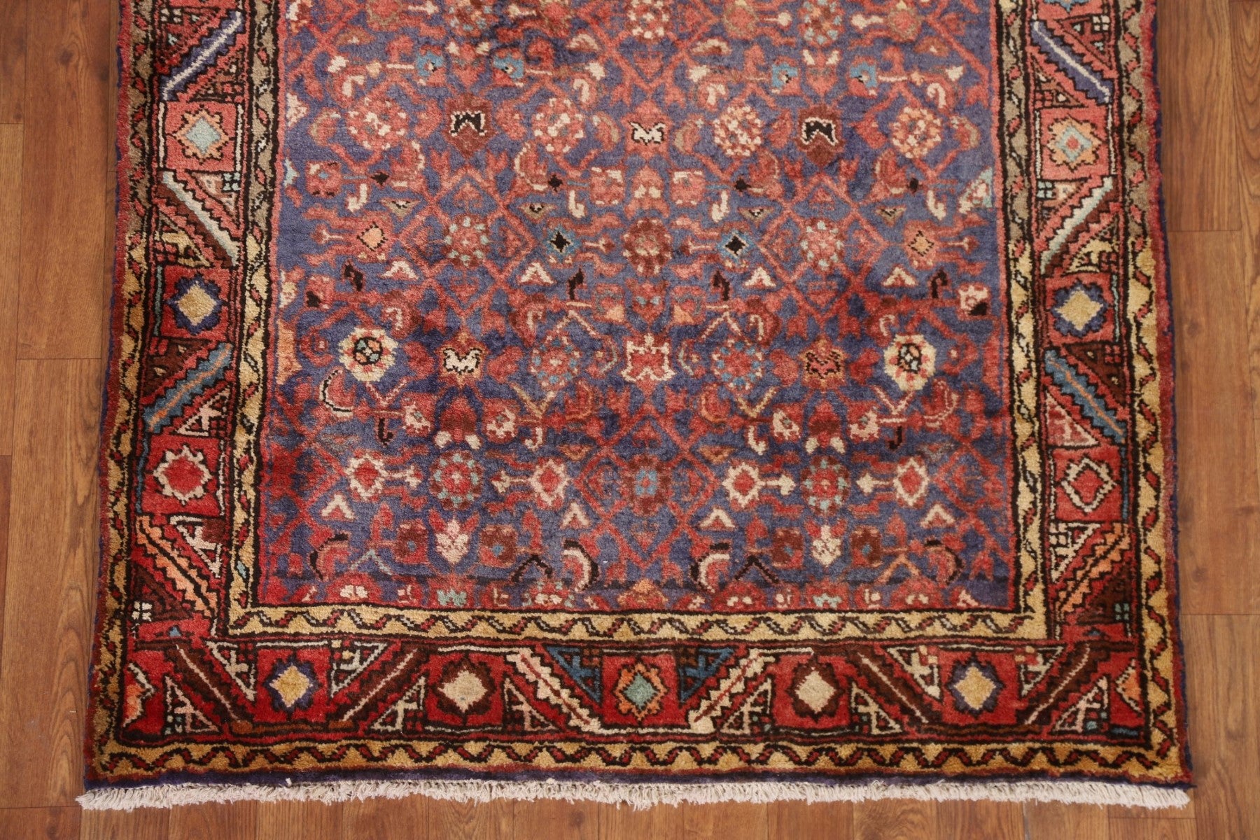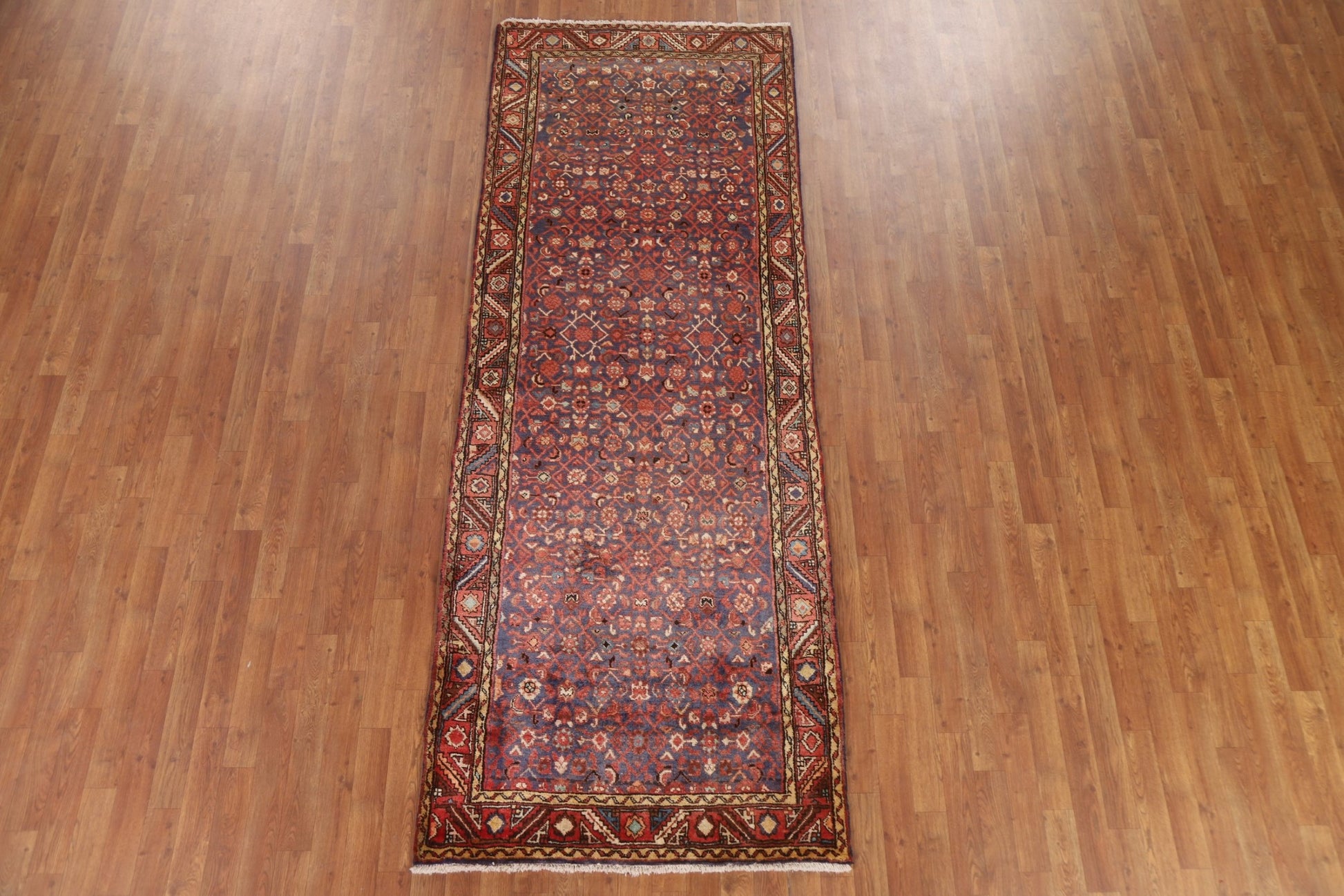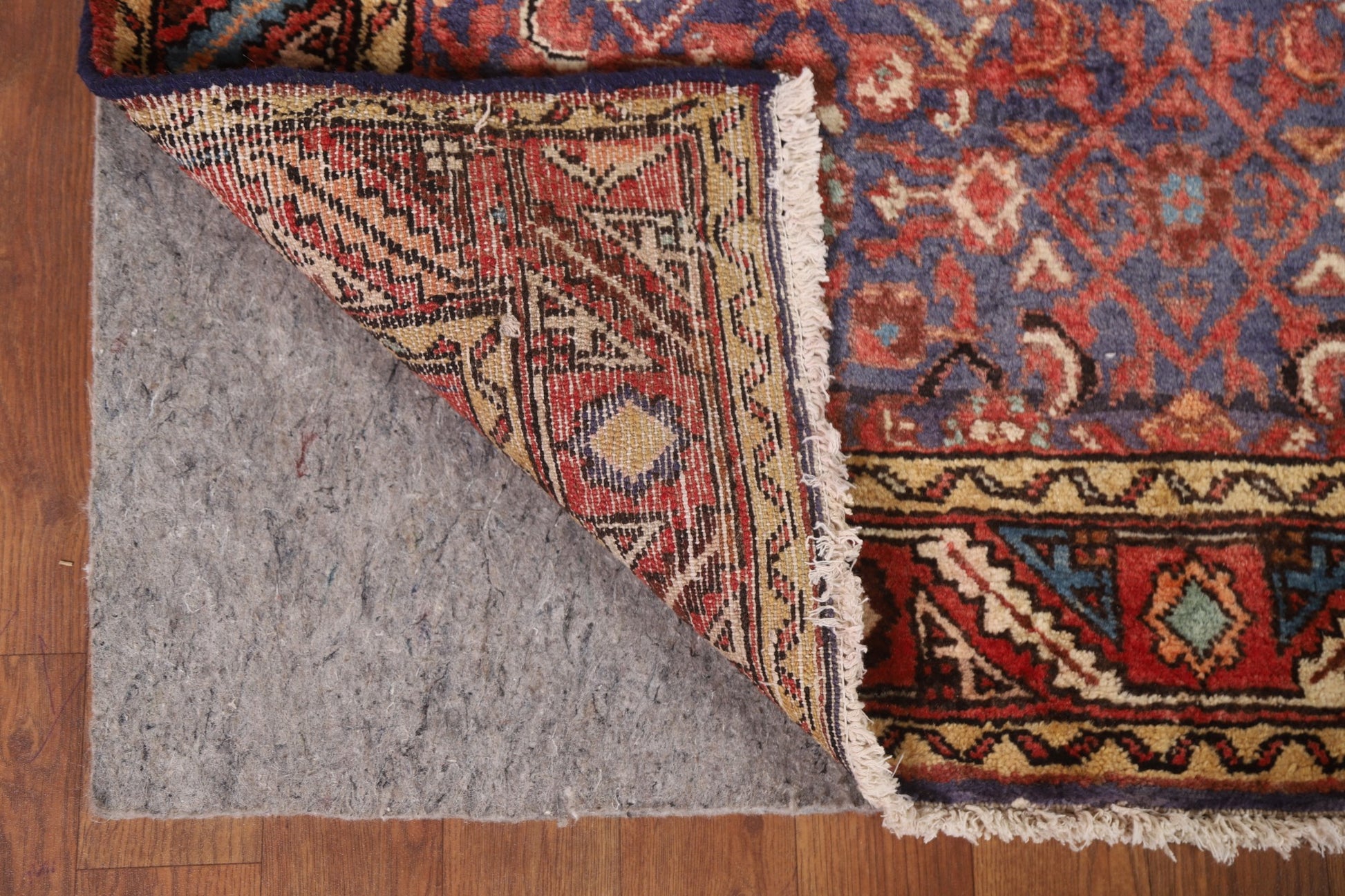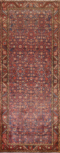 A Beautiful Genuine Persia ( Persia ) Mahal rug is Hand Knotted by skillful weavers in Persia ( Persia ) with 100% Wool Material. This rug is in Very Good (Abrash) condition. dimensions are 9' 7'' X 3' 6'' in foot and 292 X 107 in centimeter. the primary color is Navy Blue & Blues.