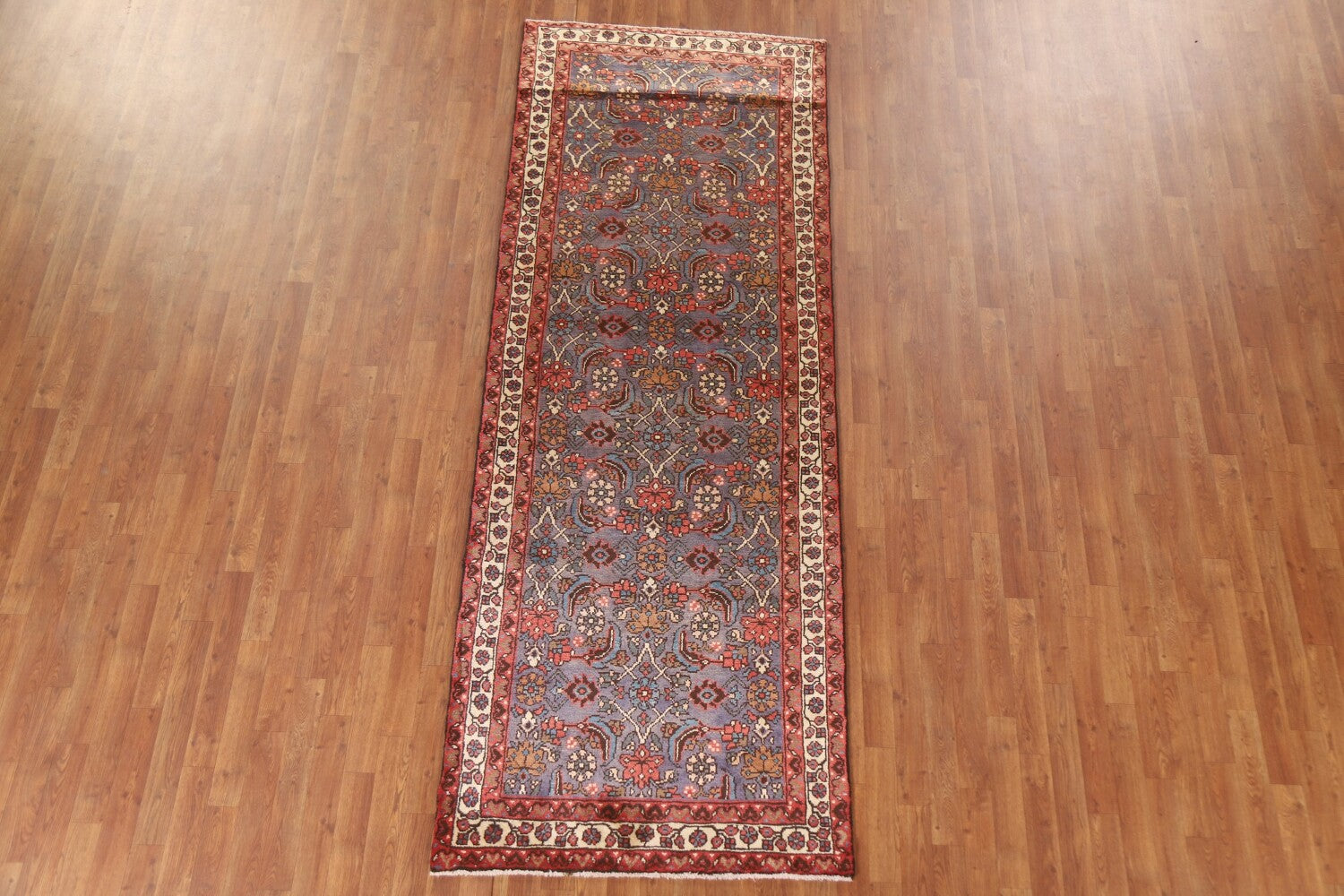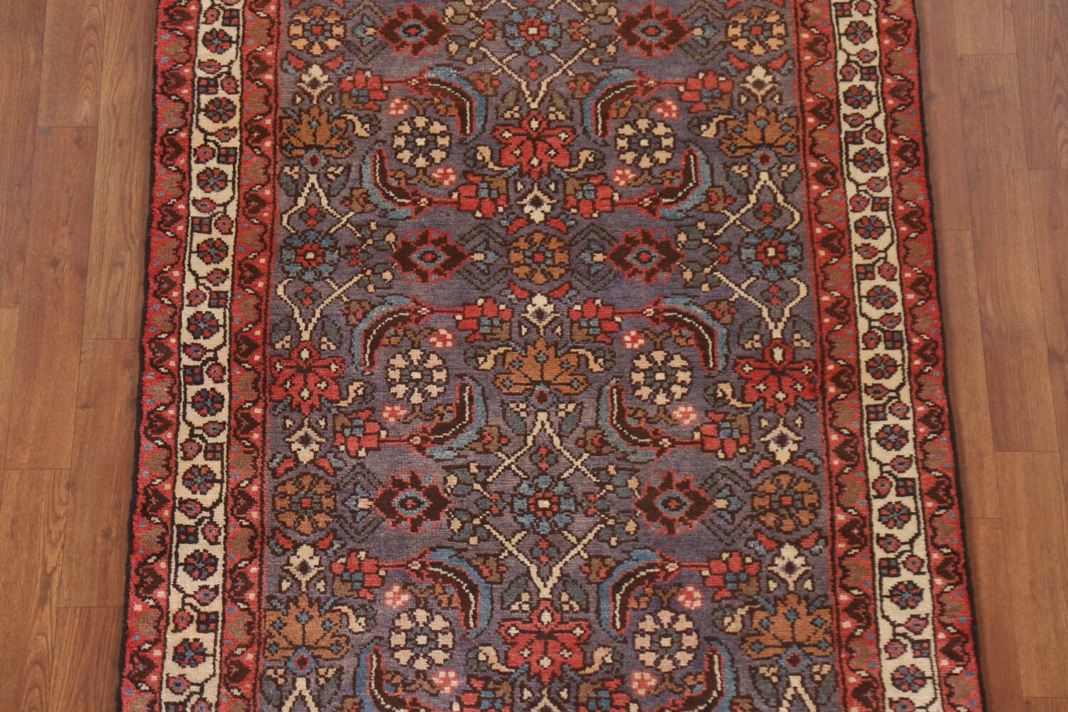 A Beautiful Genuine Persia ( Persia ) Malayer rug is Hand Knotted by skillful weavers in Persia ( Persia ) with 100% Wool Material. This rug is in Very Good (Abrash) condition. dimensions are 9' 8'' X 3' 6'' in foot and 295 X 107 in centimeter. the primary color is Purples.