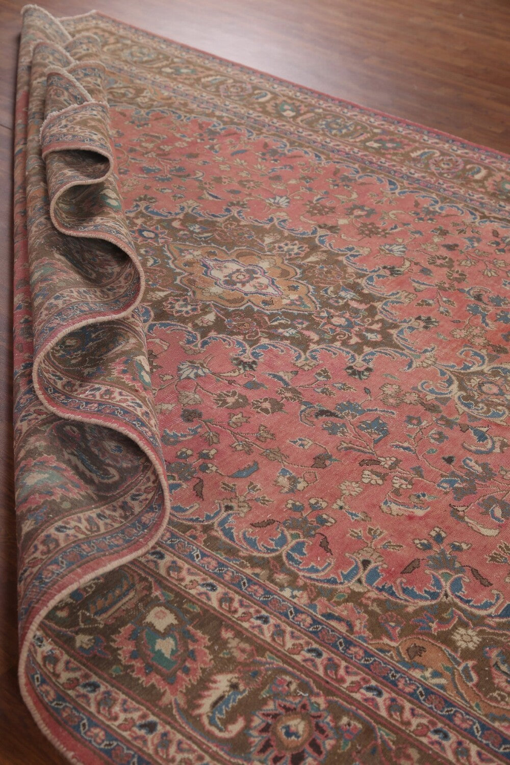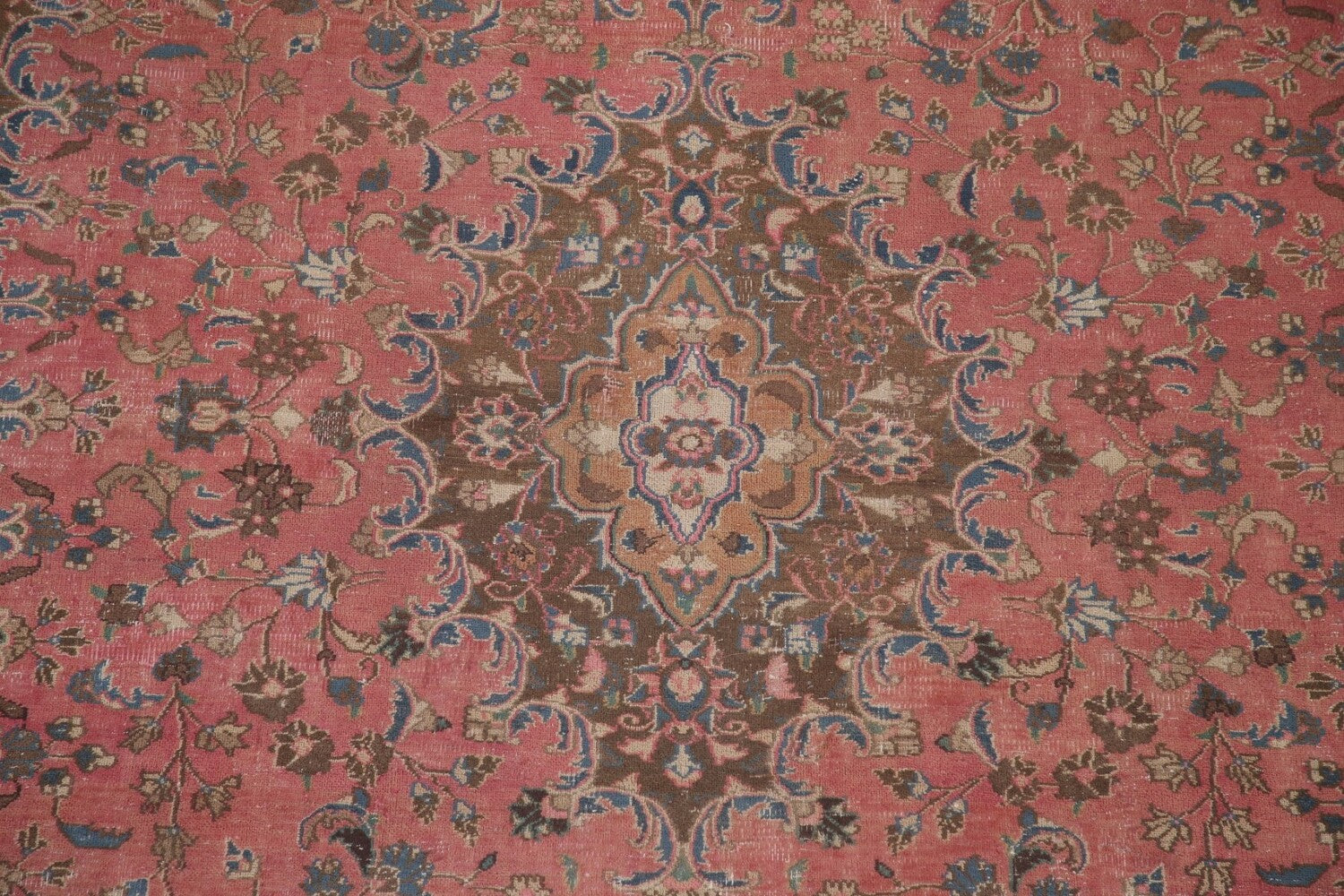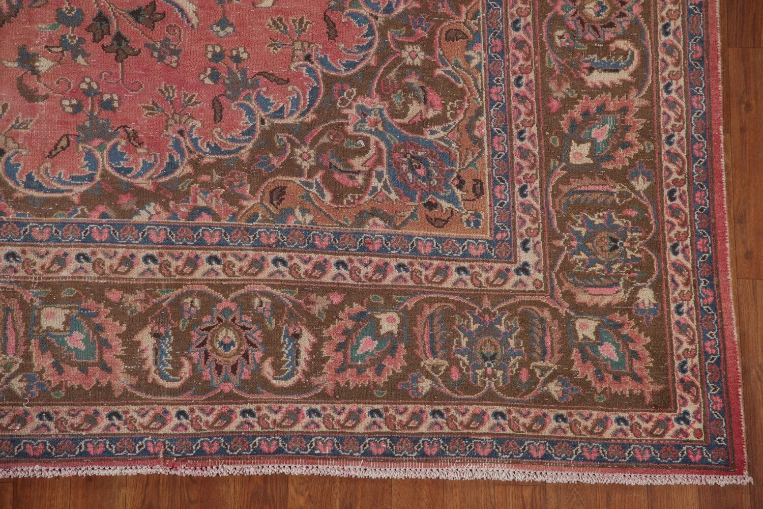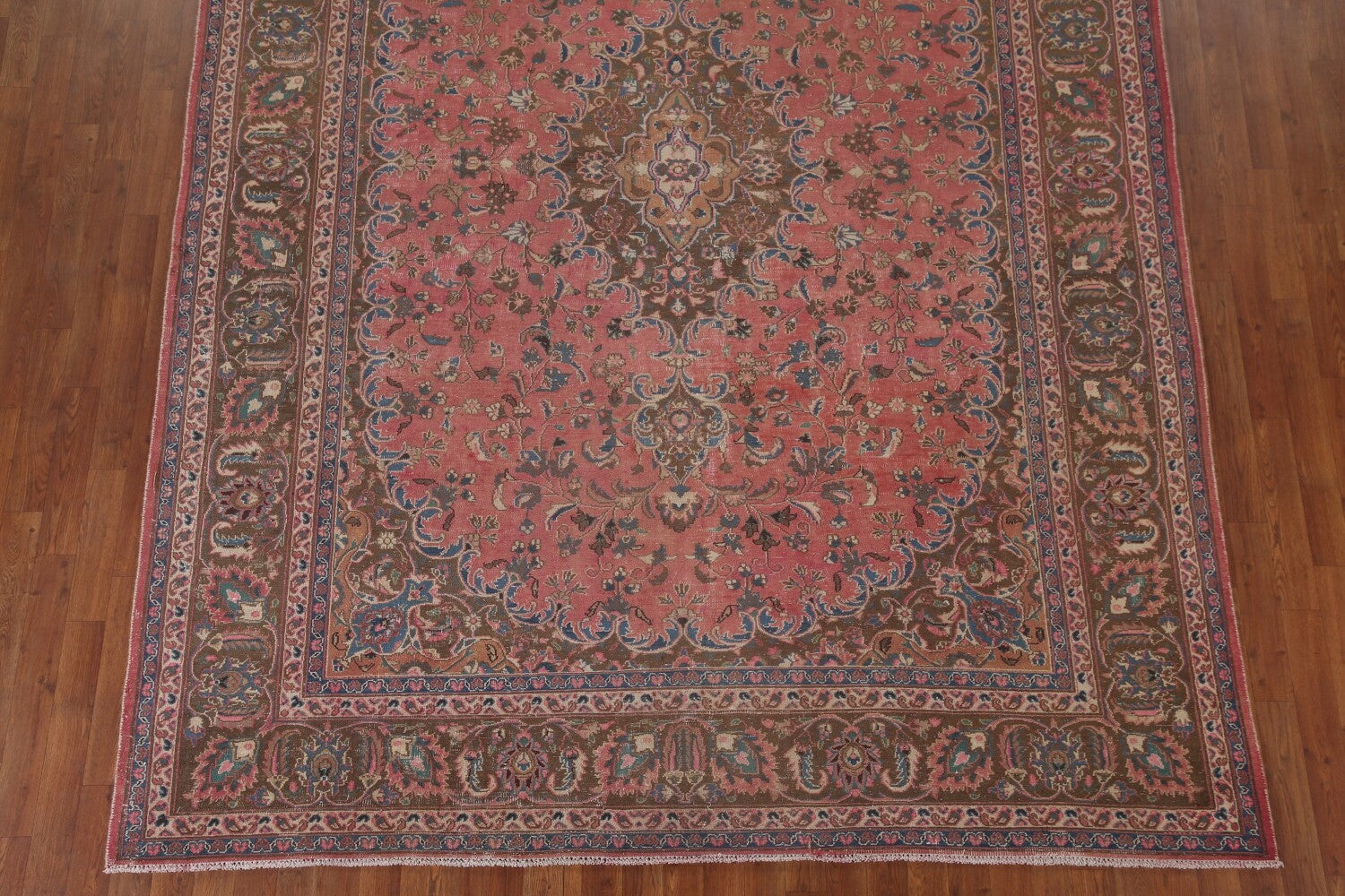 A Beautiful Genuine Persia ( Persia ) Mashad rug is Hand Knotted by skillful weavers in Persia ( Persia ) with 100% Wool Material. This rug is in Very Good (Evenly Low Pile) condition. dimensions are 10' 10'' X 7' 11'' in foot and 330 X 241 in centimeter. the primary color is Pink.