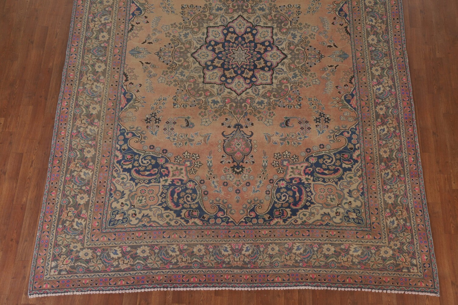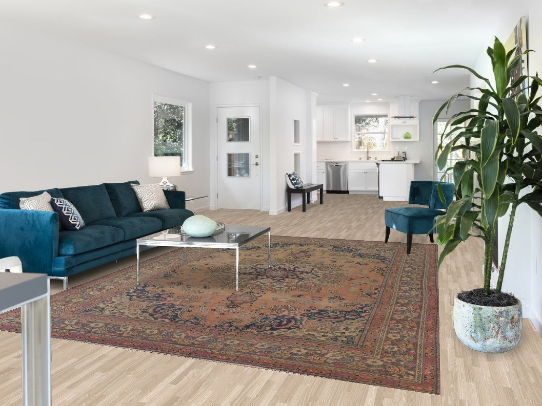 A Beautiful Genuine Persia ( Persia ) Mashad rug is Hand Knotted by skillful weavers in Persia ( Persia ) with 100% Wool Material. This rug is in Very Good (Low Pile) condition. dimensions are 11' 0'' X 8' 0'' in foot and 335 X 244 in centimeter. the primary color is Coral.