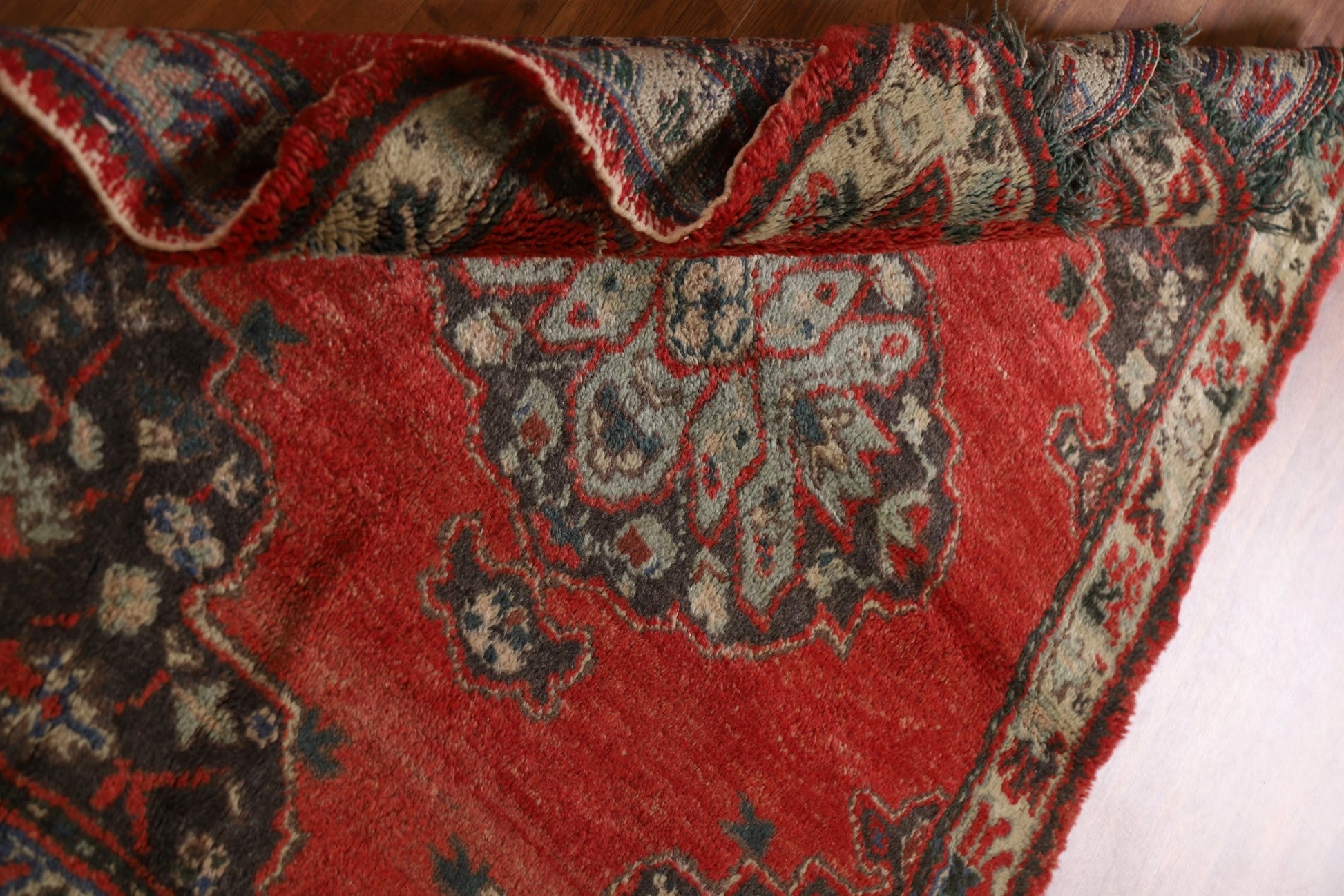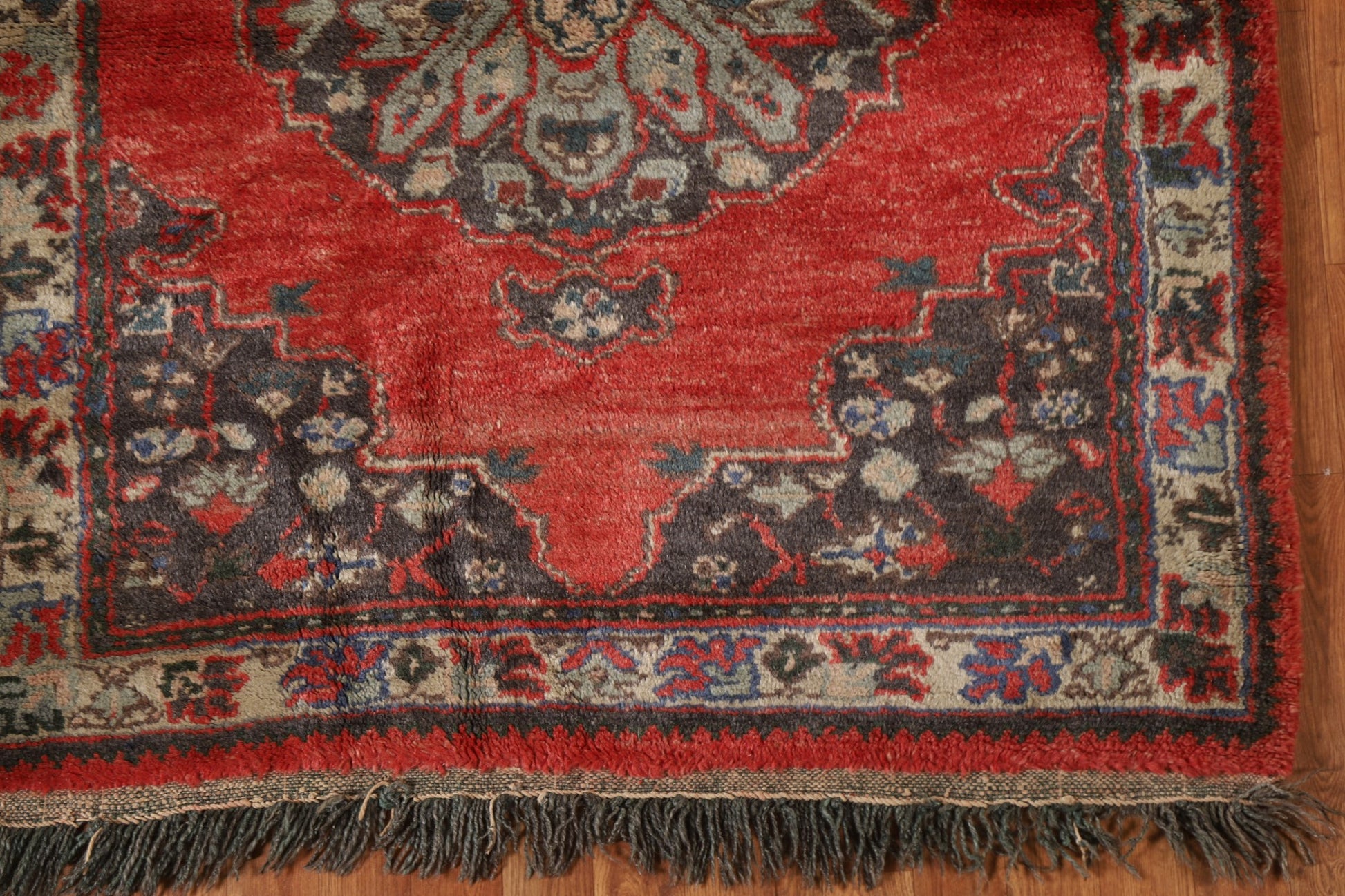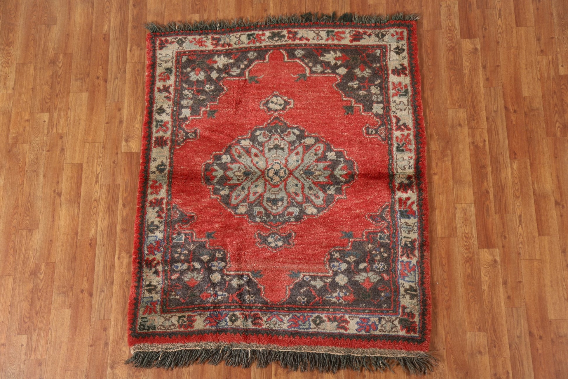 A Beautiful Genuine Turkey Oushak rug is Hand Knotted by skillful weavers in Turkey with 100% Wool Material. This rug is in Very Good condition. dimensions are 4' 11'' X 4' 2'' in foot and 150 X 127 in centimeter. the primary color is Red.