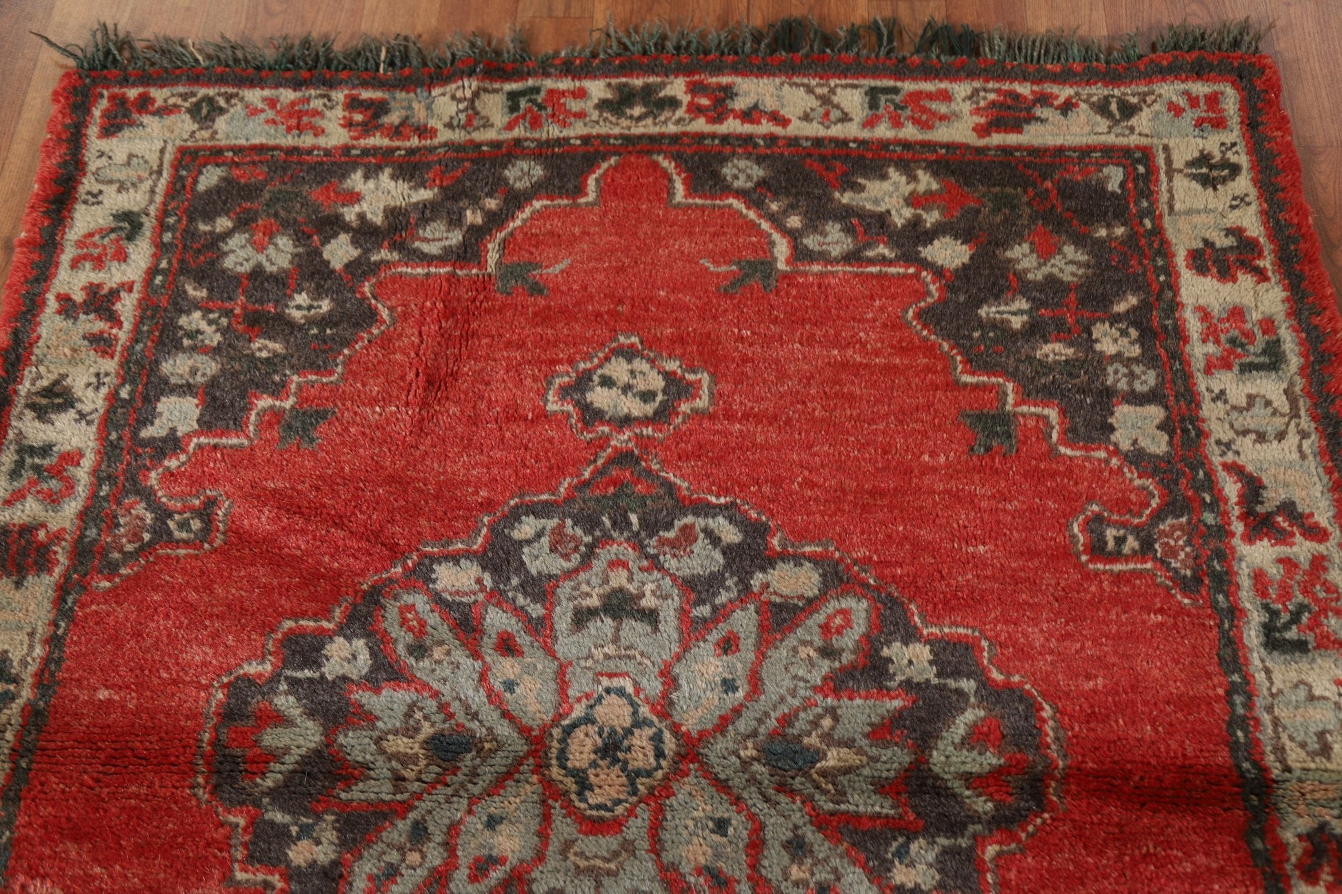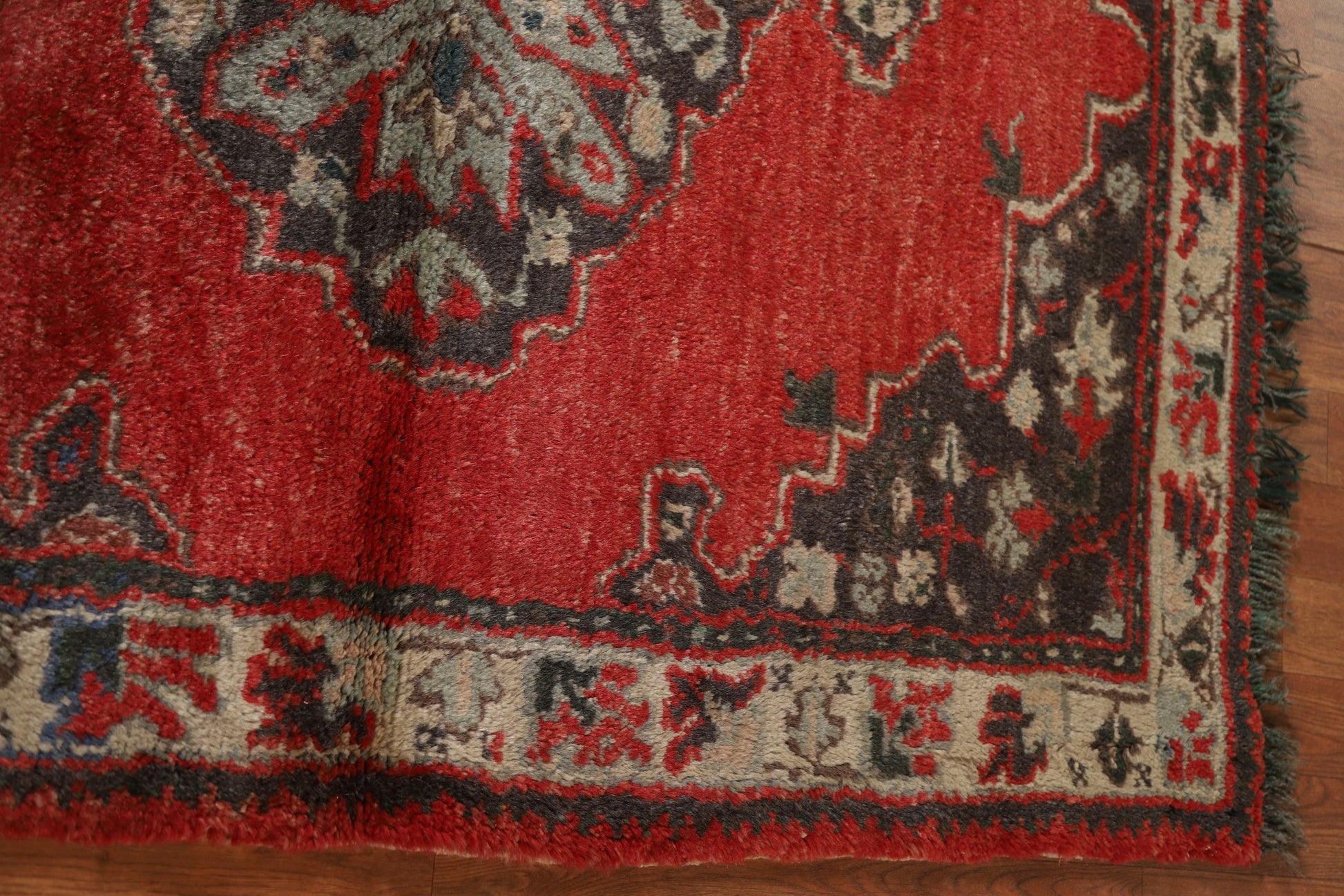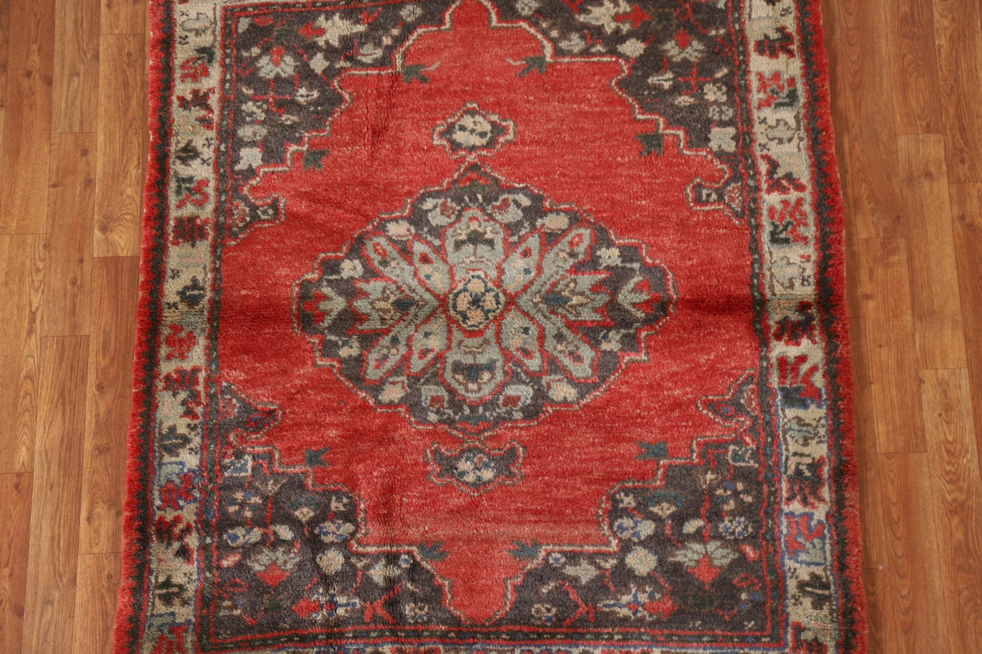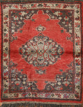 A Beautiful Genuine Turkey Oushak rug is Hand Knotted by skillful weavers in Turkey with 100% Wool Material. This rug is in Very Good condition. dimensions are 4' 11'' X 4' 2'' in foot and 150 X 127 in centimeter. the primary color is Red.