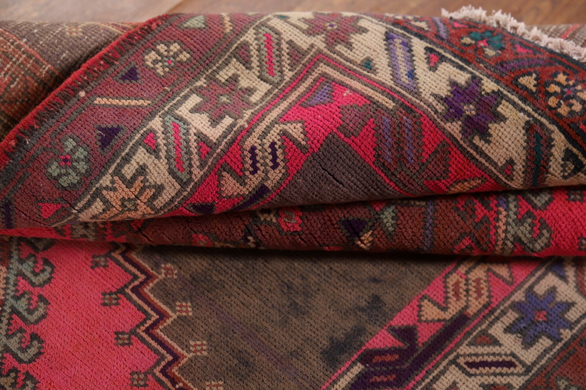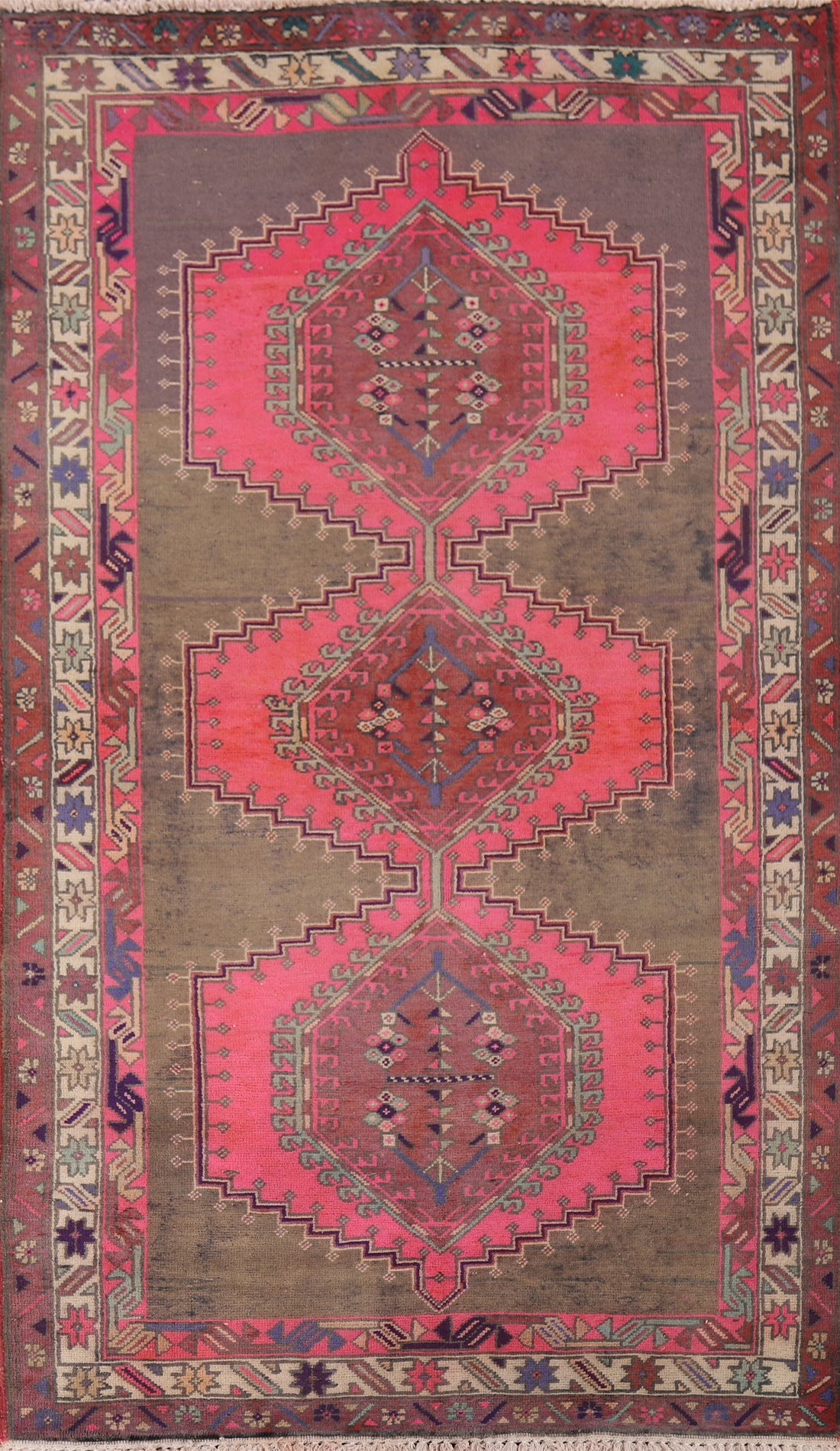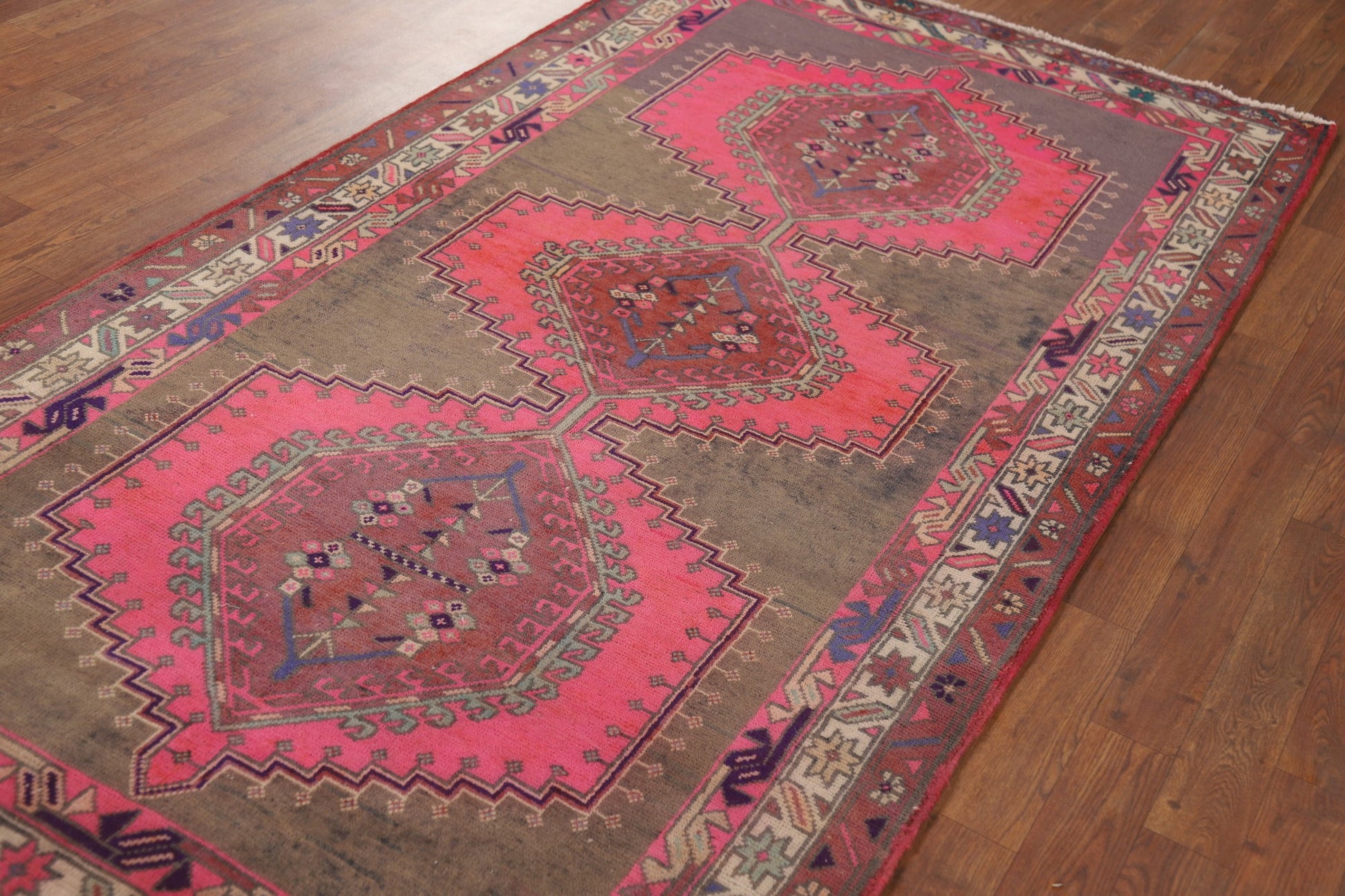 Vintage Pink Geometric Ardebil Persian Rug 4x8