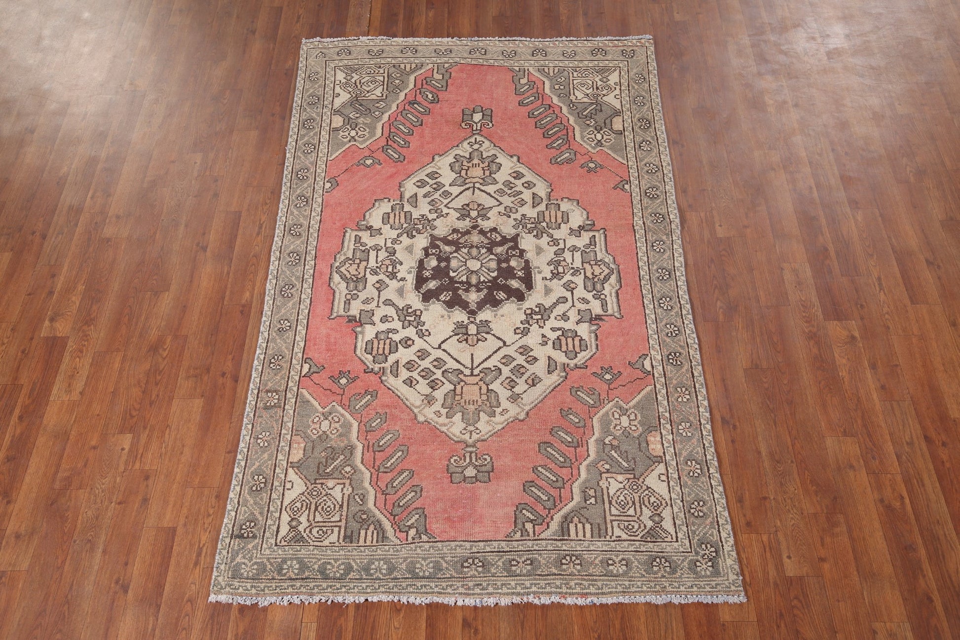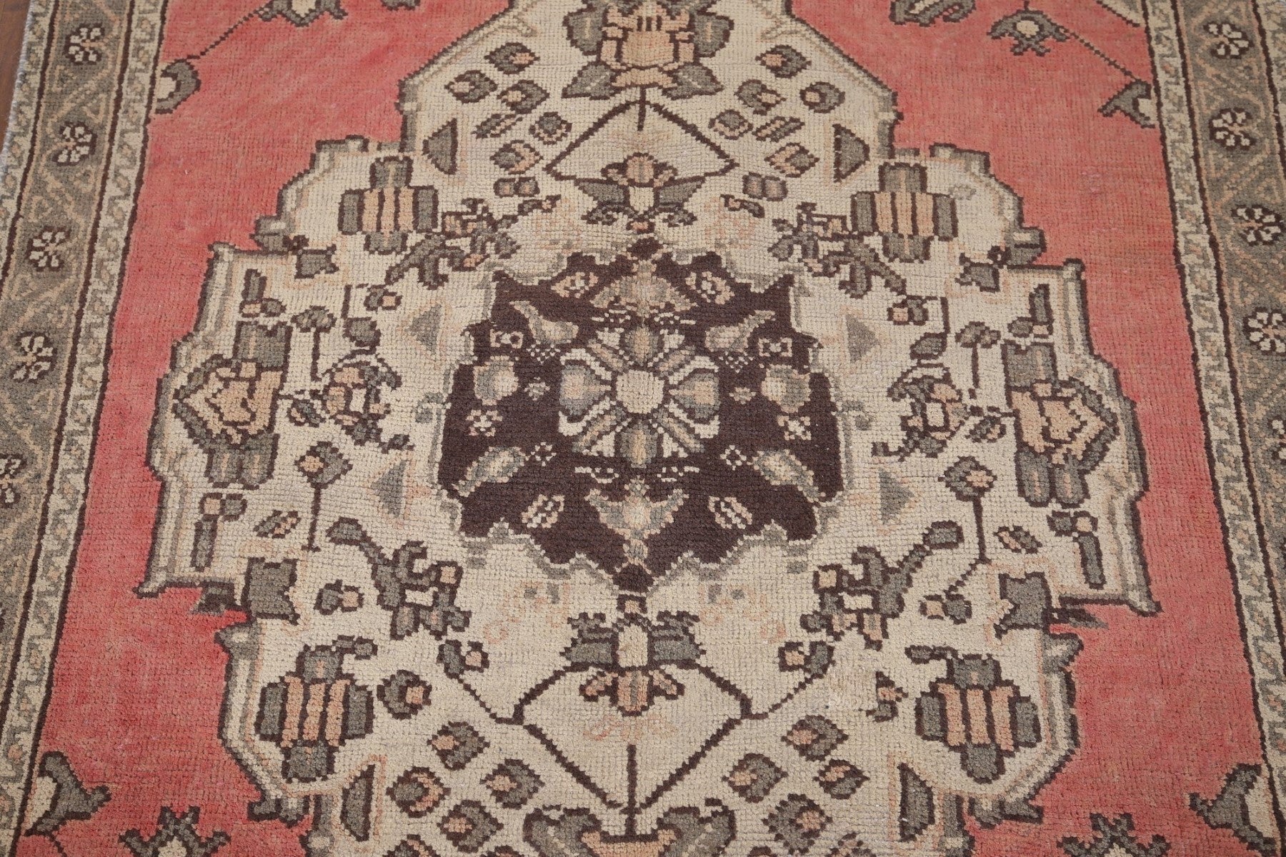 Vintage Pink Geometric Hamedan Persian Rug 4x7
