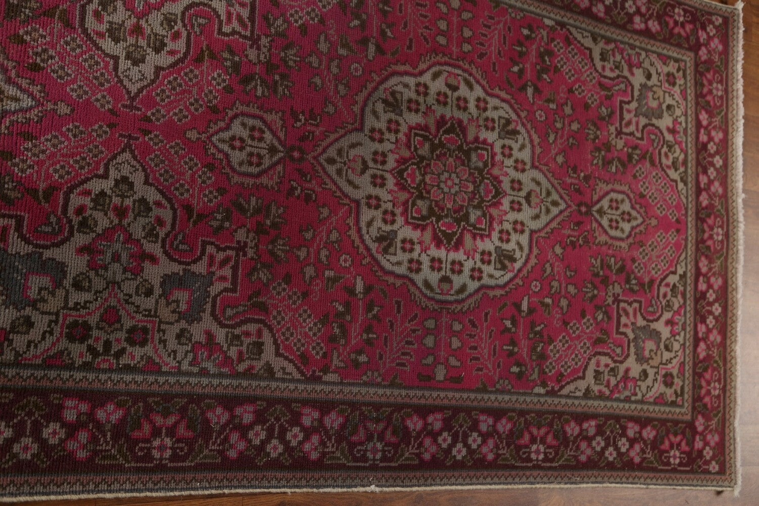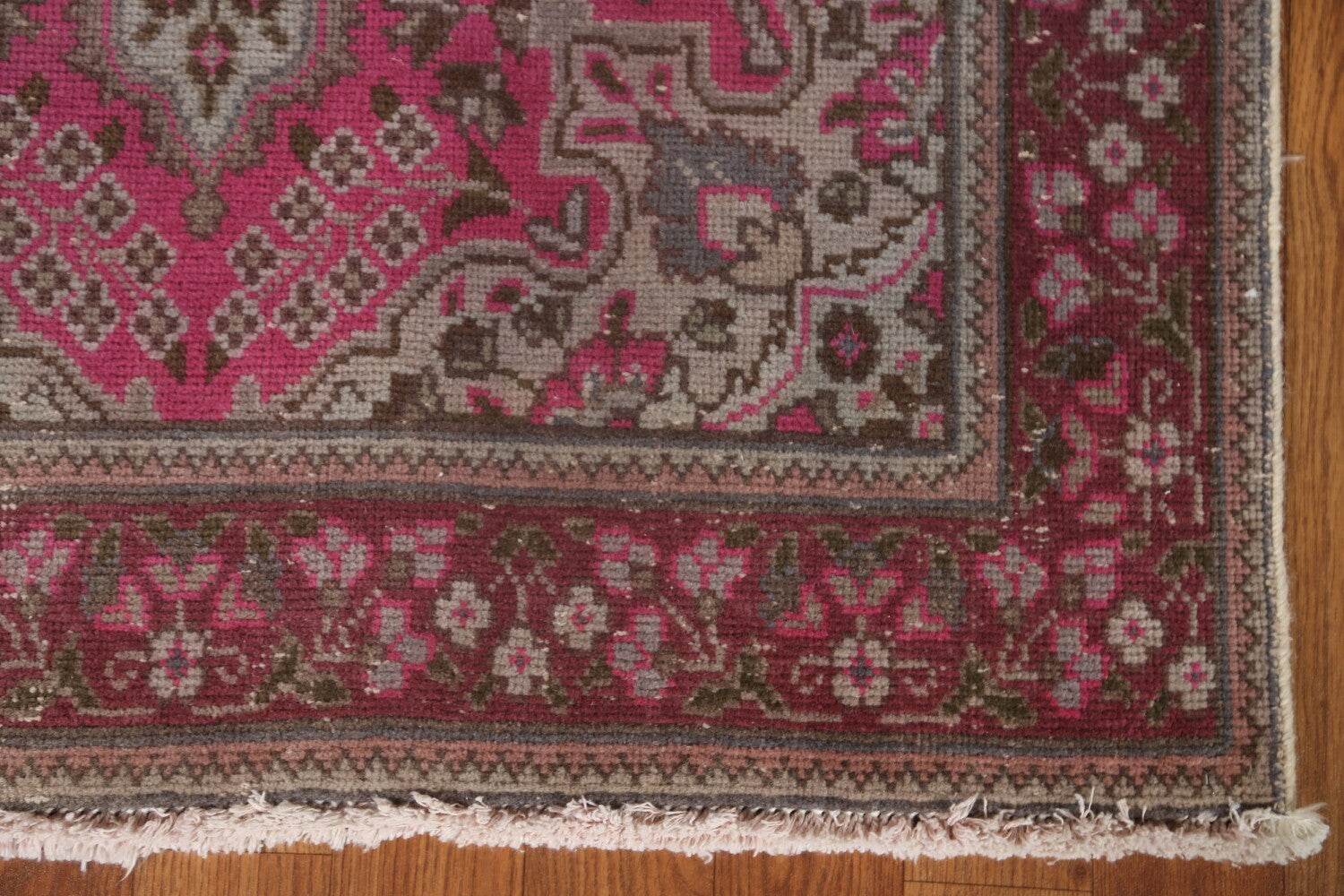 Vintage Pink Tabriz Persian Runner Rug 3x13