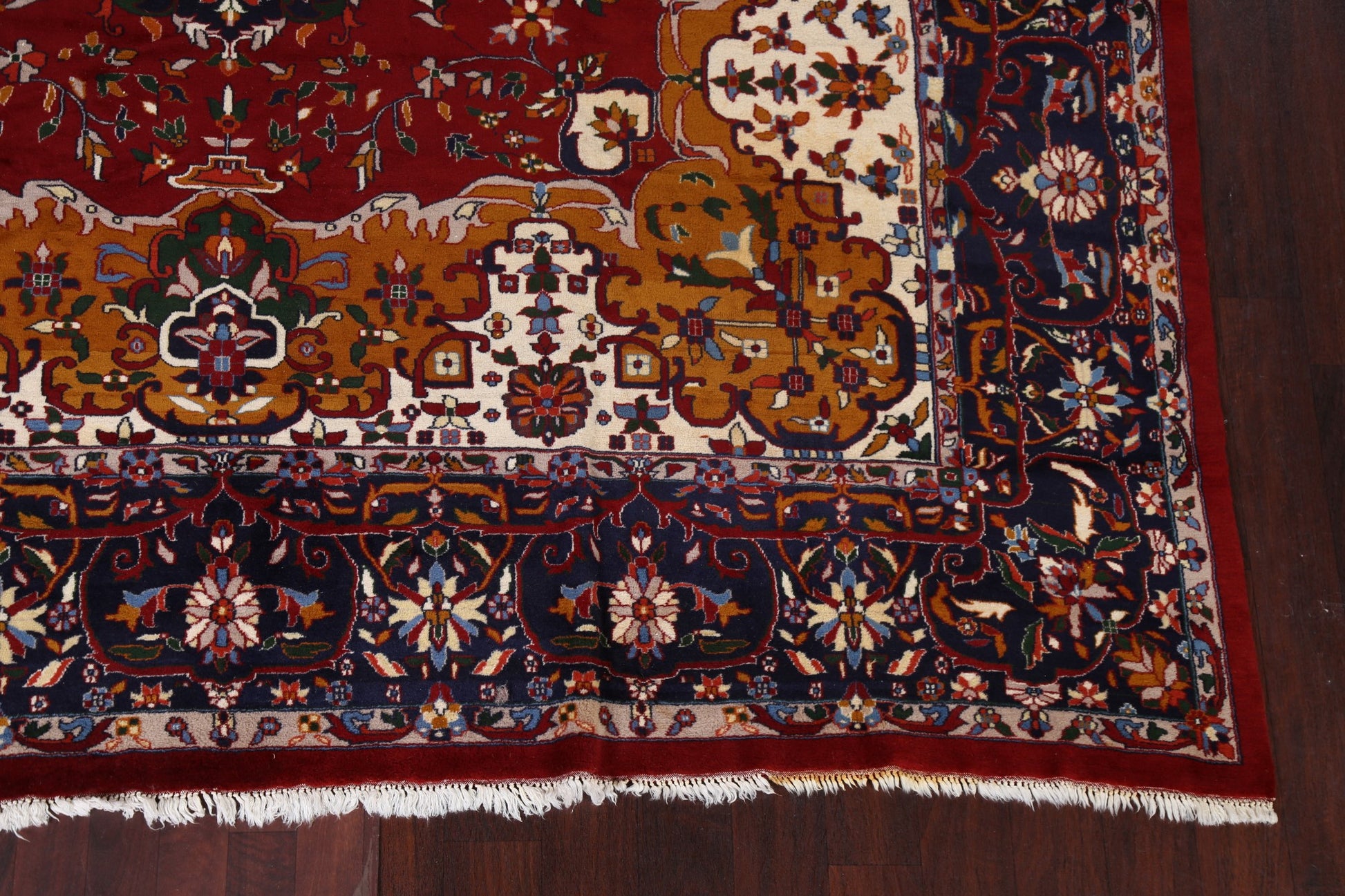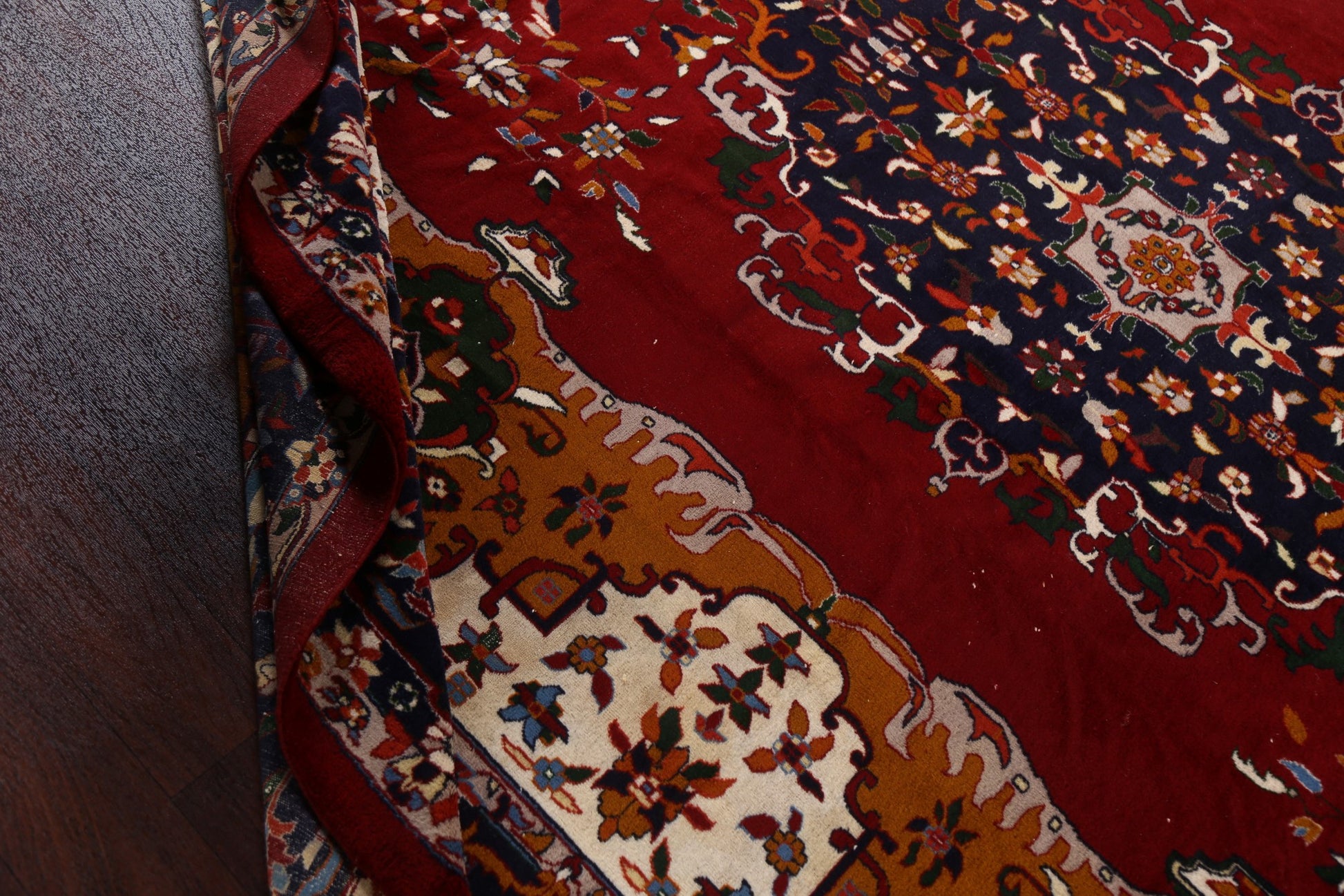 A Beautiful Genuine Pakistan Bokhara rug is Hand Knotted by skillful weavers in Pakistan with 100% Wool Material. This rug is in Very Good ( Low Pile ) condition. dimensions are 13' 0'' X 9' 3'' in foot and 396 X 282 in centimeter. the primary color is Red.