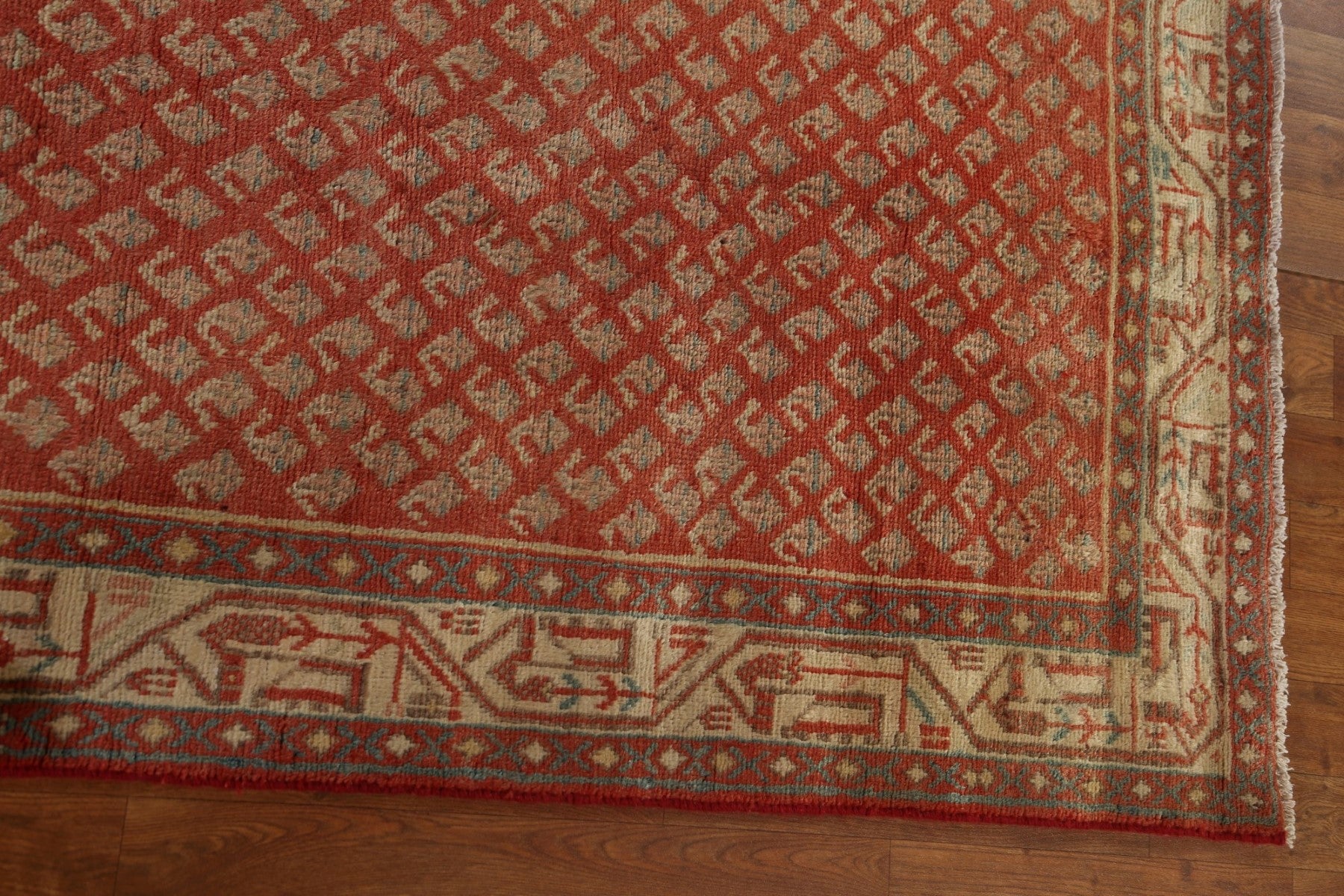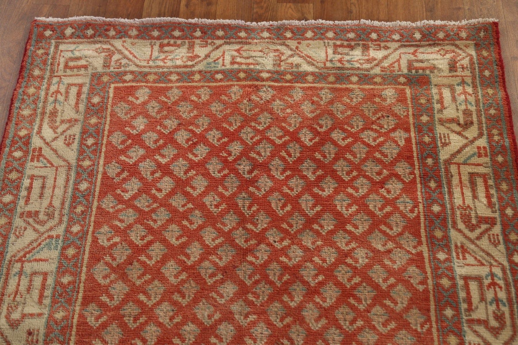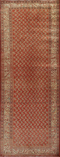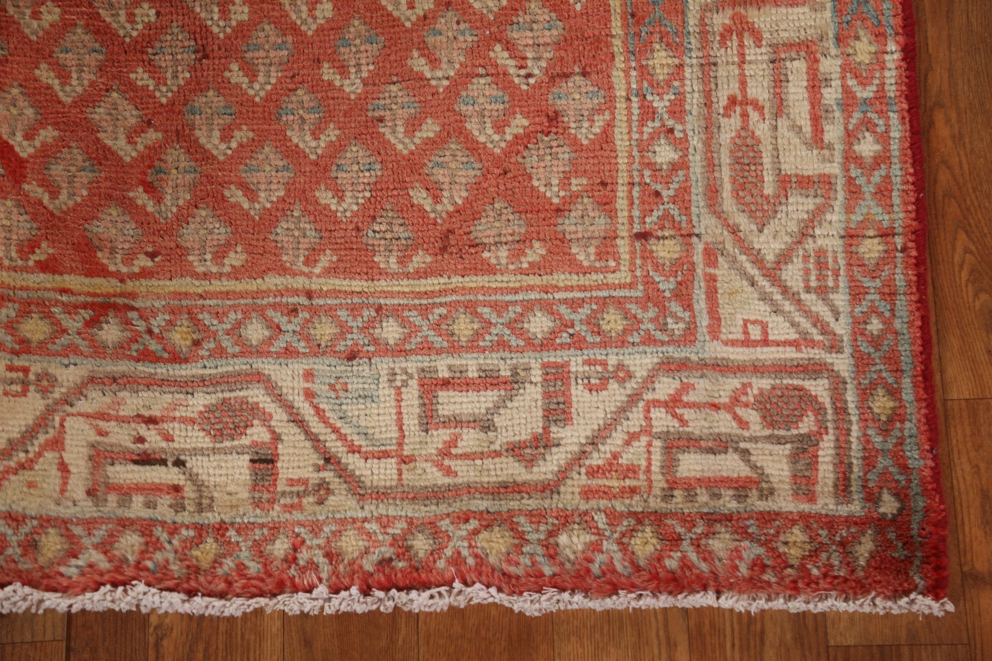 A Beautiful Genuine Persia ( Persia ) Botemir rug is Hand Knotted by skillful weavers in Persia ( Persia ) with 100% Wool Material. This rug is in Very Good (Abrash) condition. dimensions are 10' 1'' X 3' 4'' in foot and 307 X 102 in centimeter. the primary color is Red.
