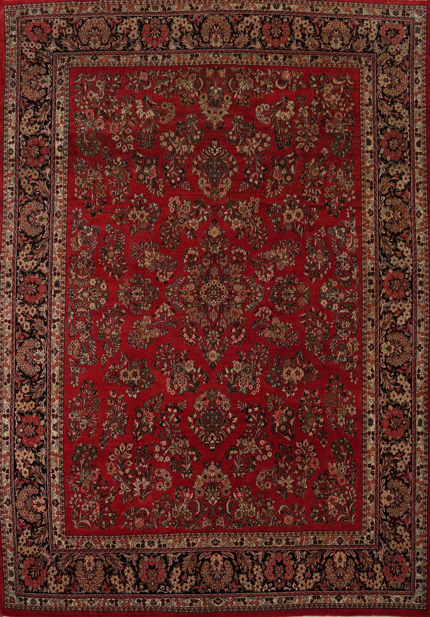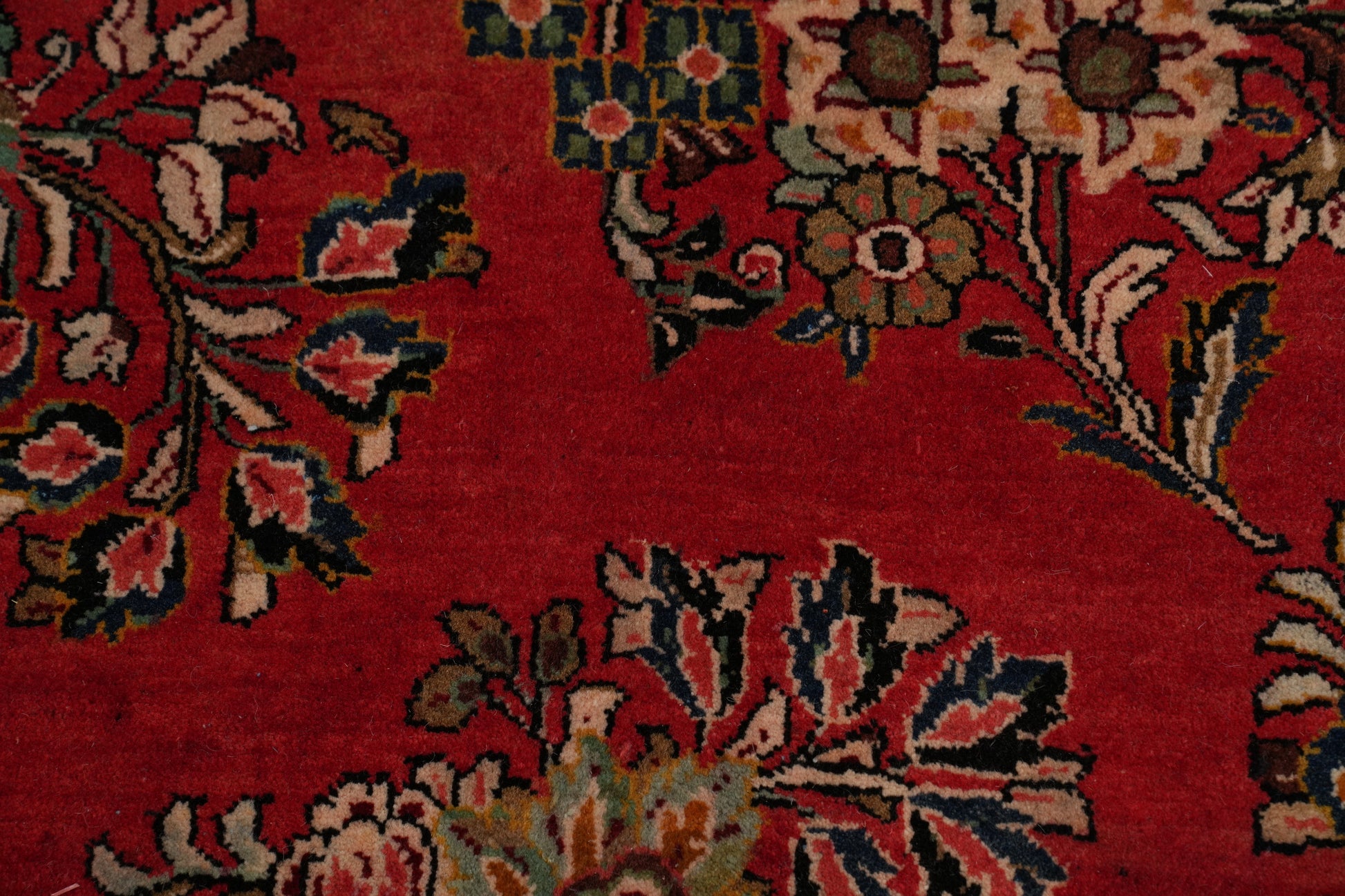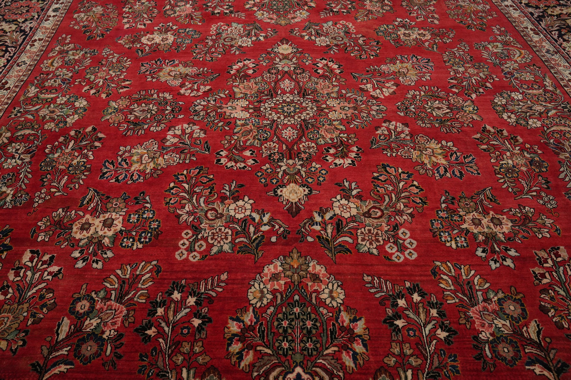 Vintage Red Floral Sarouk Persian Large Rug 13x16