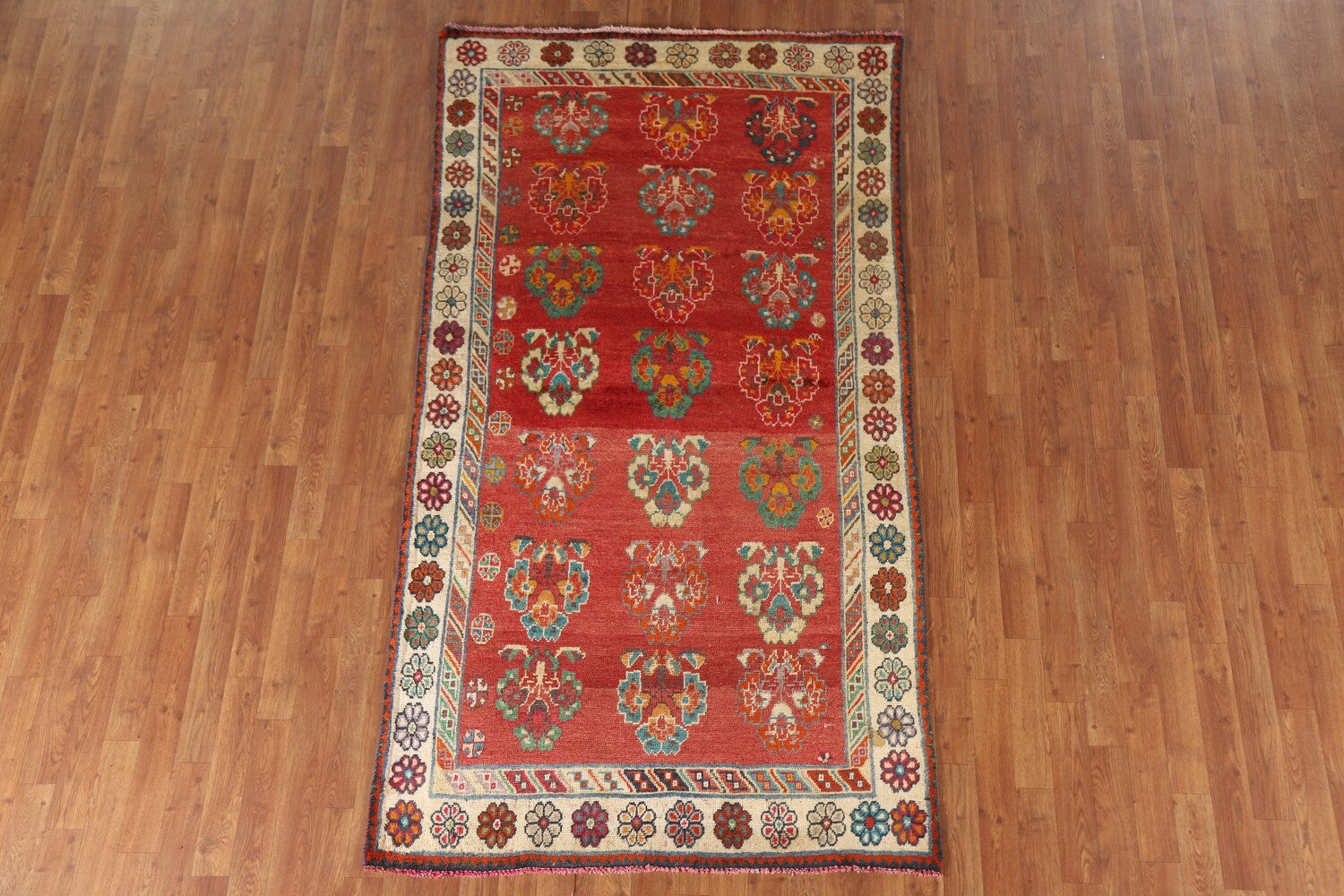 A Beautiful Genuine Persia ( Persia ) Gabbeh rug is Hand Knotted by skillful weavers in Persia ( Persia ) with 100% Wool Material. This rug is in Very Good (Abrash-Stain) condition. dimensions are 7' 10'' X 4' 1'' in foot and 239 X 124 in centimeter. the primary color is Red.