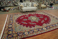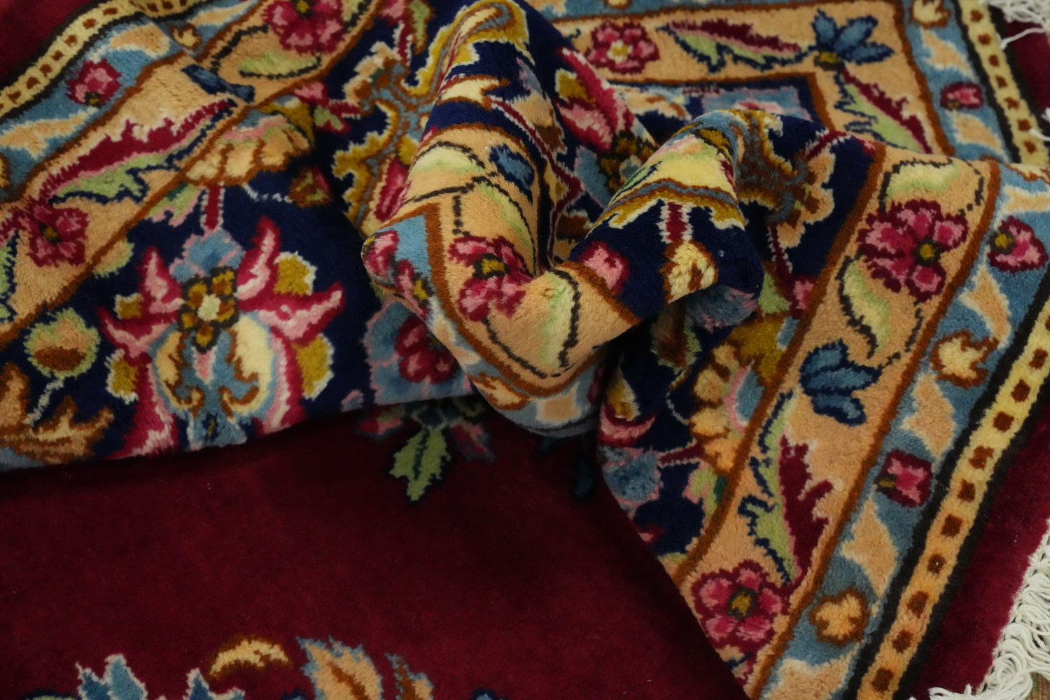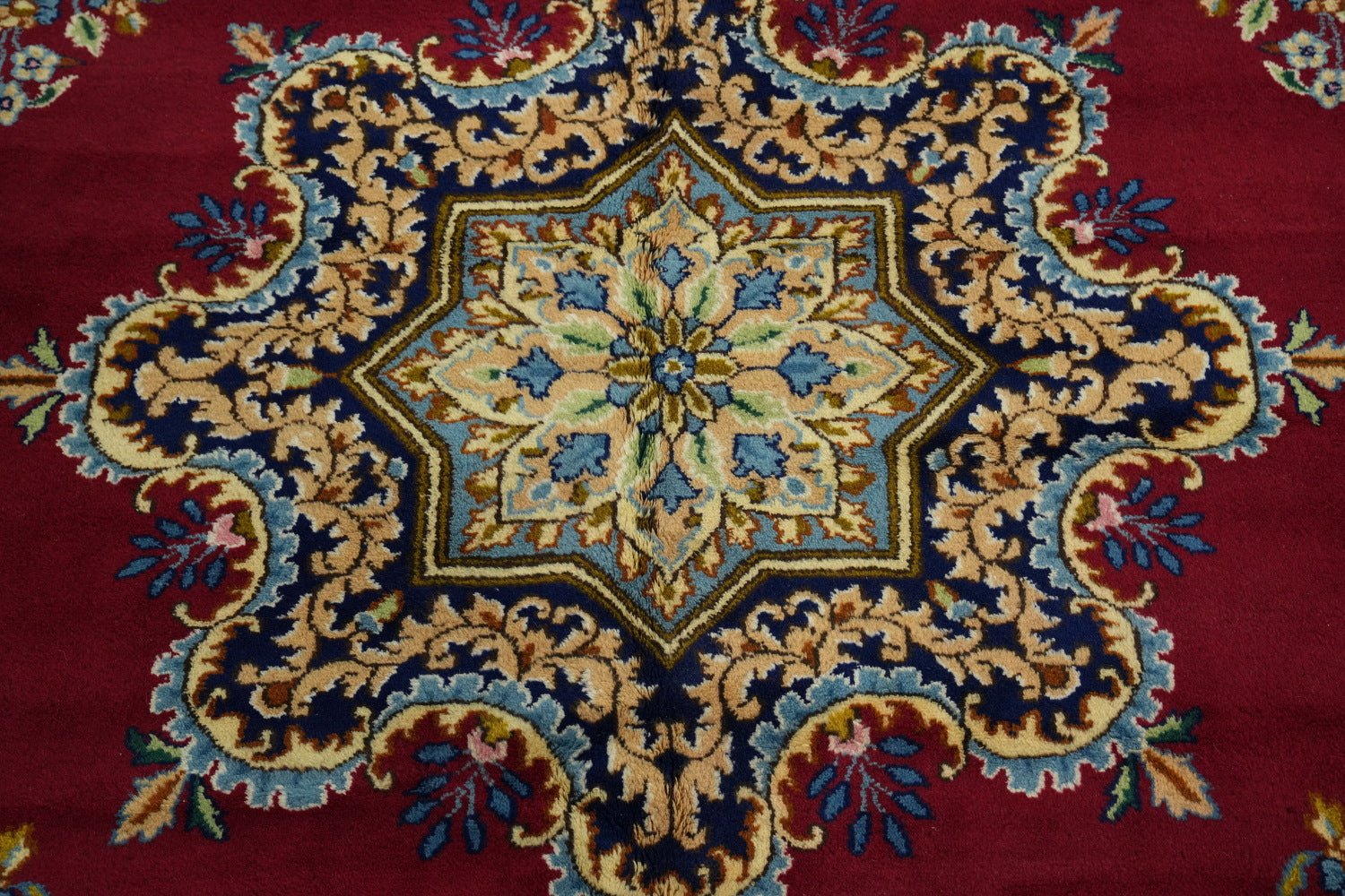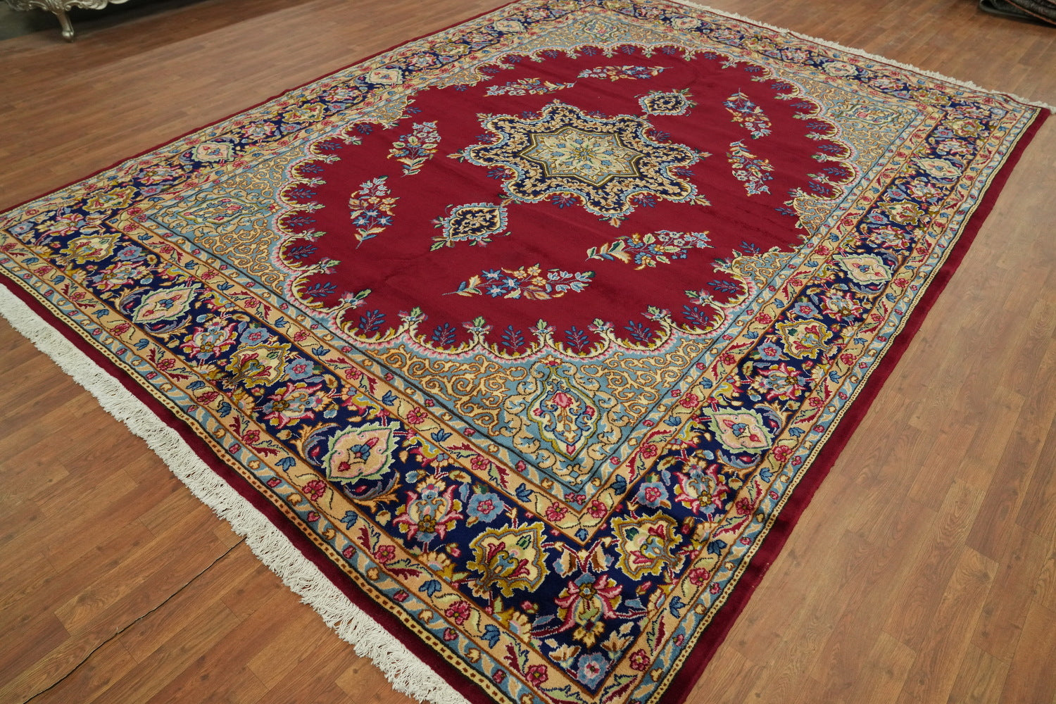 A Beautiful Genuine Persia ( Persia ) Kerman rug is Hand Knotted by skillful weavers in Persia ( Persia ) with 100% Wool Material. This rug is in Very Good condition. dimensions are 13' 1'' X 9' 7'' in foot and 399 X 292 in centimeter. the primary color is Red.