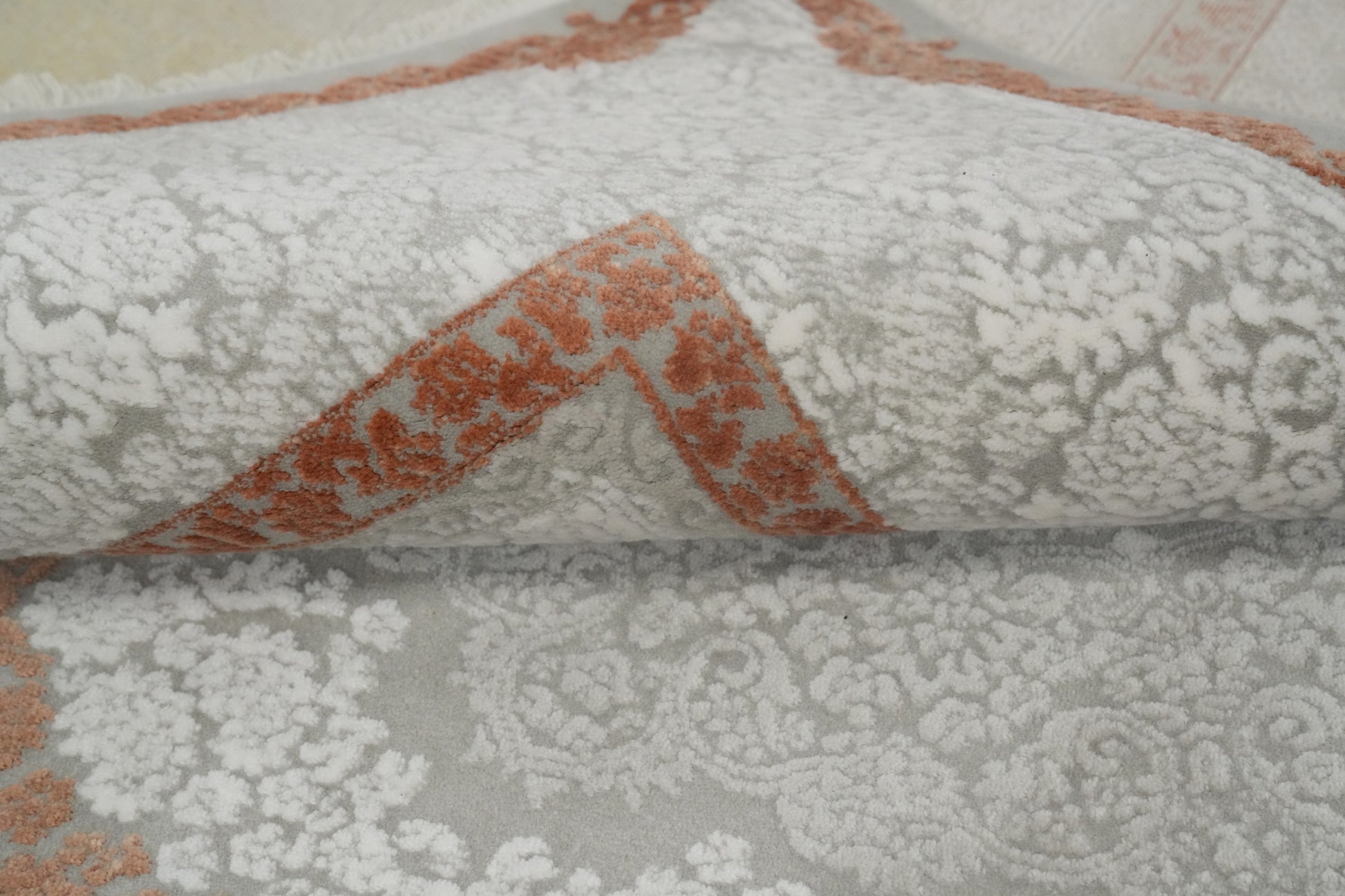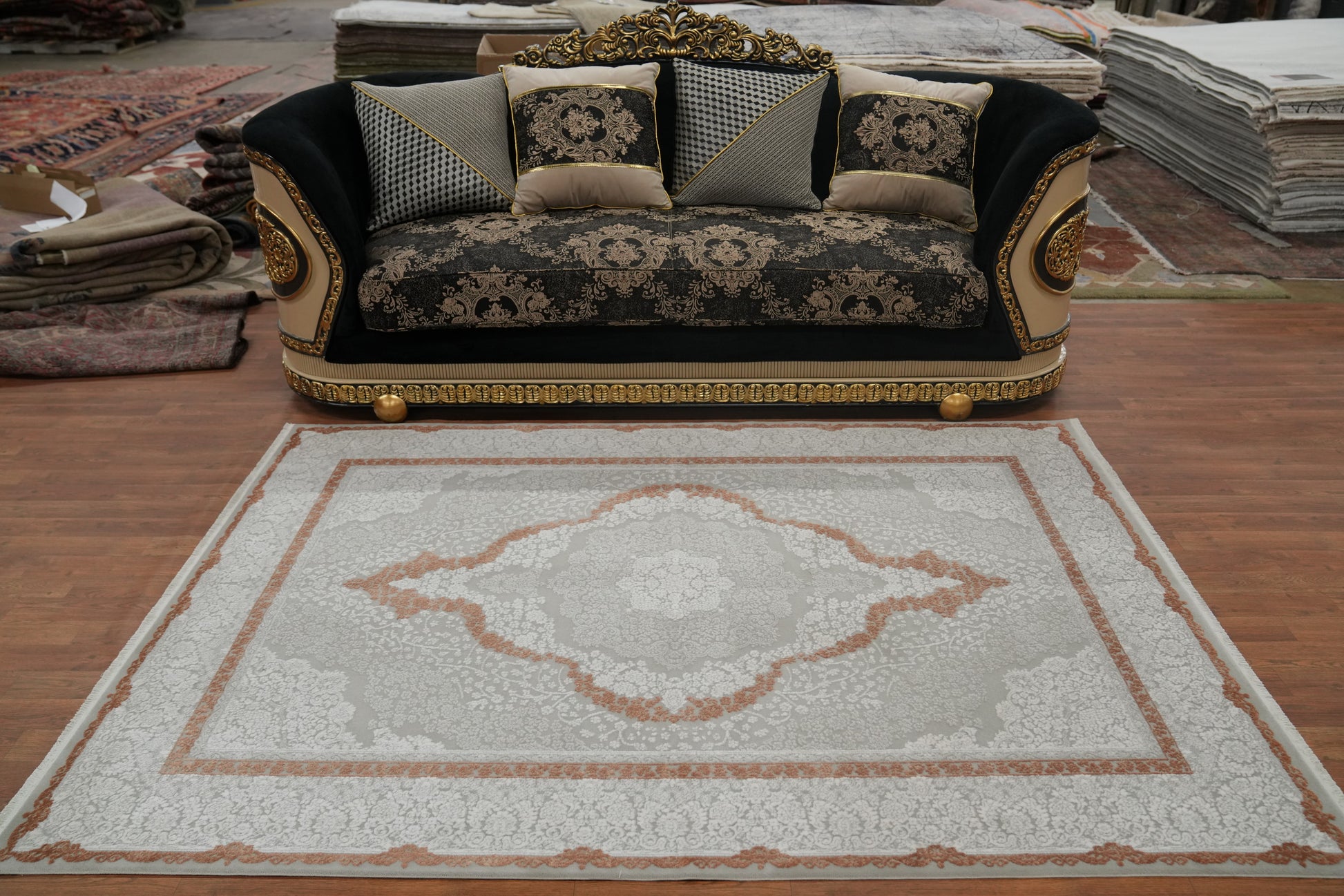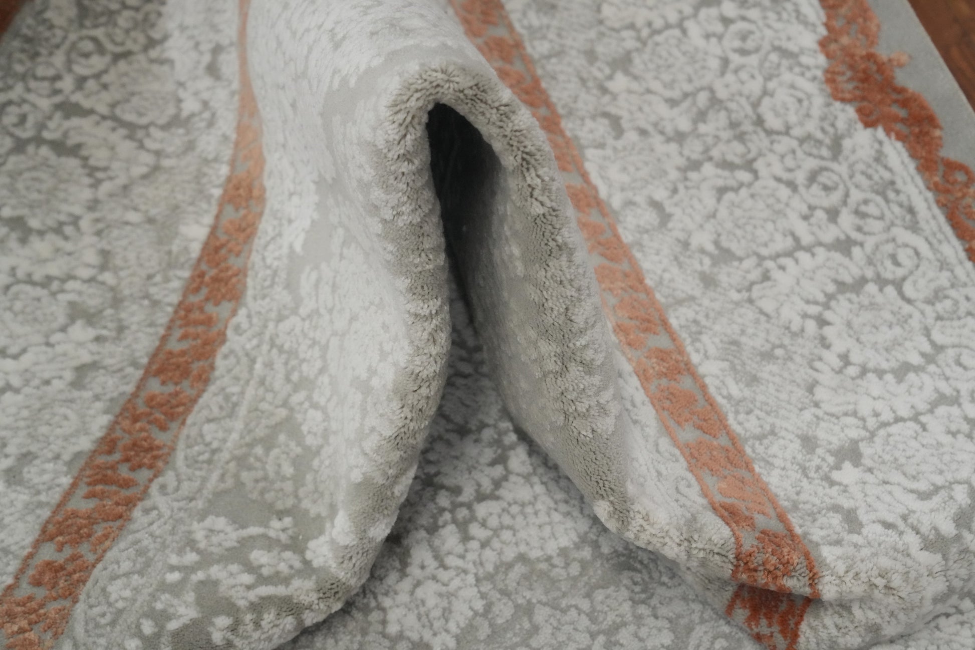 A Beautiful Genuine Turkey Tabriz rug is Machine Made by skillful weavers in Turkey with Polyester Material. This rug is in New, First Quality condition. dimensions are 7' 5'' X 5' 2'' in foot and 226 X 157 in centimeter. the primary color is Greys & Charcoal.