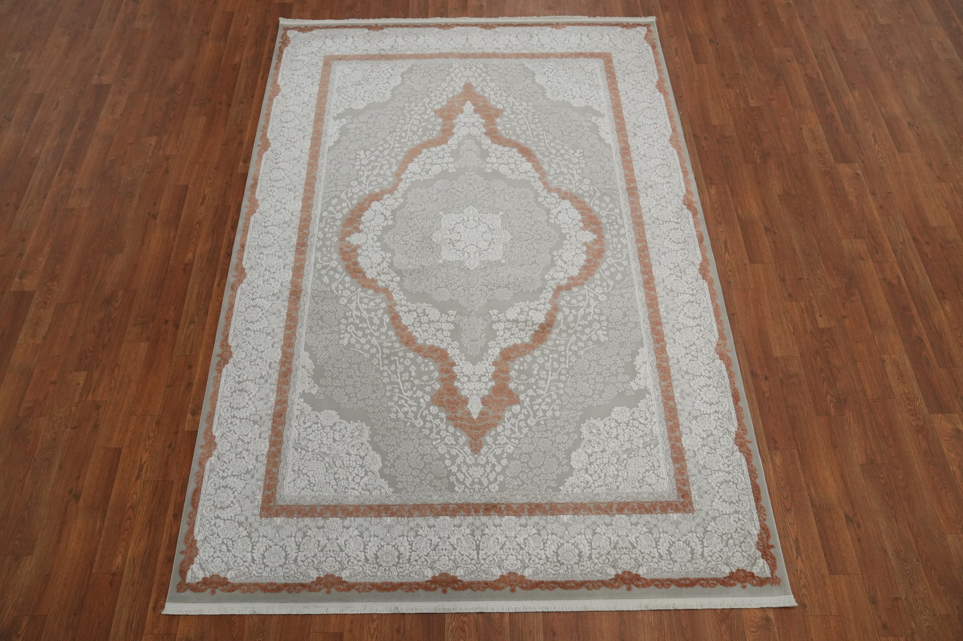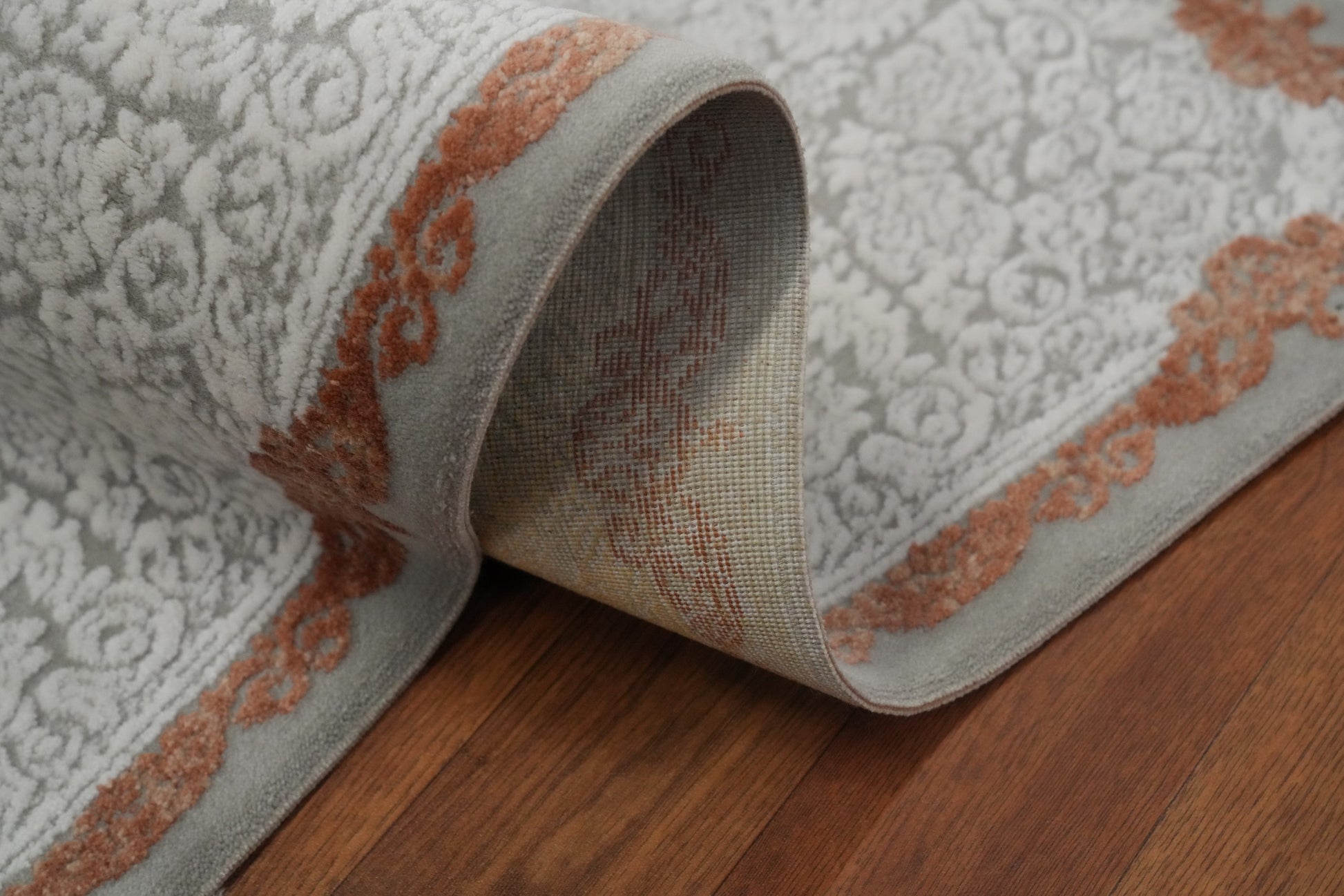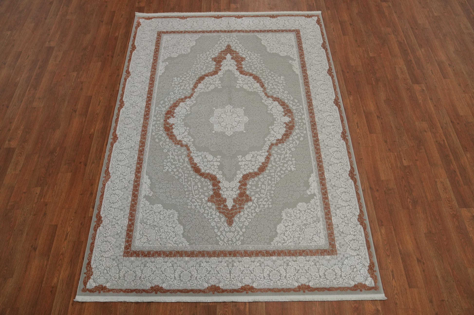 A Beautiful Genuine Turkey Tabriz rug is Machine Made by skillful weavers in Turkey with Polyester Material. This rug is in New, First Quality condition. dimensions are 7' 5'' X 5' 2'' in foot and 226 X 157 in centimeter. the primary color is Greys & Charcoal.