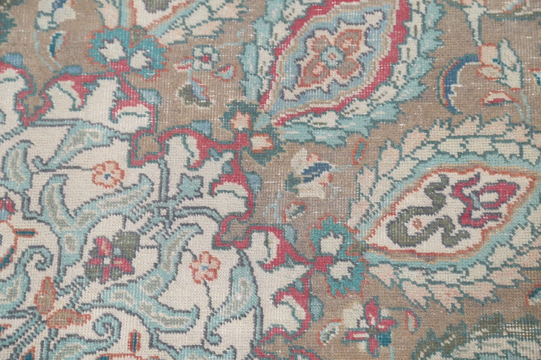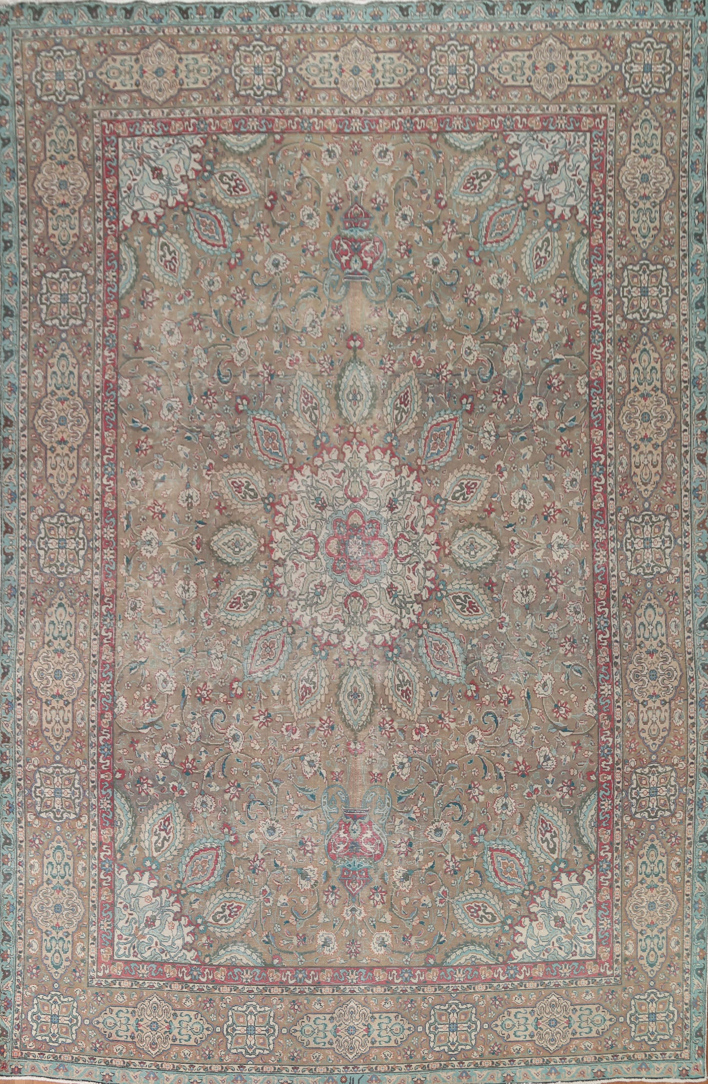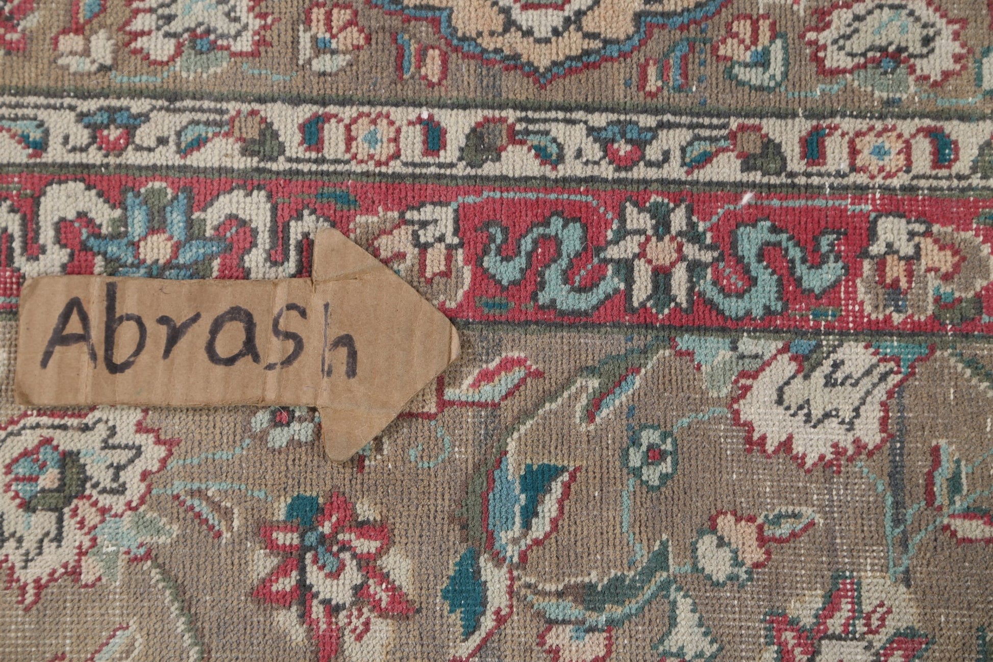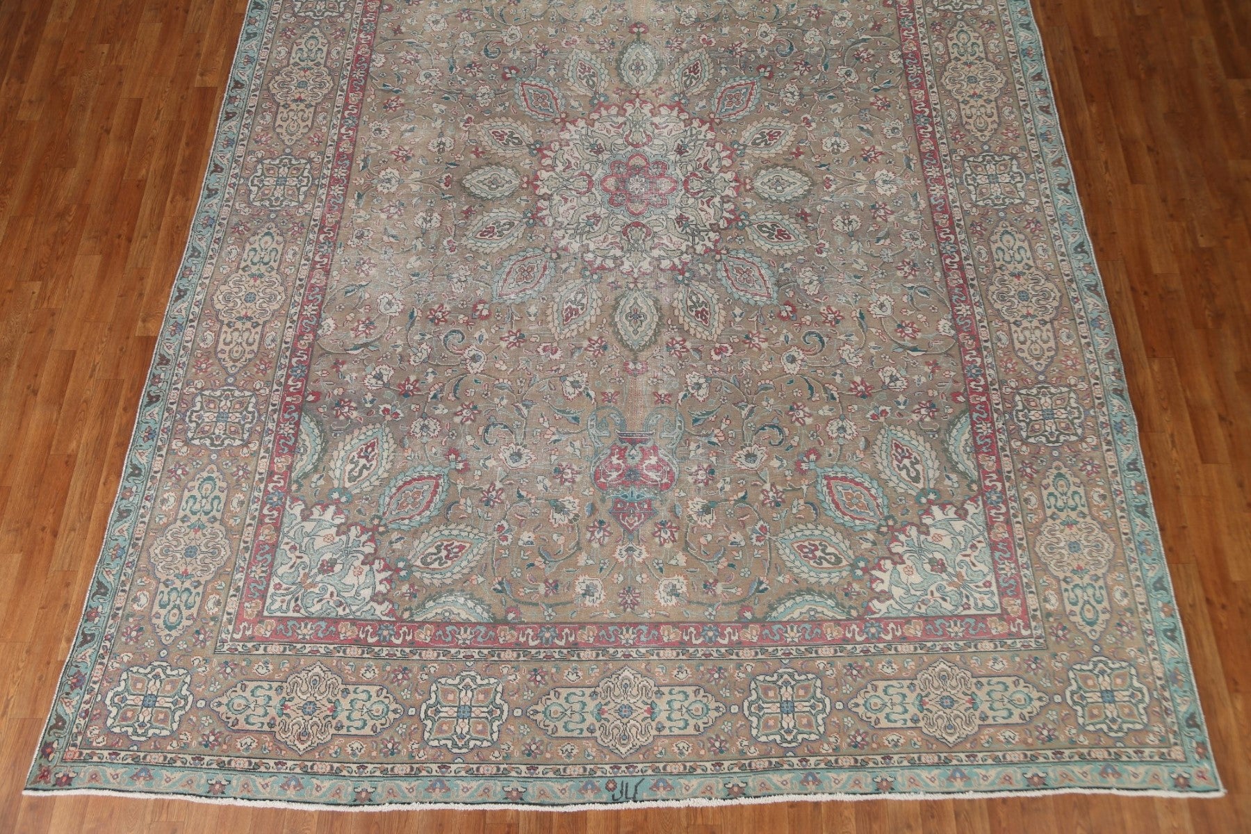 A Beautiful Genuine Persia ( Persia ) Tabriz rug is Hand Knotted by skillful weavers in Persia ( Persia ) with 100% Wool Material. This rug is in Very Good (Low Pile-Abrash) condition. dimensions are 12' 5'' X 9' 6'' in foot and 378 X 290 in centimeter. the primary color is Brown.