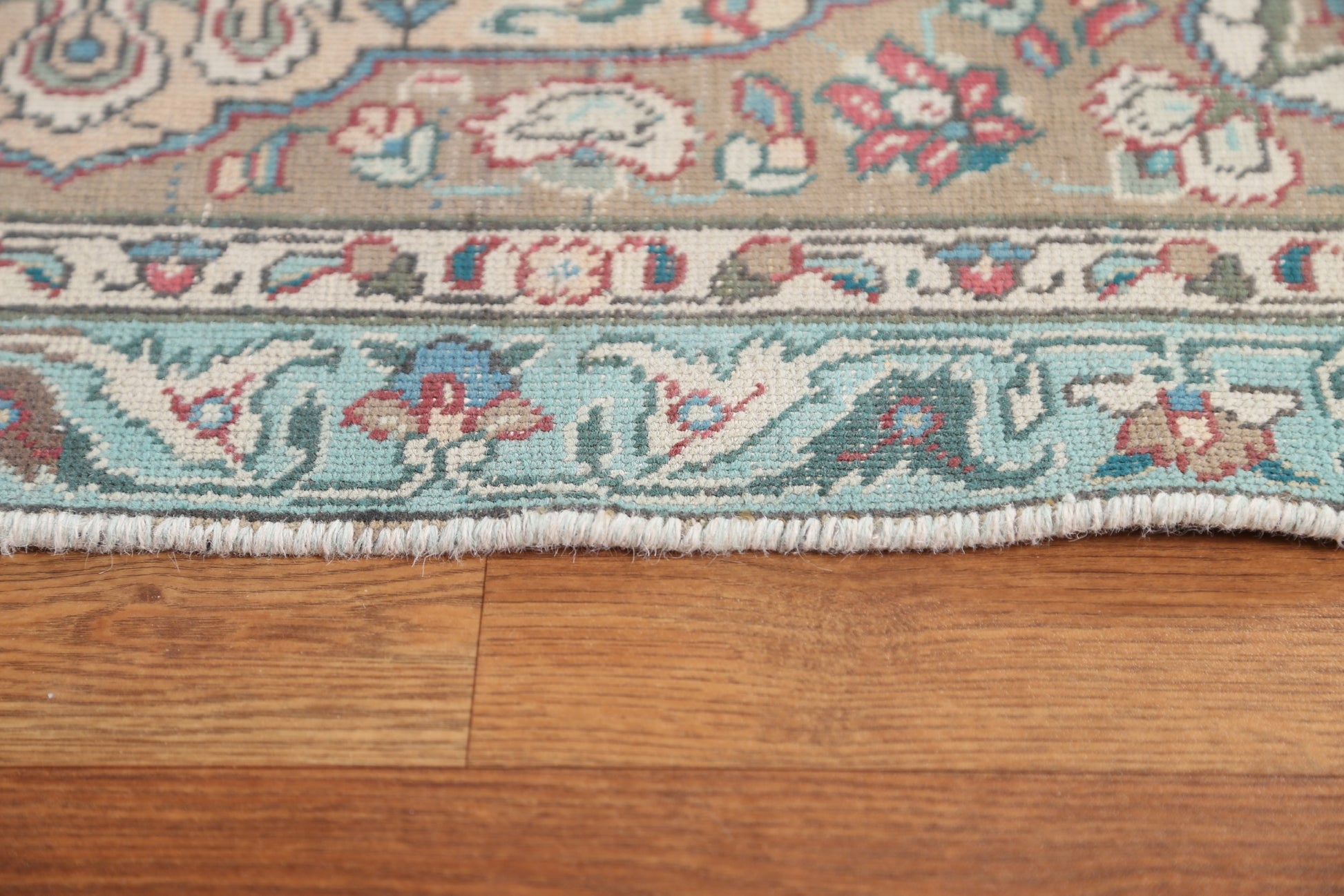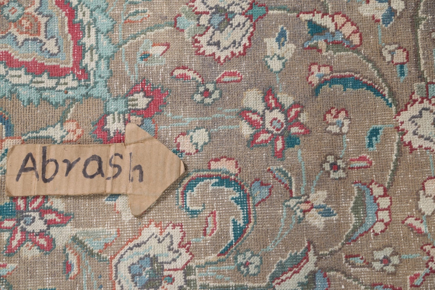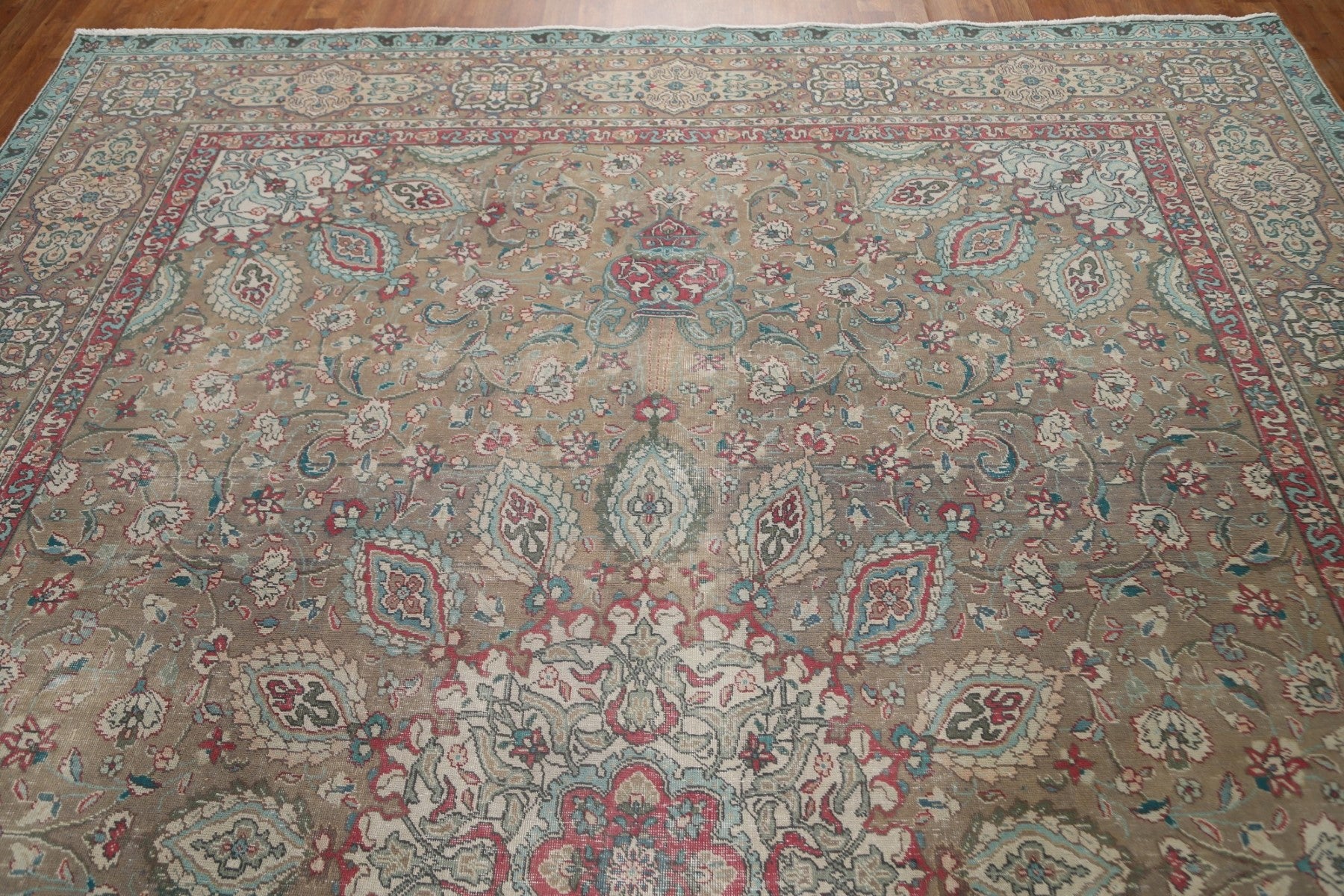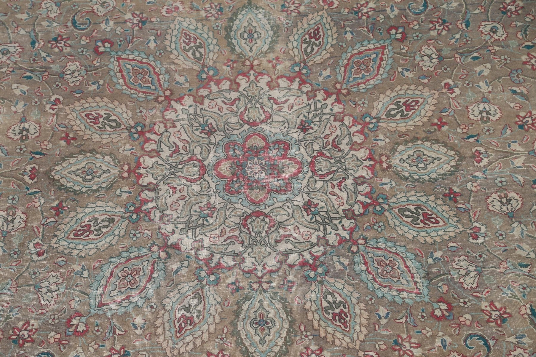 A Beautiful Genuine Persia ( Persia ) Tabriz rug is Hand Knotted by skillful weavers in Persia ( Persia ) with 100% Wool Material. This rug is in Very Good (Low Pile-Abrash) condition. dimensions are 12' 5'' X 9' 6'' in foot and 378 X 290 in centimeter. the primary color is Brown.