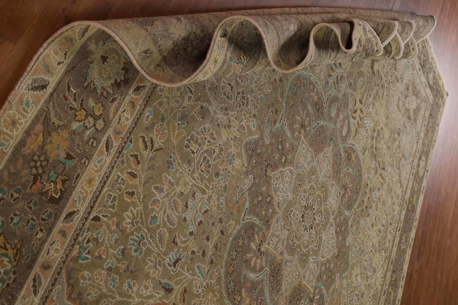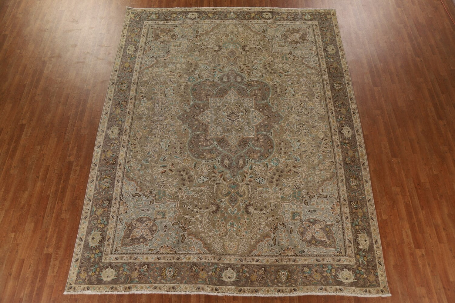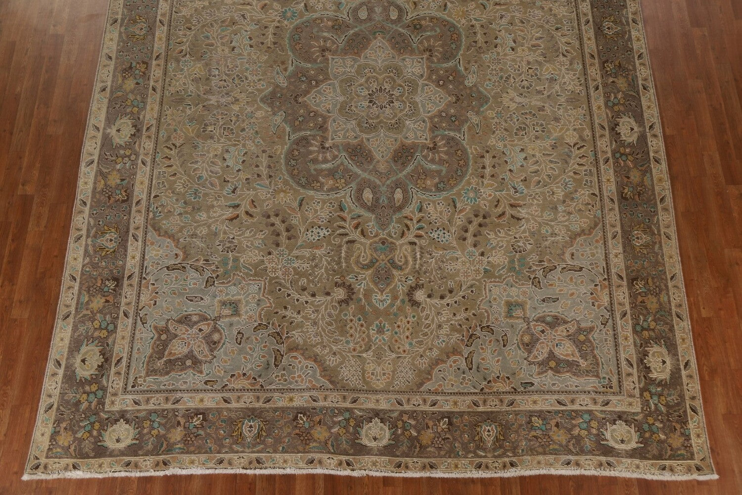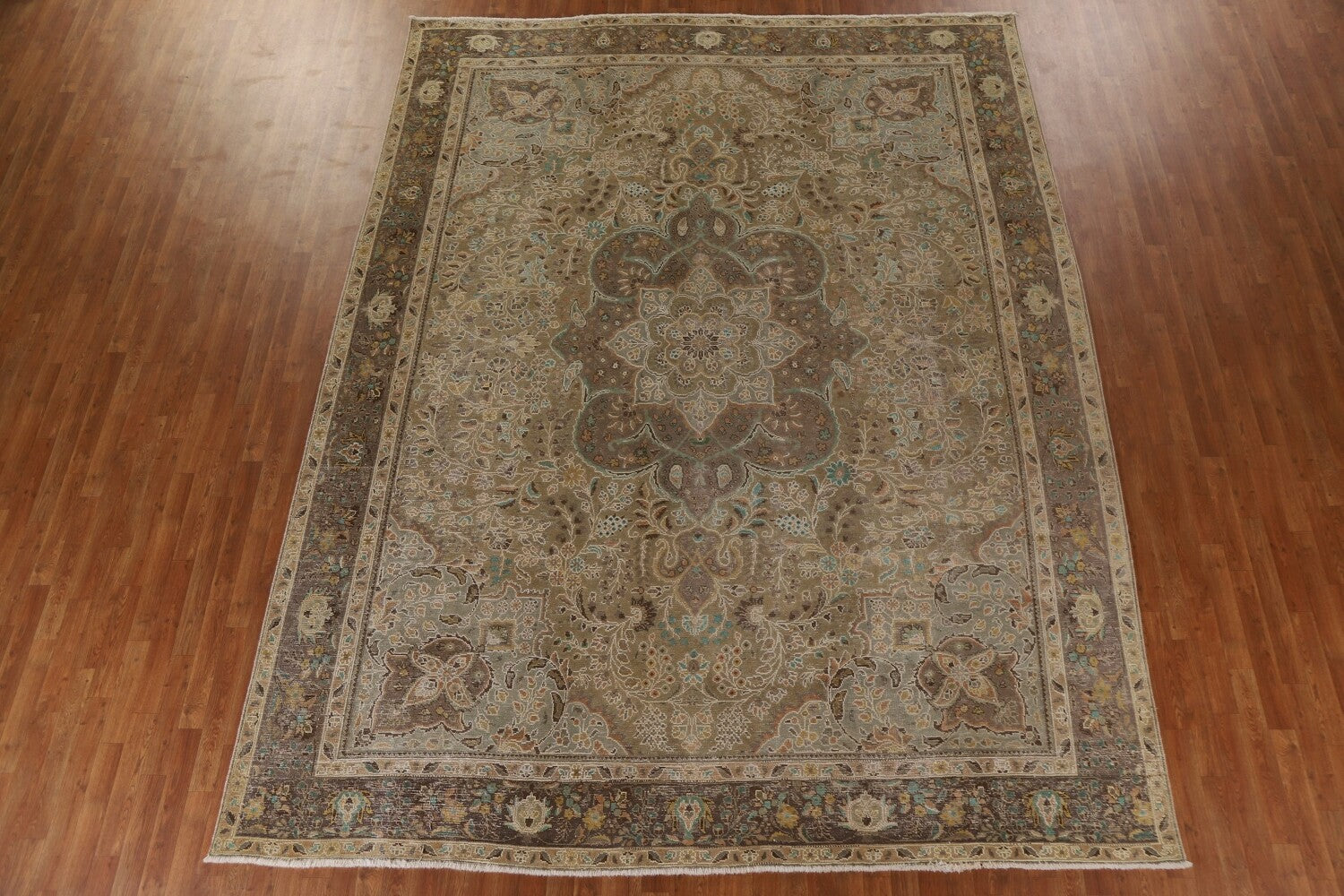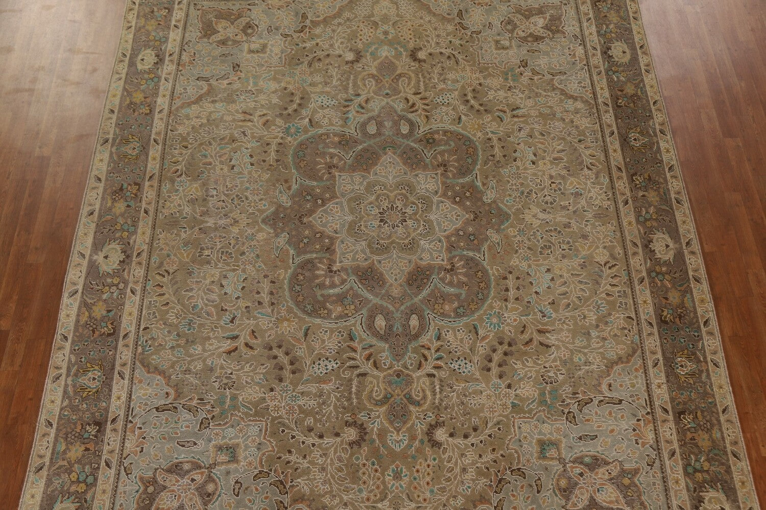 A Beautiful Genuine Persia ( Persia ) Tabriz rug is Hand Knotted by skillful weavers in Persia ( Persia ) with 100% Wool Material. This rug is in Very Good (Evenly Low Pile) condition. dimensions are 12' 7'' X 9' 10'' in foot and 384 X 300 in centimeter. the primary color is Brown.