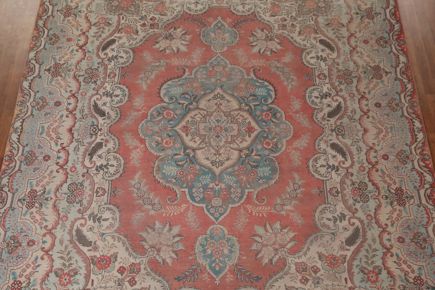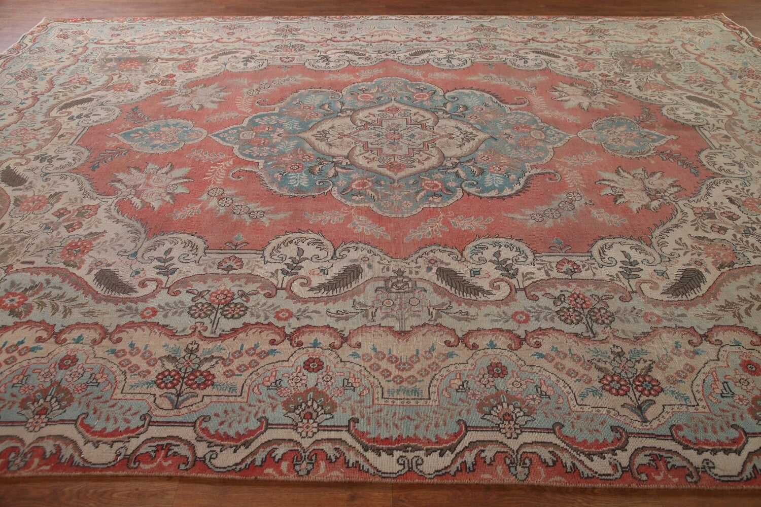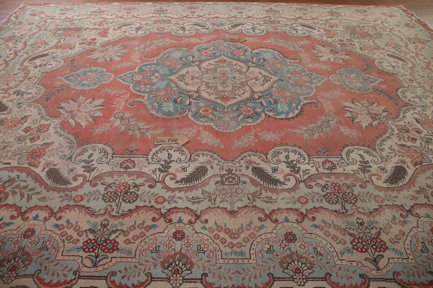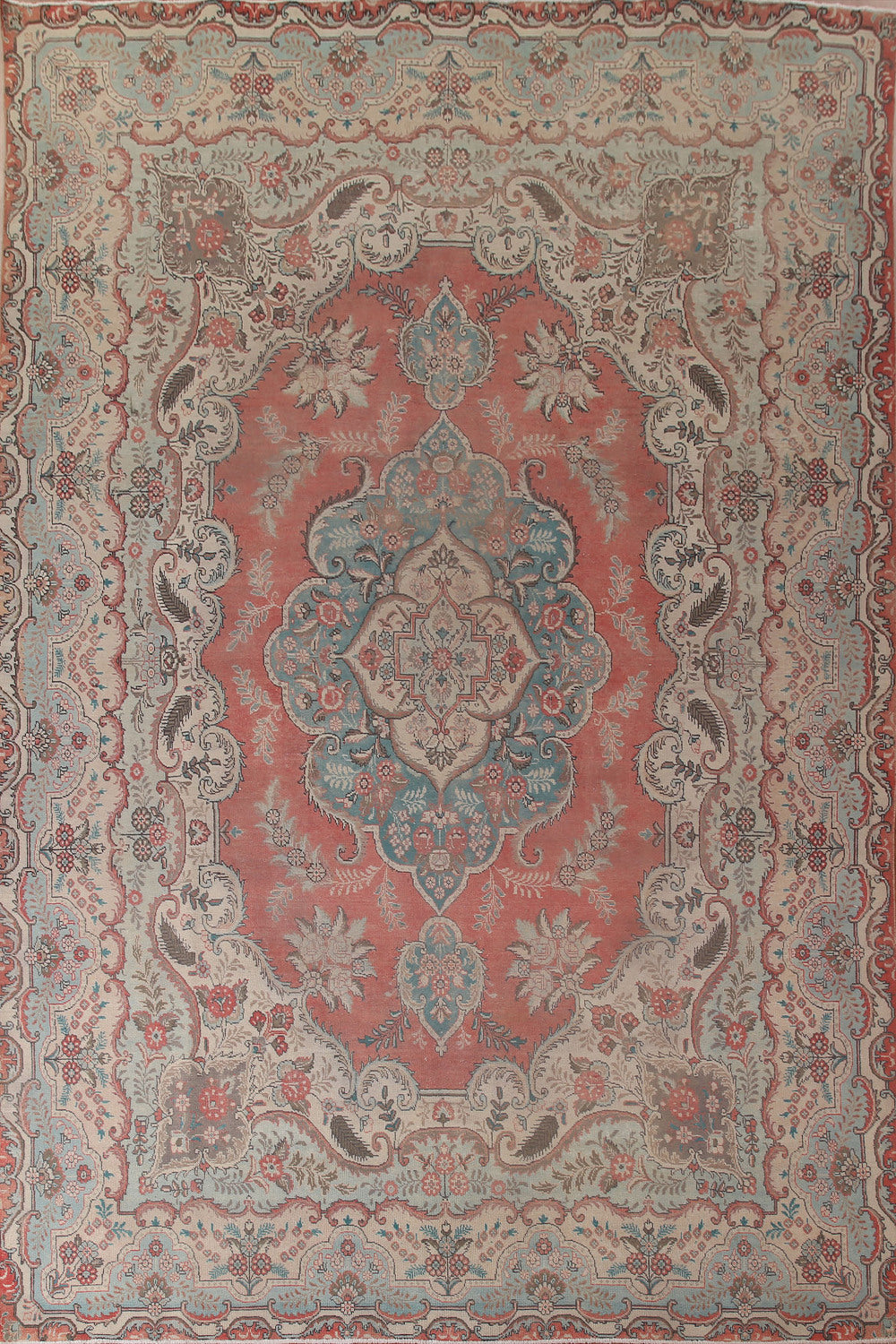 A Beautiful Genuine Persia ( Persia ) Tabriz rug is Hand Knotted by skillful weavers in Persia ( Persia ) with 100% Wool Material. This rug is in Very Good (Low Pile) condition. dimensions are 13' 2'' X 9' 9'' in foot and 401 X 297 in centimeter. the primary color is Coral.