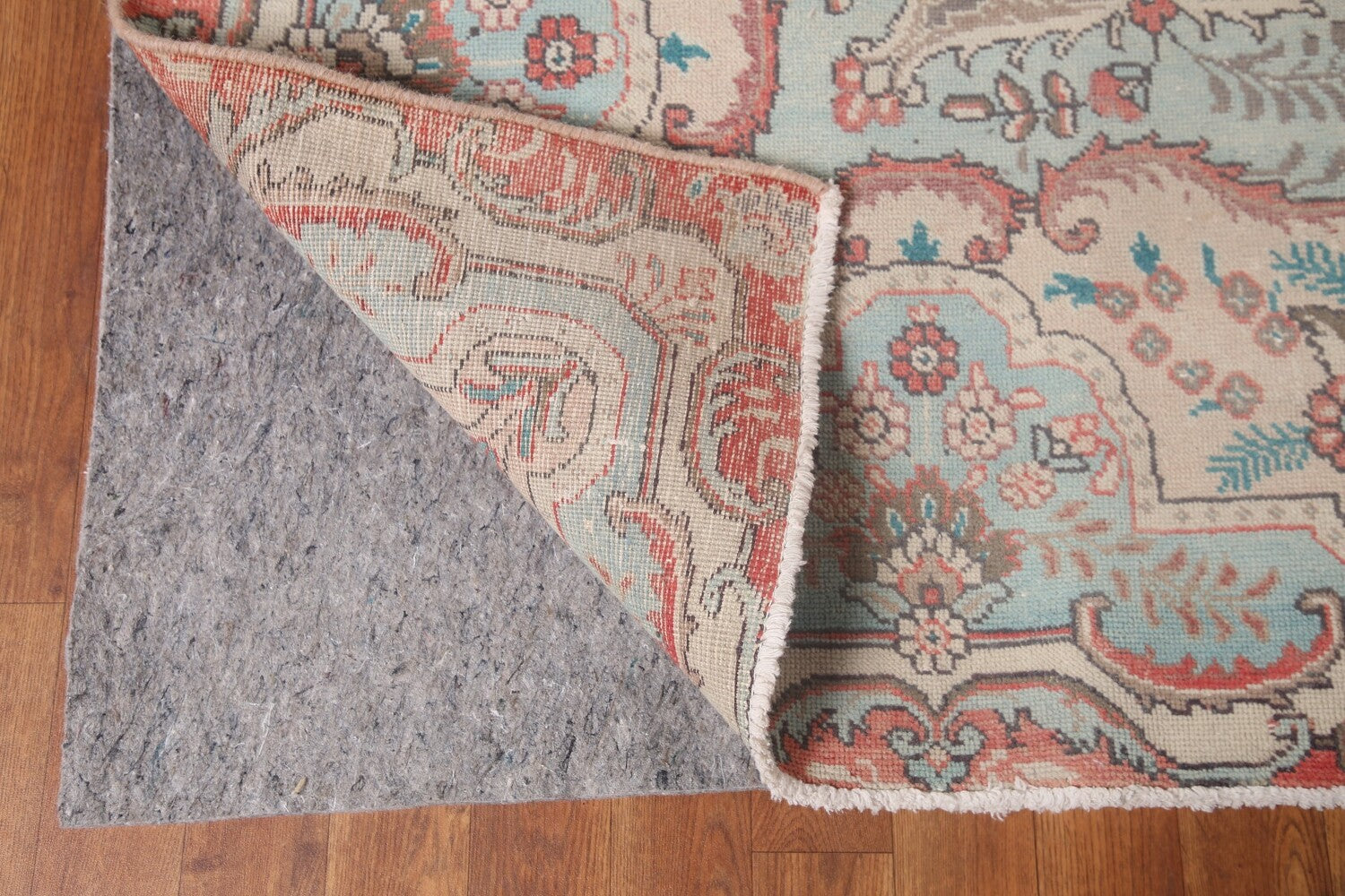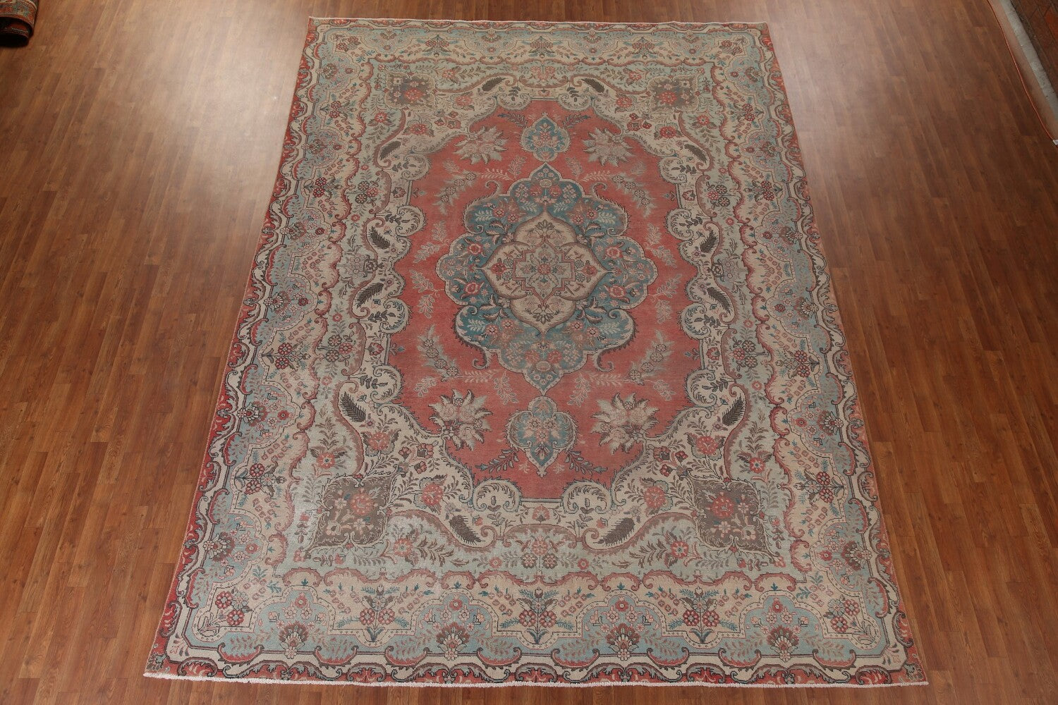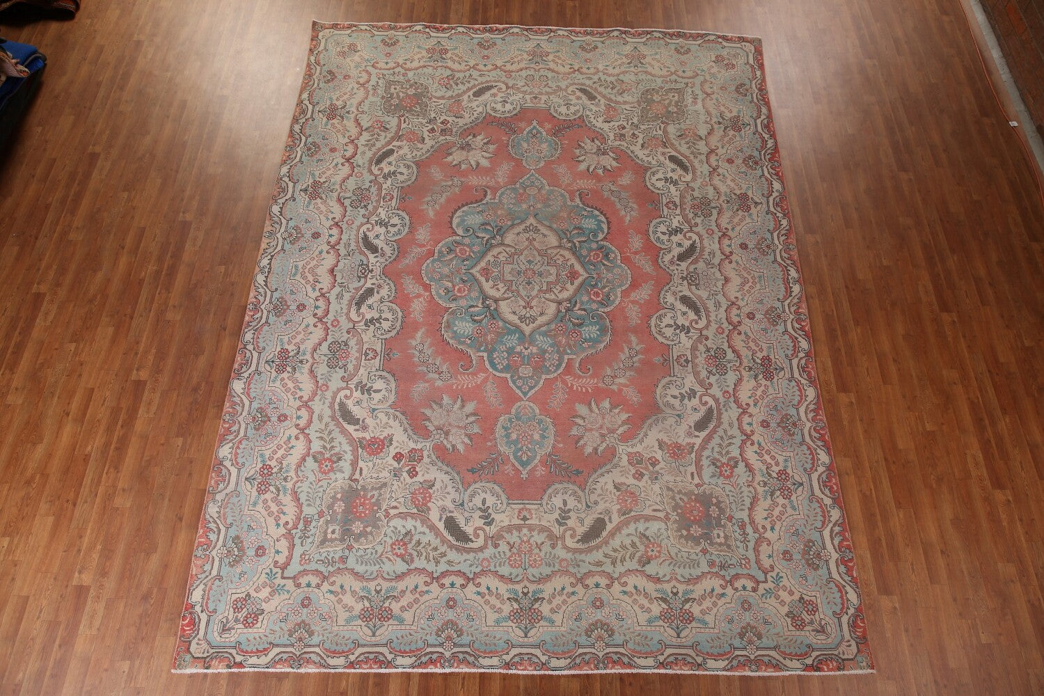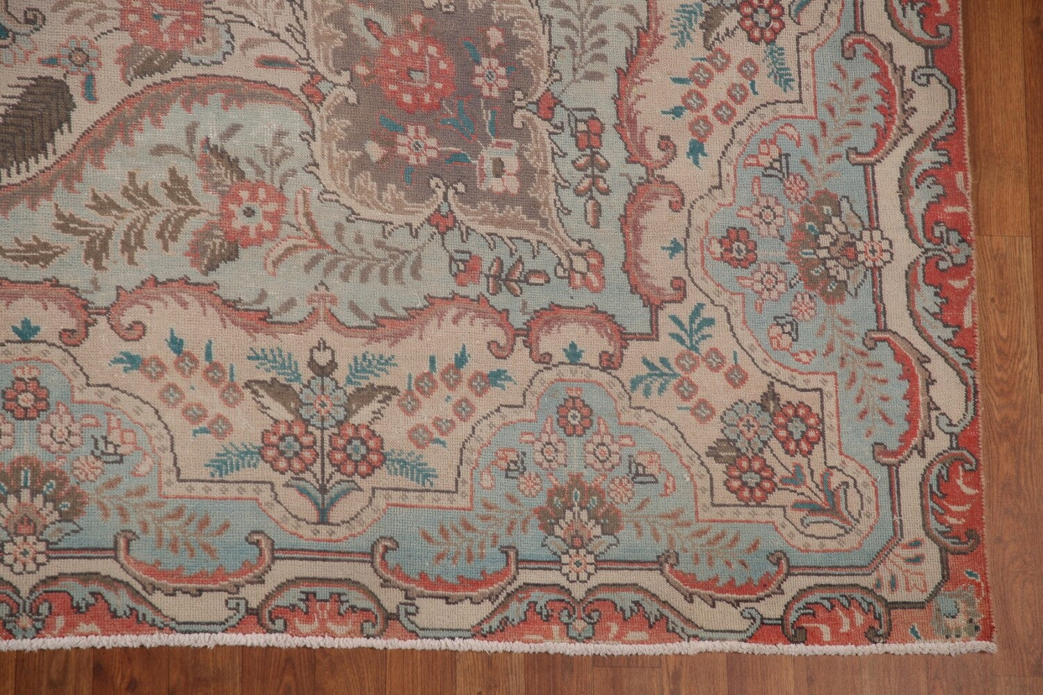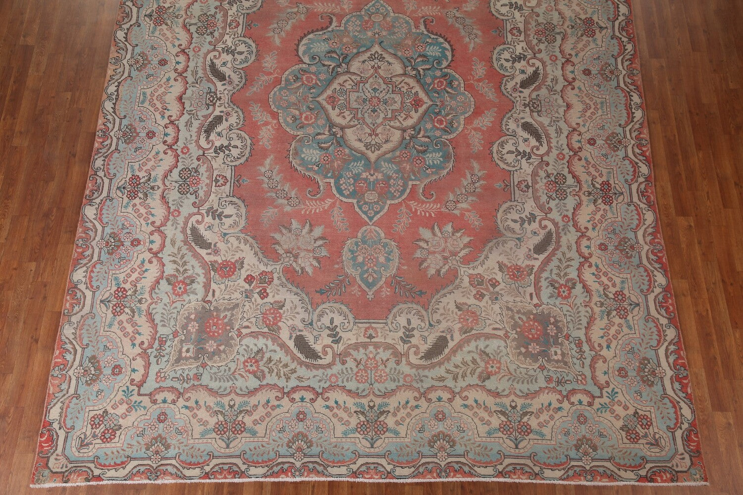 A Beautiful Genuine Persia ( Persia ) Tabriz rug is Hand Knotted by skillful weavers in Persia ( Persia ) with 100% Wool Material. This rug is in Very Good (Low Pile) condition. dimensions are 13' 2'' X 9' 9'' in foot and 401 X 297 in centimeter. the primary color is Coral.