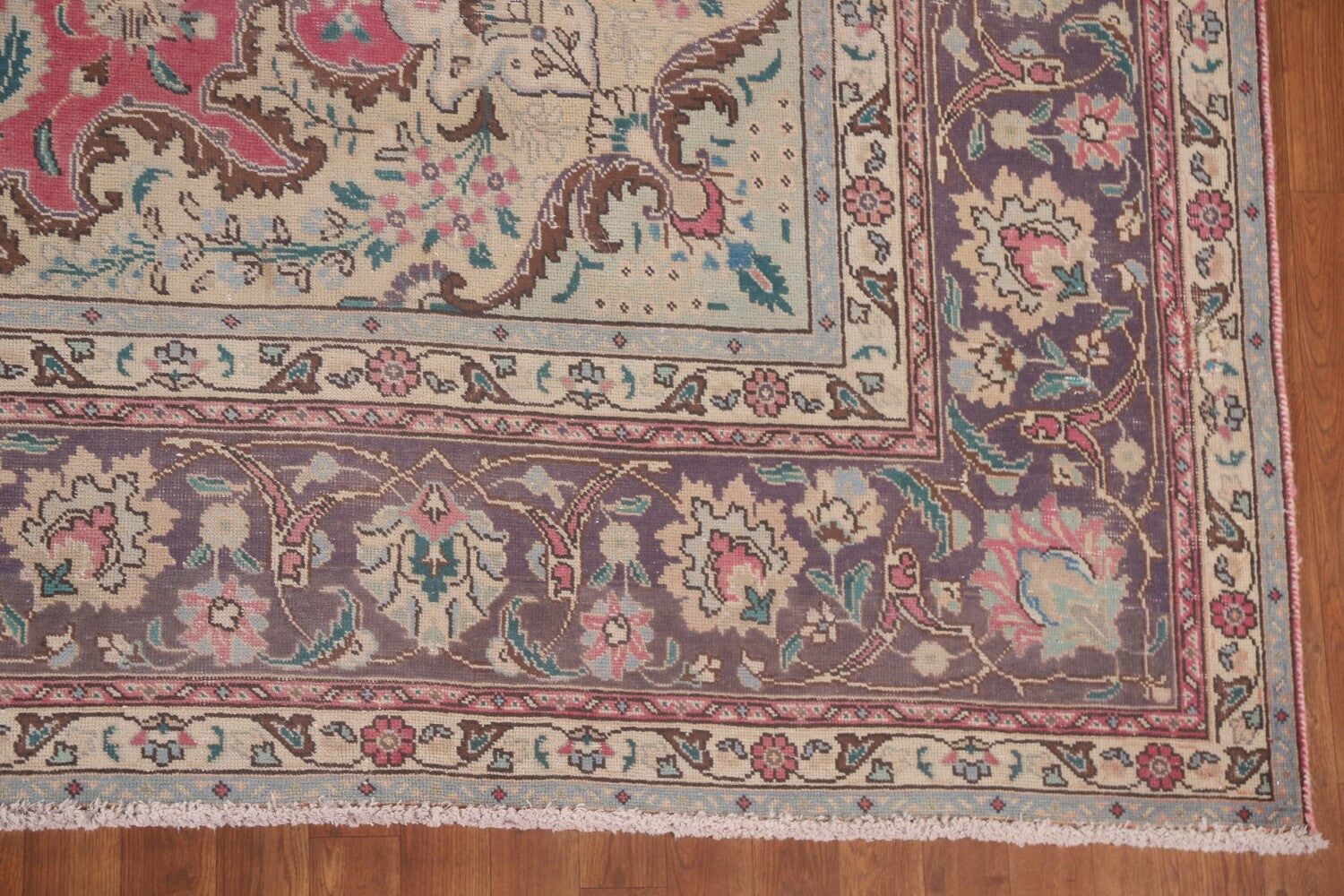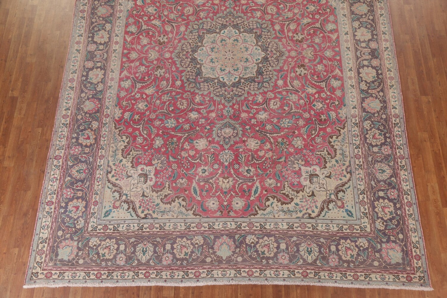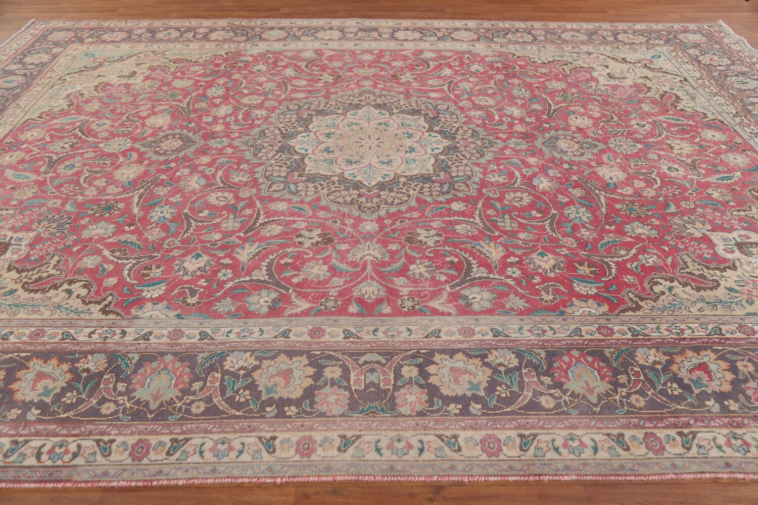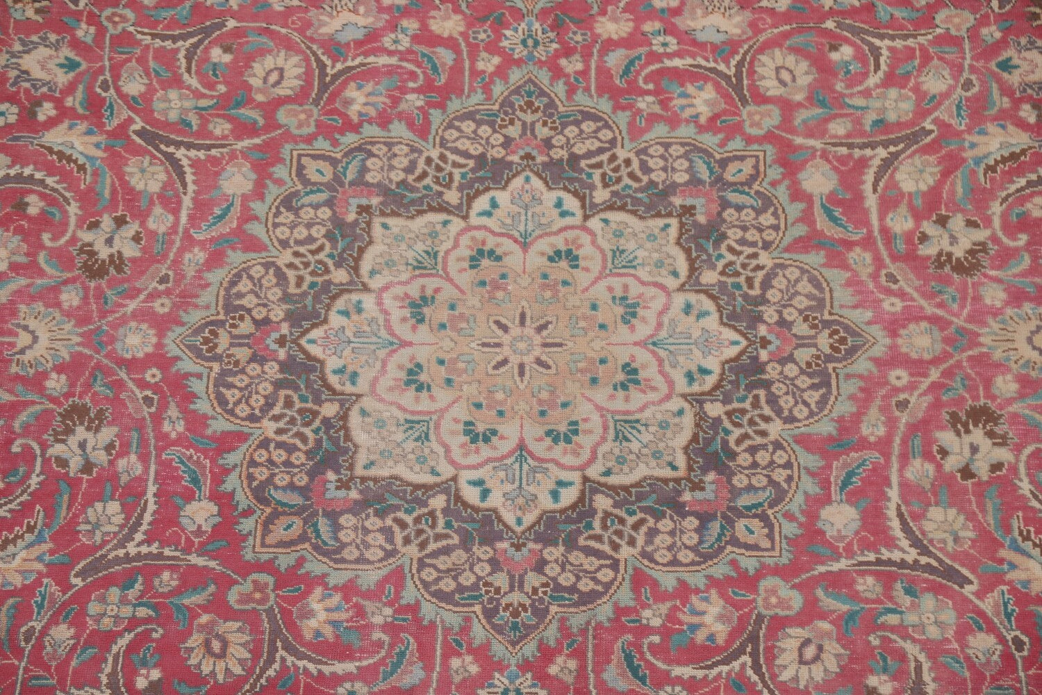 A Beautiful Genuine Persia ( Persia ) Tabriz rug is Hand Knotted by skillful weavers in Persia ( Persia ) with 100% Wool Material. This rug is in Very Good (Low Pile) condition. dimensions are 12' 11'' X 9' 9'' in foot and 394 X 297 in centimeter. the primary color is Pink.
