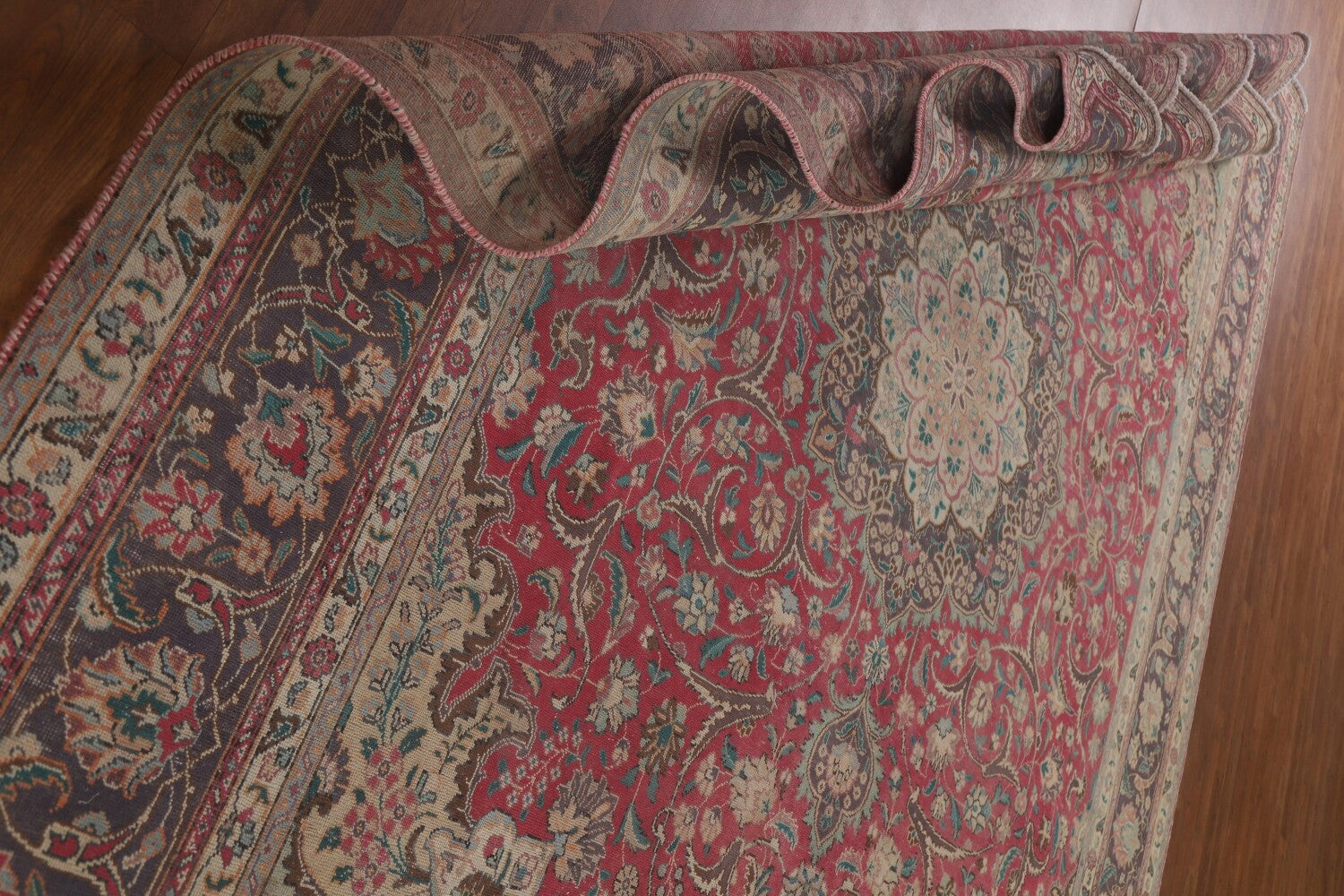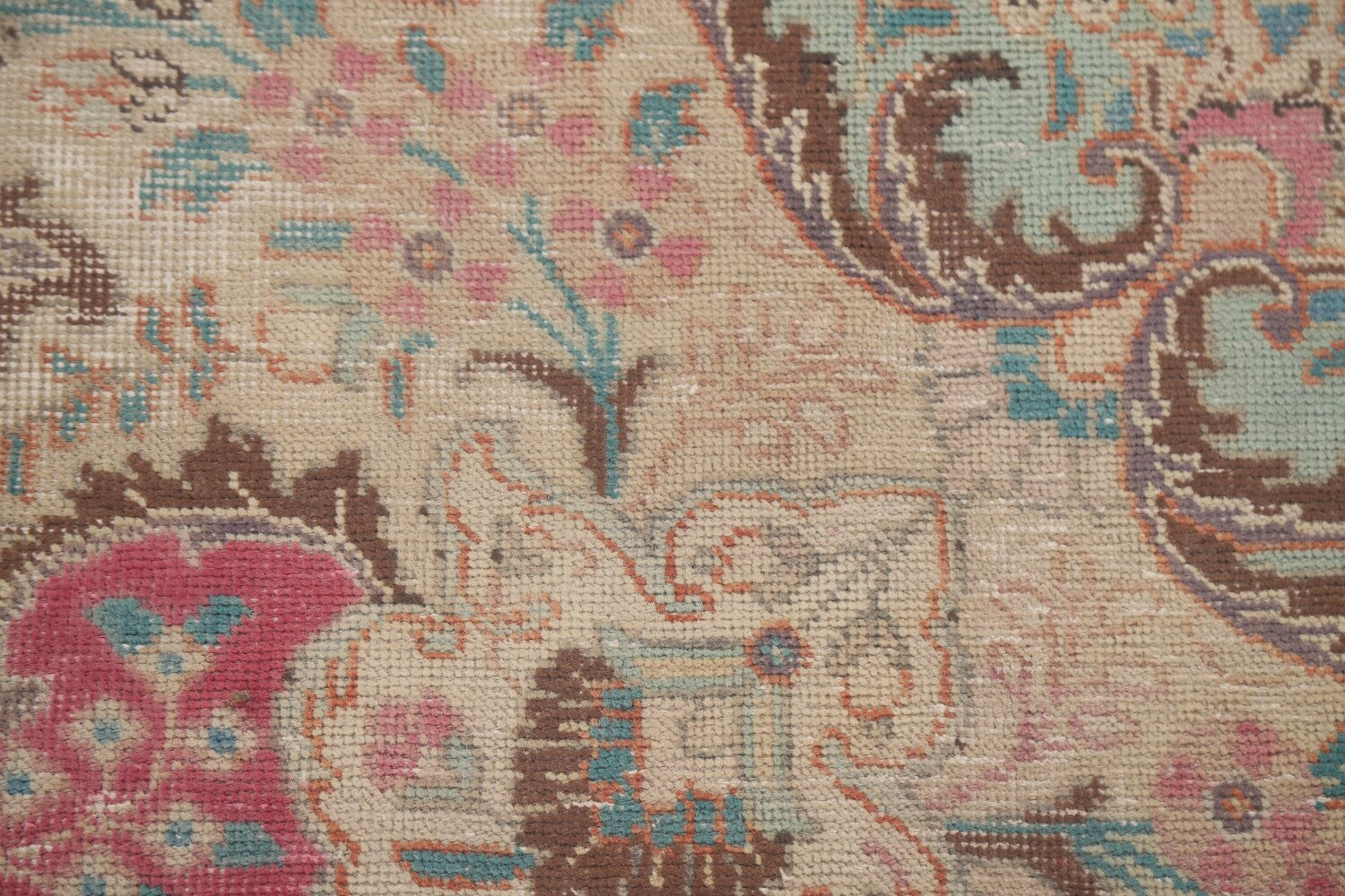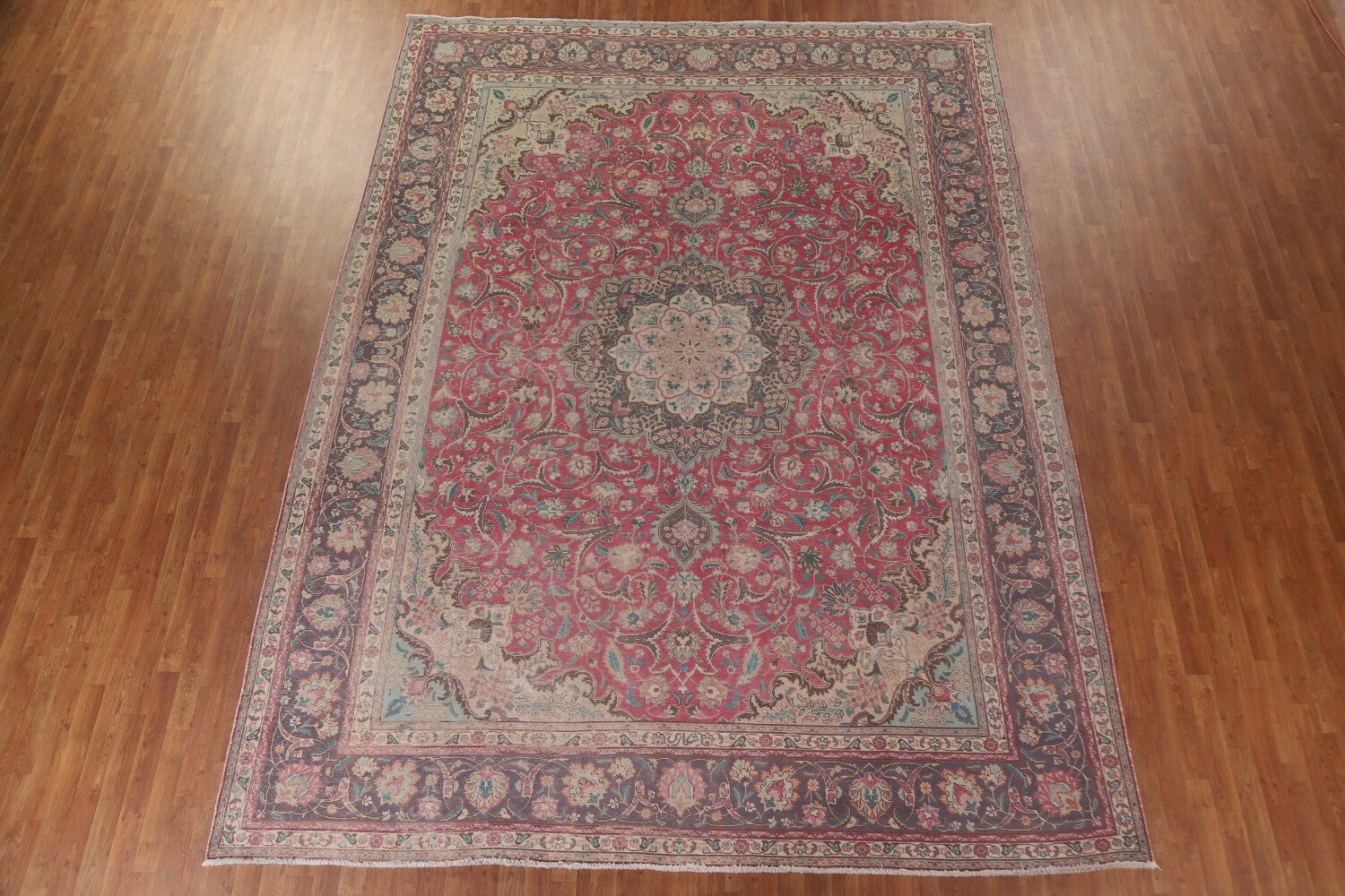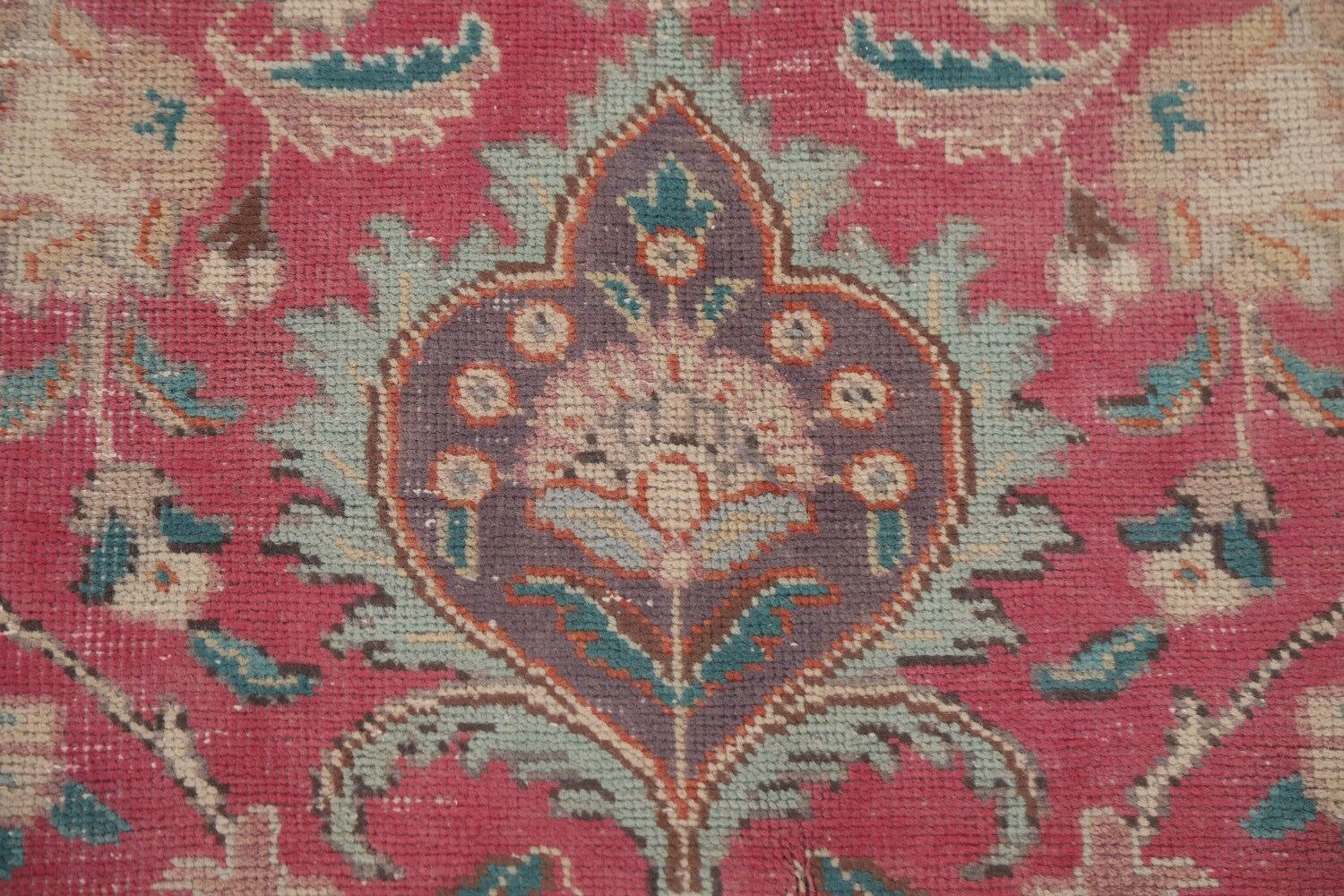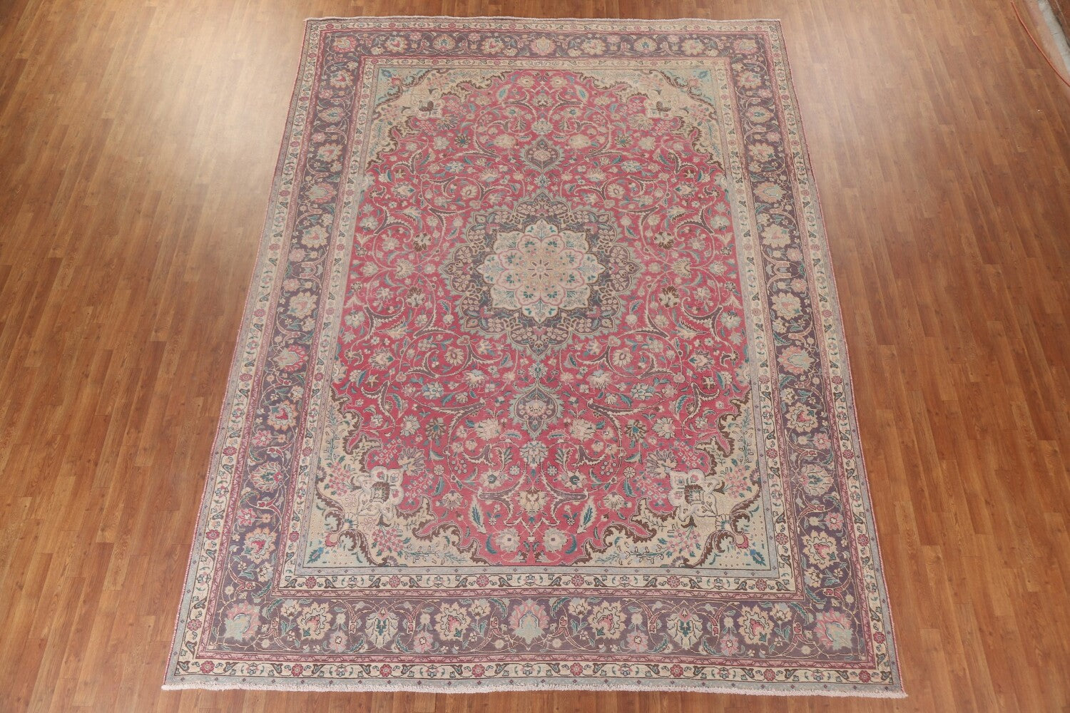 A Beautiful Genuine Persia ( Persia ) Tabriz rug is Hand Knotted by skillful weavers in Persia ( Persia ) with 100% Wool Material. This rug is in Very Good (Low Pile) condition. dimensions are 12' 11'' X 9' 9'' in foot and 394 X 297 in centimeter. the primary color is Pink.