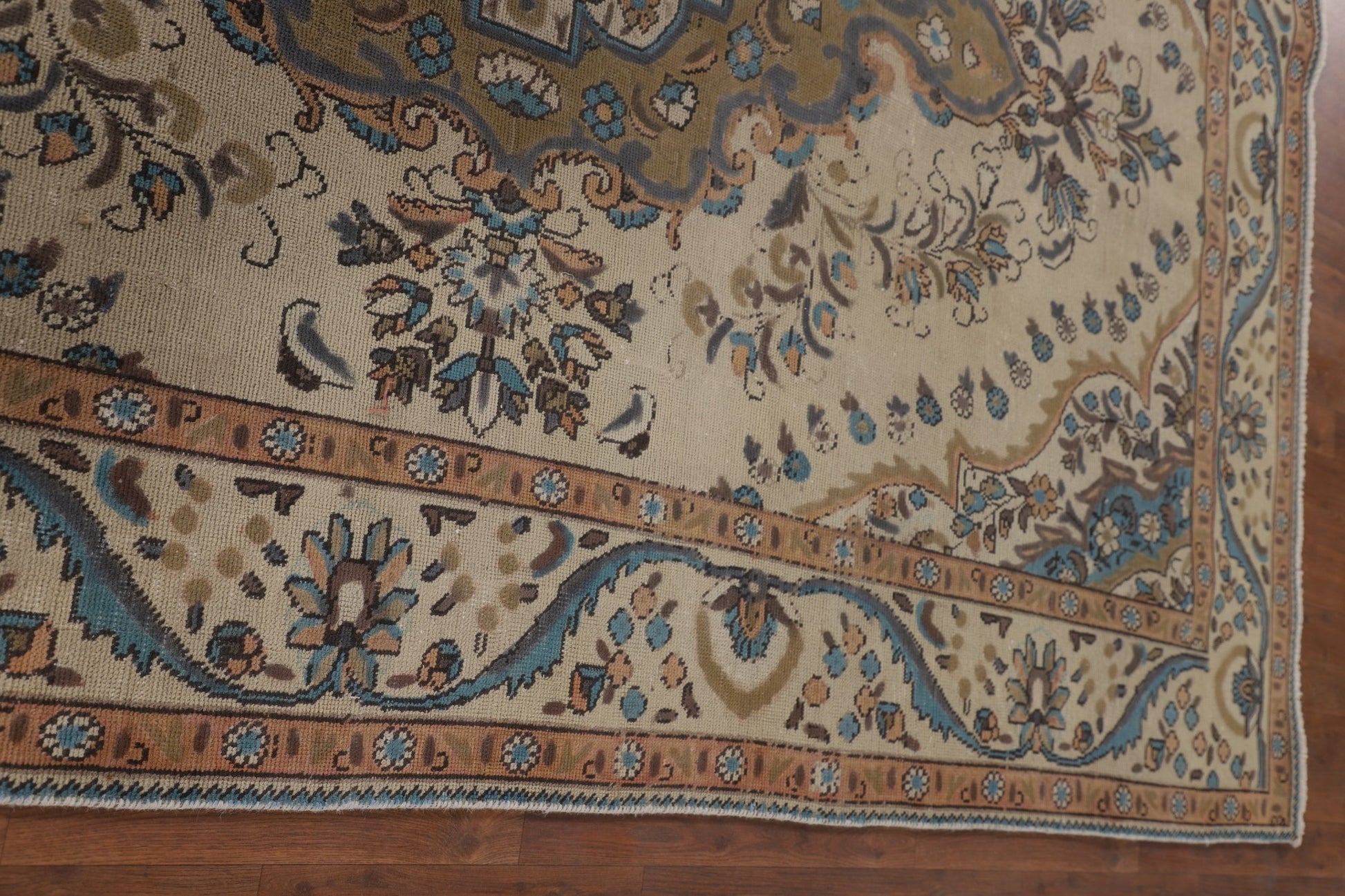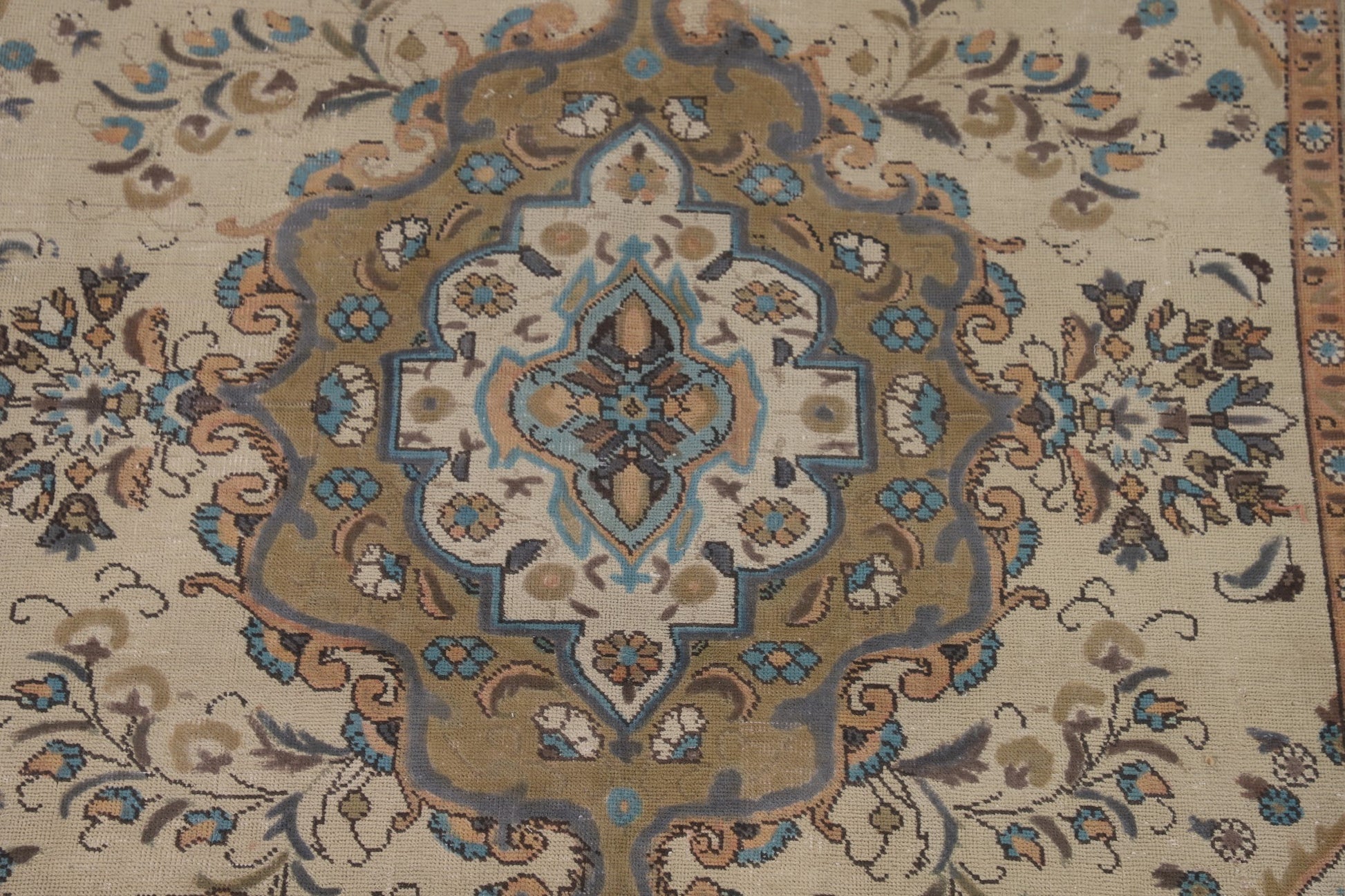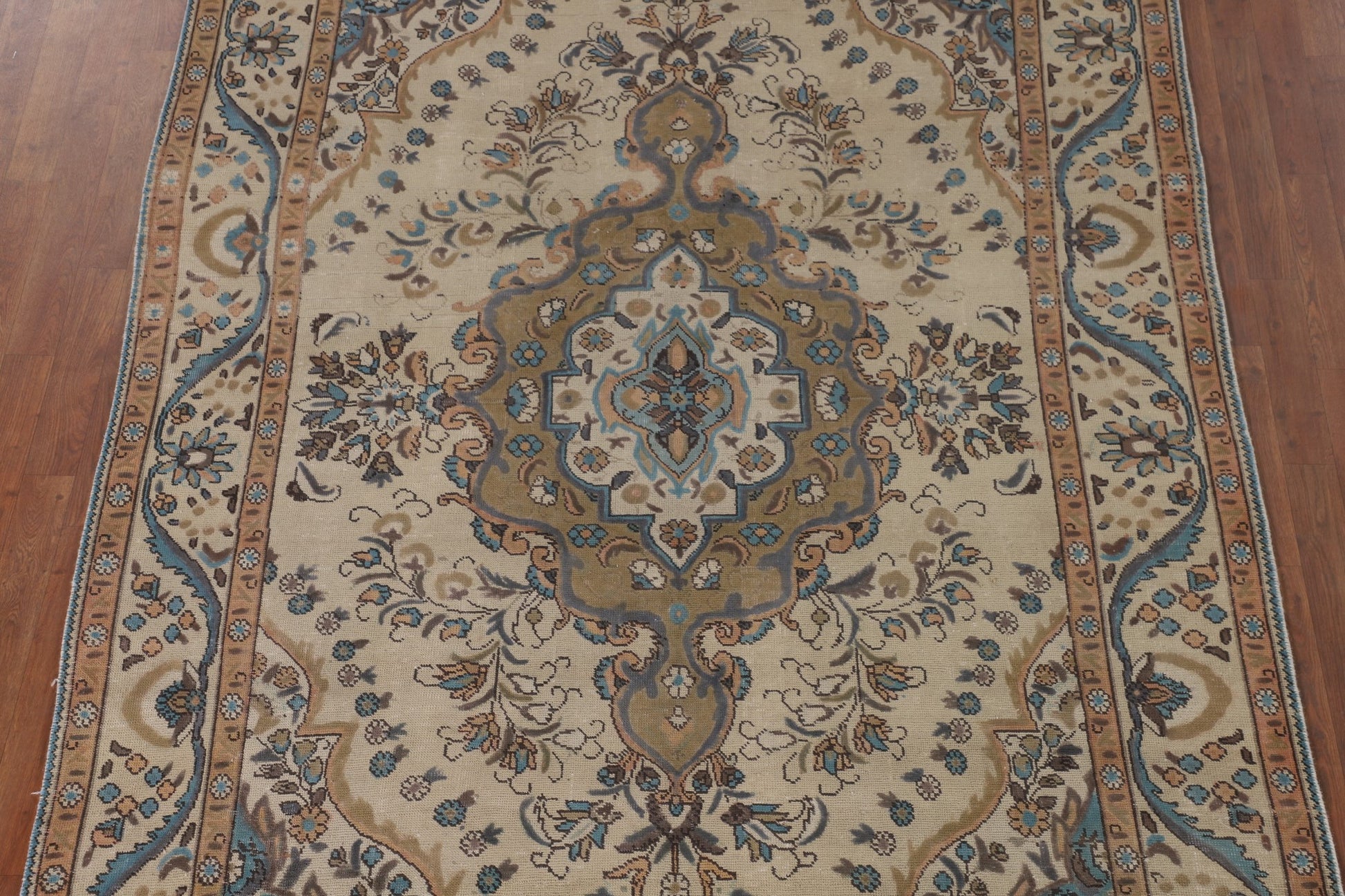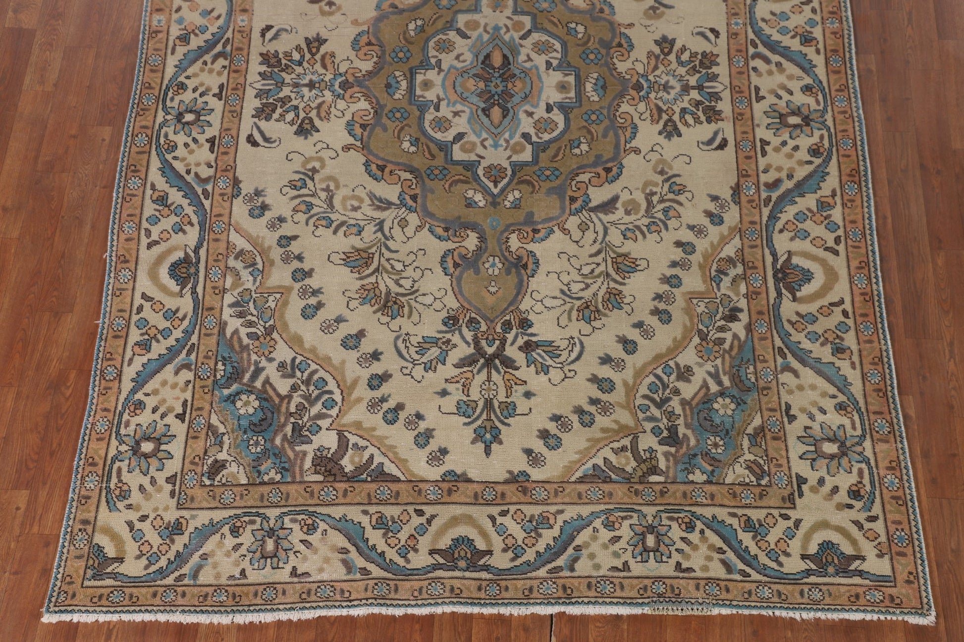 A Beautiful Genuine Persia ( Persia ) Tabriz rug is Hand Knotted by skillful weavers in Persia ( Persia ) with 100% Wool Material. This rug is in Very Good (Evenly Low Pile) condition. dimensions are 9' 7'' X 6' 5'' in foot and 292 X 196 in centimeter. the primary color is Beige & Ivories.