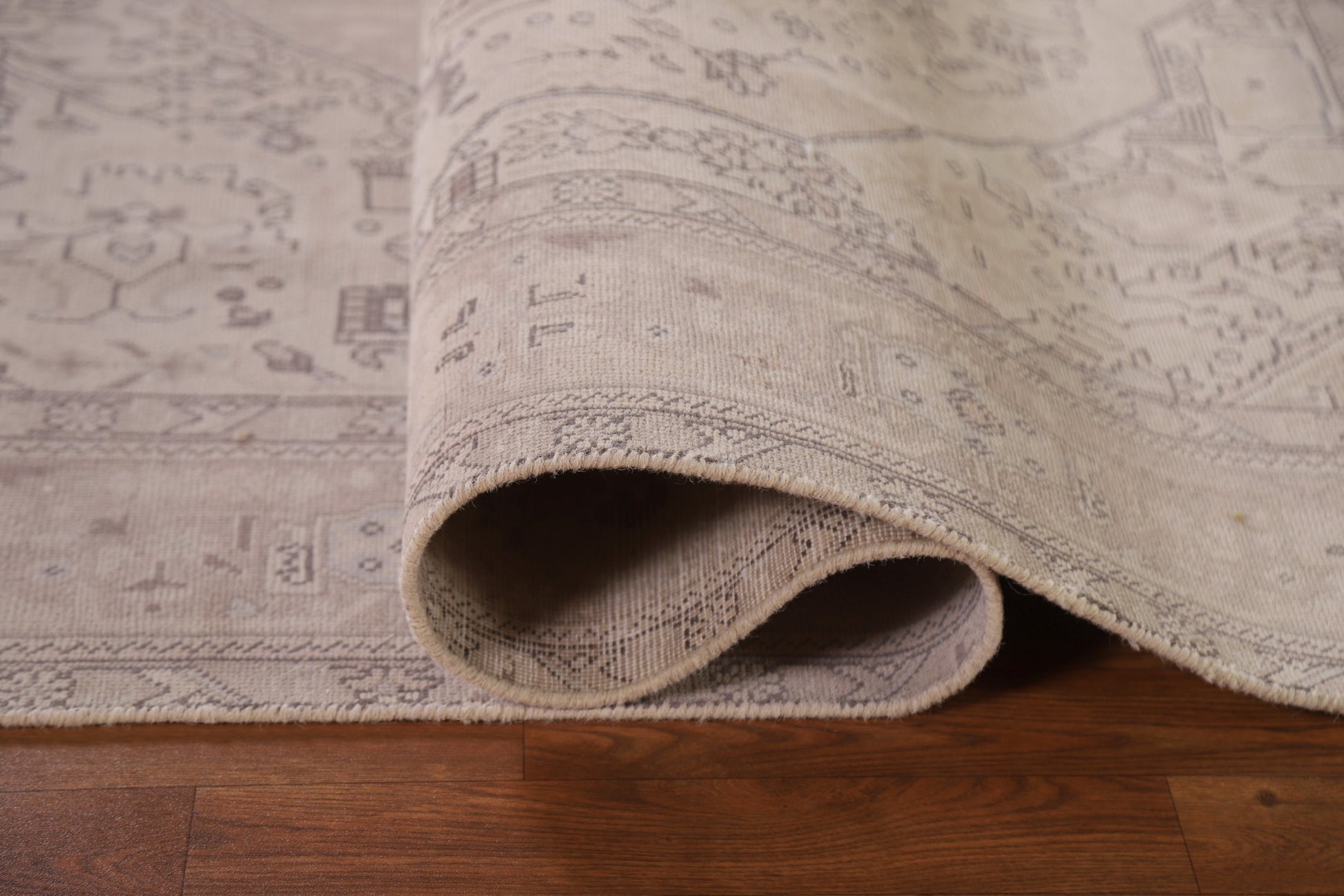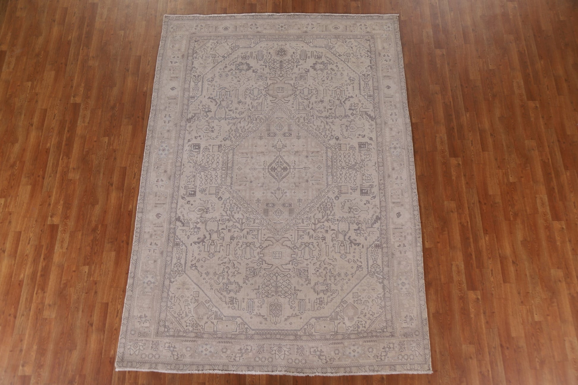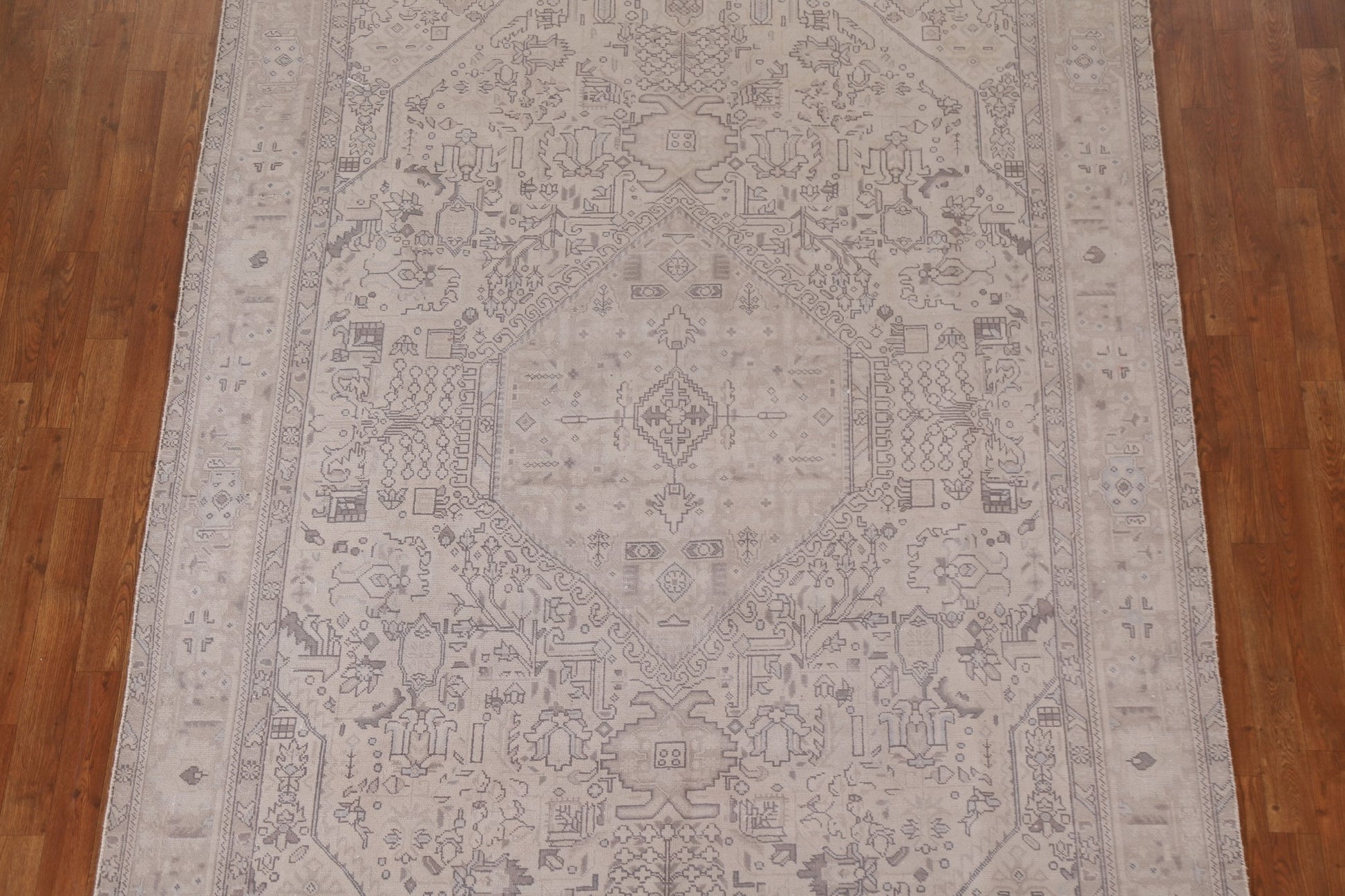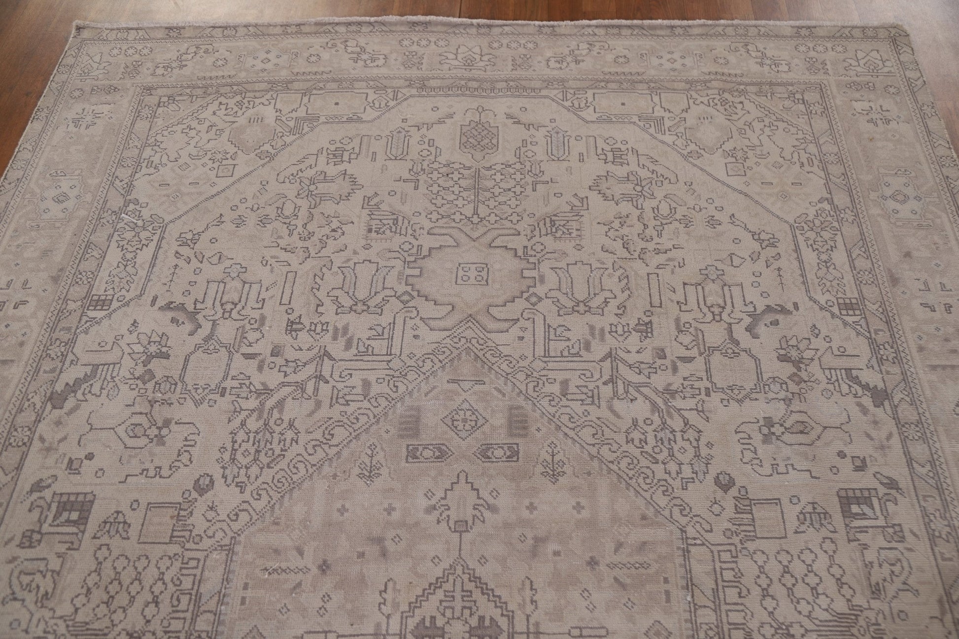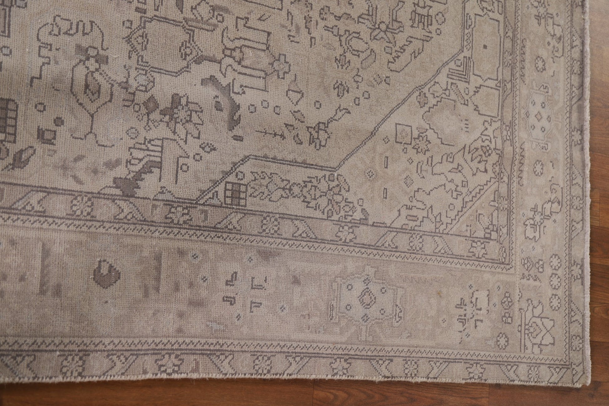 A Beautiful Genuine Persia ( Persia ) Tabriz rug is Hand Knotted by skillful weavers in Persia ( Persia ) with 100% Wool Material. This rug is in Very Good (Evenly Low Pile) condition. dimensions are 9' 5'' X 6' 5'' in foot and 287 X 196 in centimeter. the primary color is Beige & Ivories.