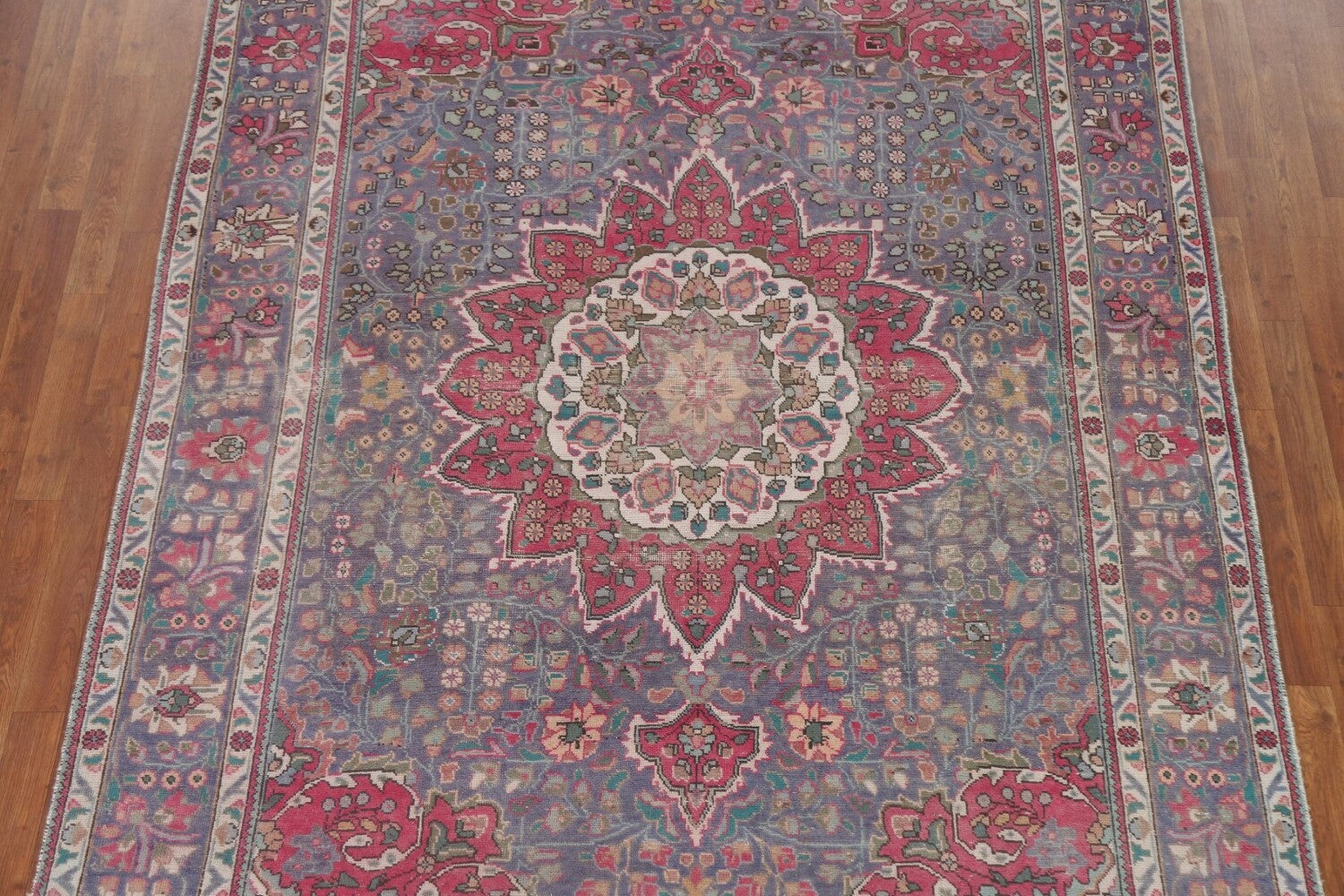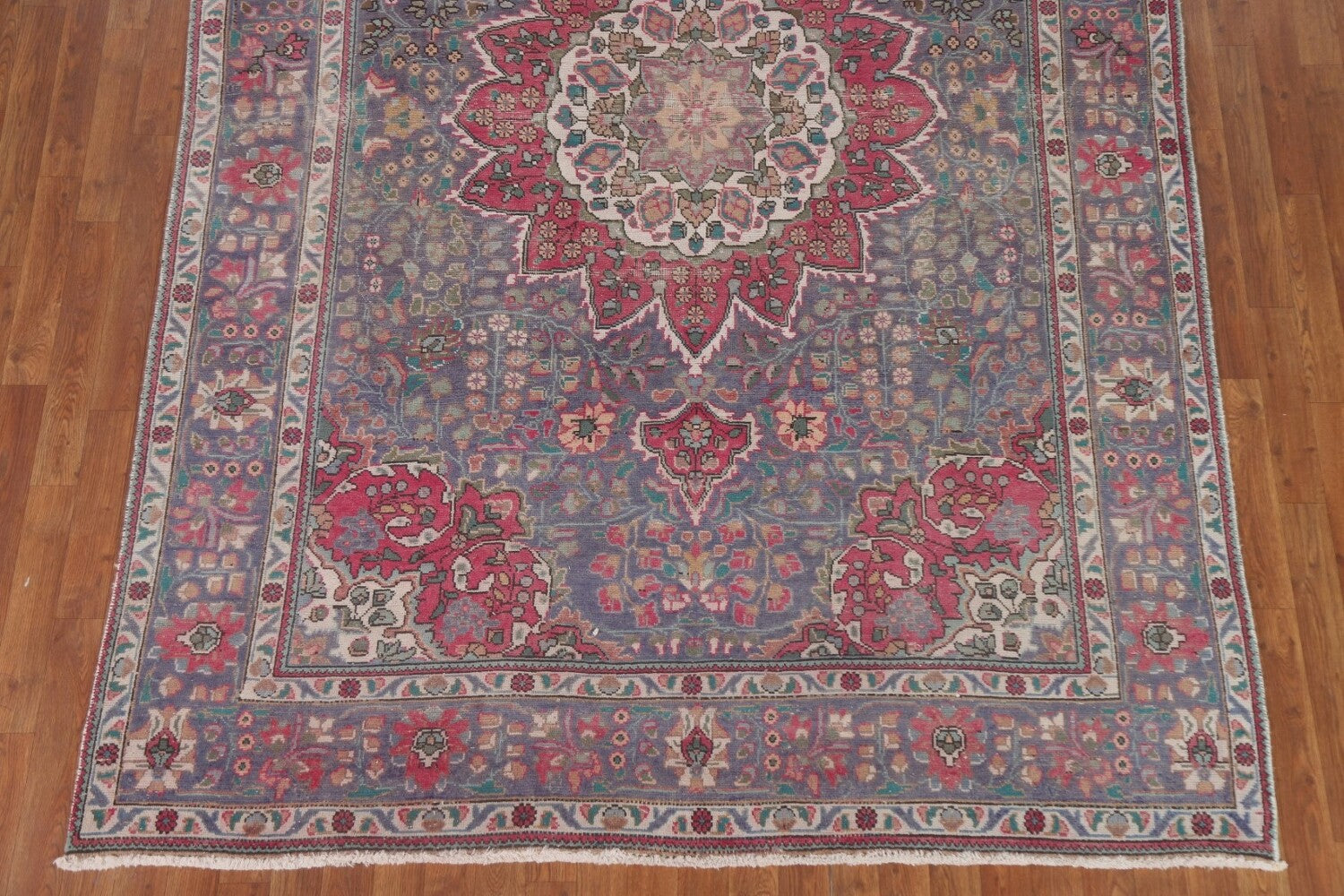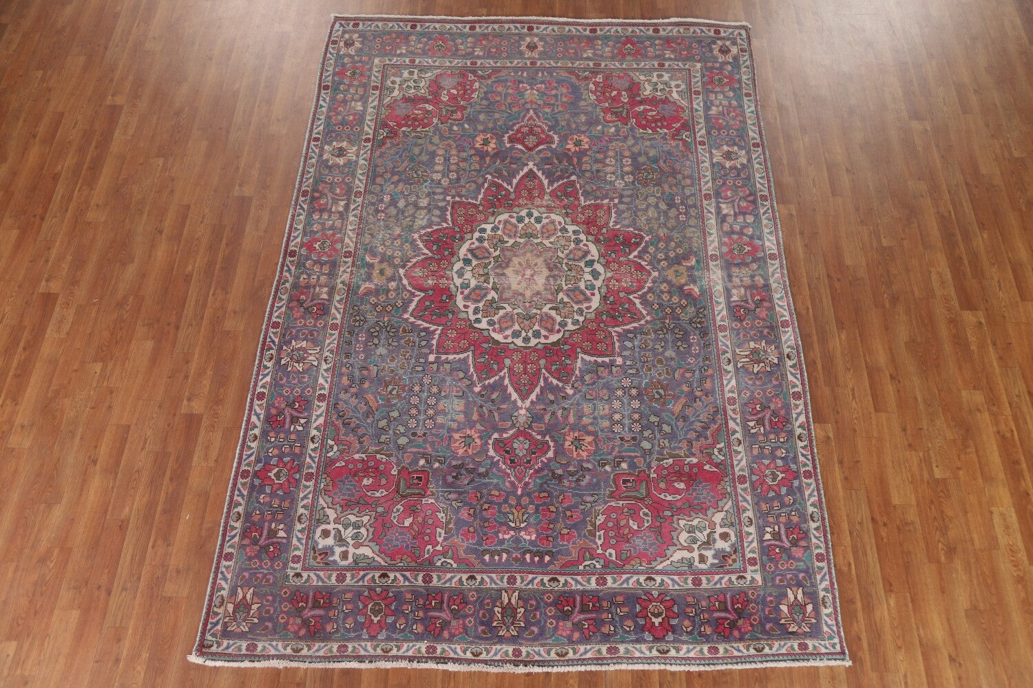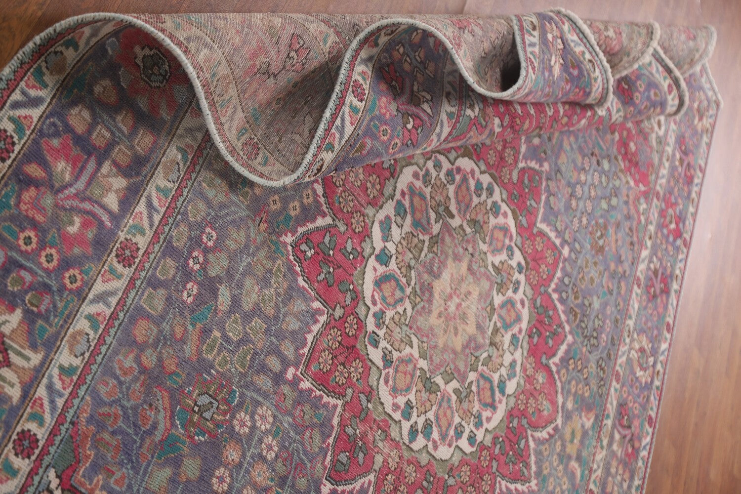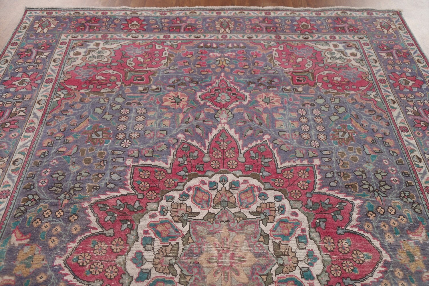 A Beautiful Genuine Persia ( Persia ) Tabriz rug is Hand Knotted by skillful weavers in Persia ( Persia ) with 100% Wool Material. This rug is in Very Good (Evenly Low Pile) condition. dimensions are 9' 8'' X 6' 7'' in foot and 295 X 201 in centimeter. the primary color is Navy Blue & Blues.