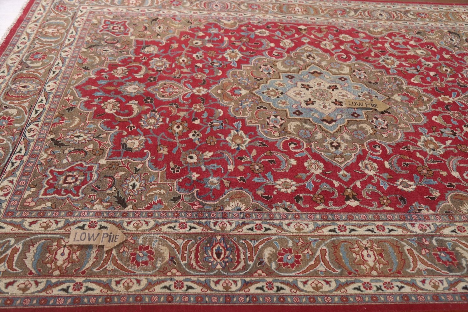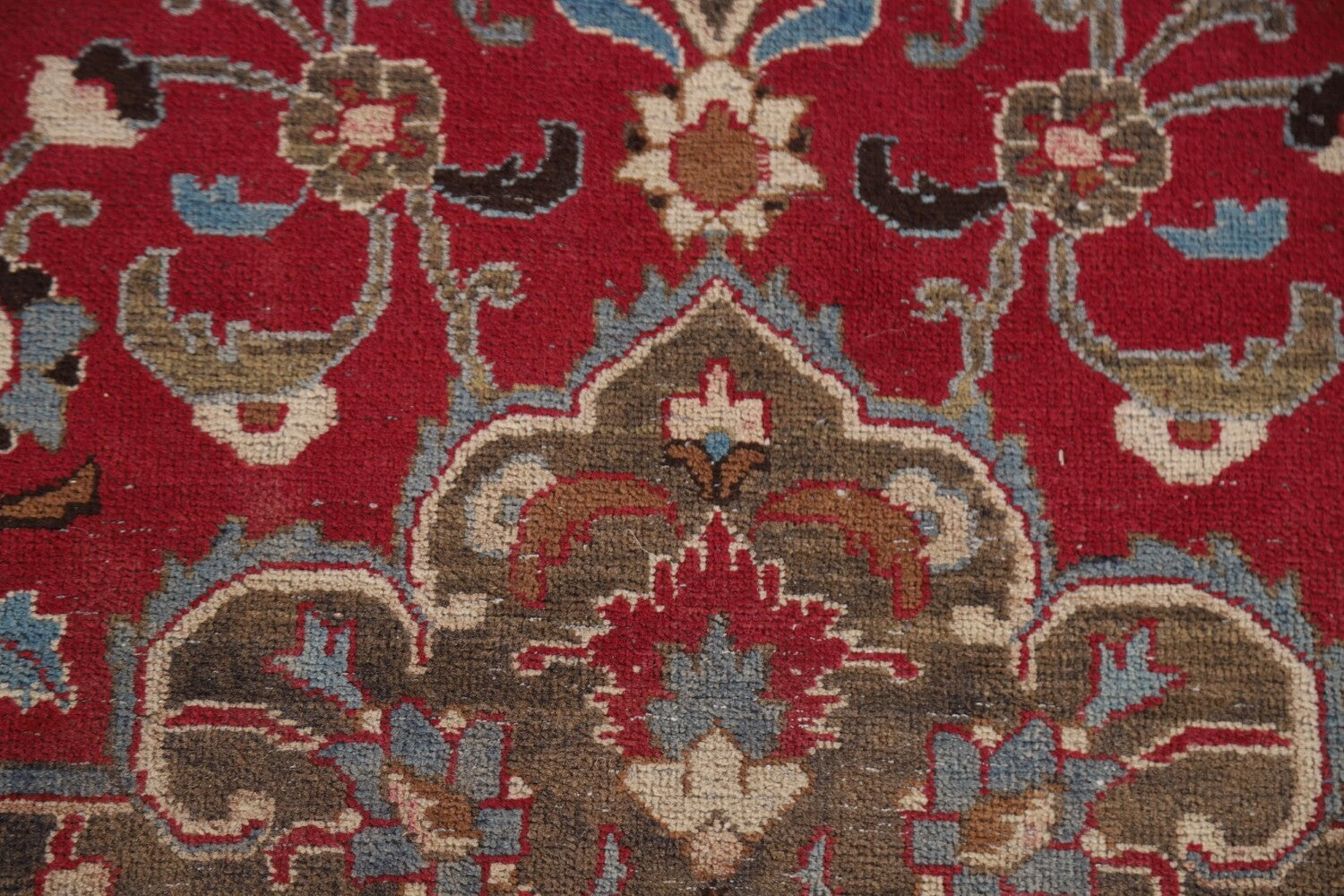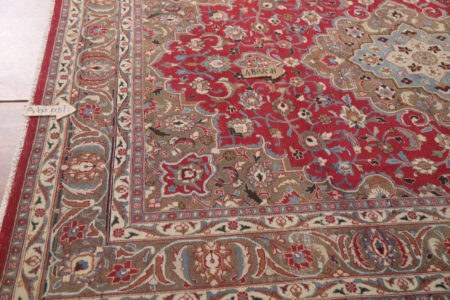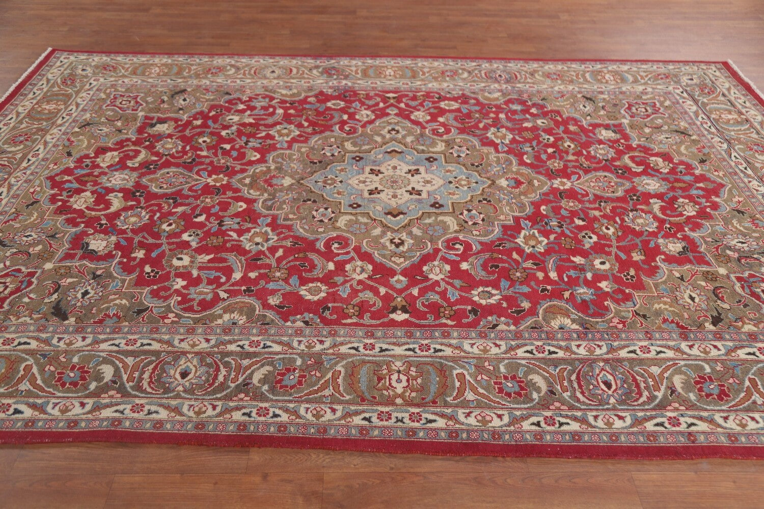 A Beautiful Genuine Persia ( Persia ) Tabriz rug is Hand Knotted by skillful weavers in Persia ( Persia ) with 100% Wool Material. This rug is in Very Good (Low Pile-Abrash) condition. dimensions are 9' 6'' X 6' 9'' in foot and 290 X 206 in centimeter. the primary color is Red.