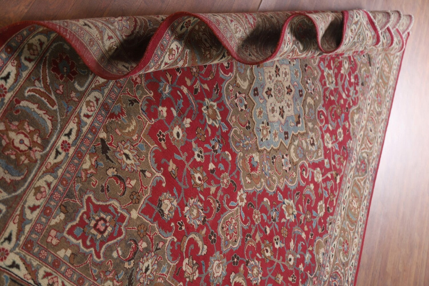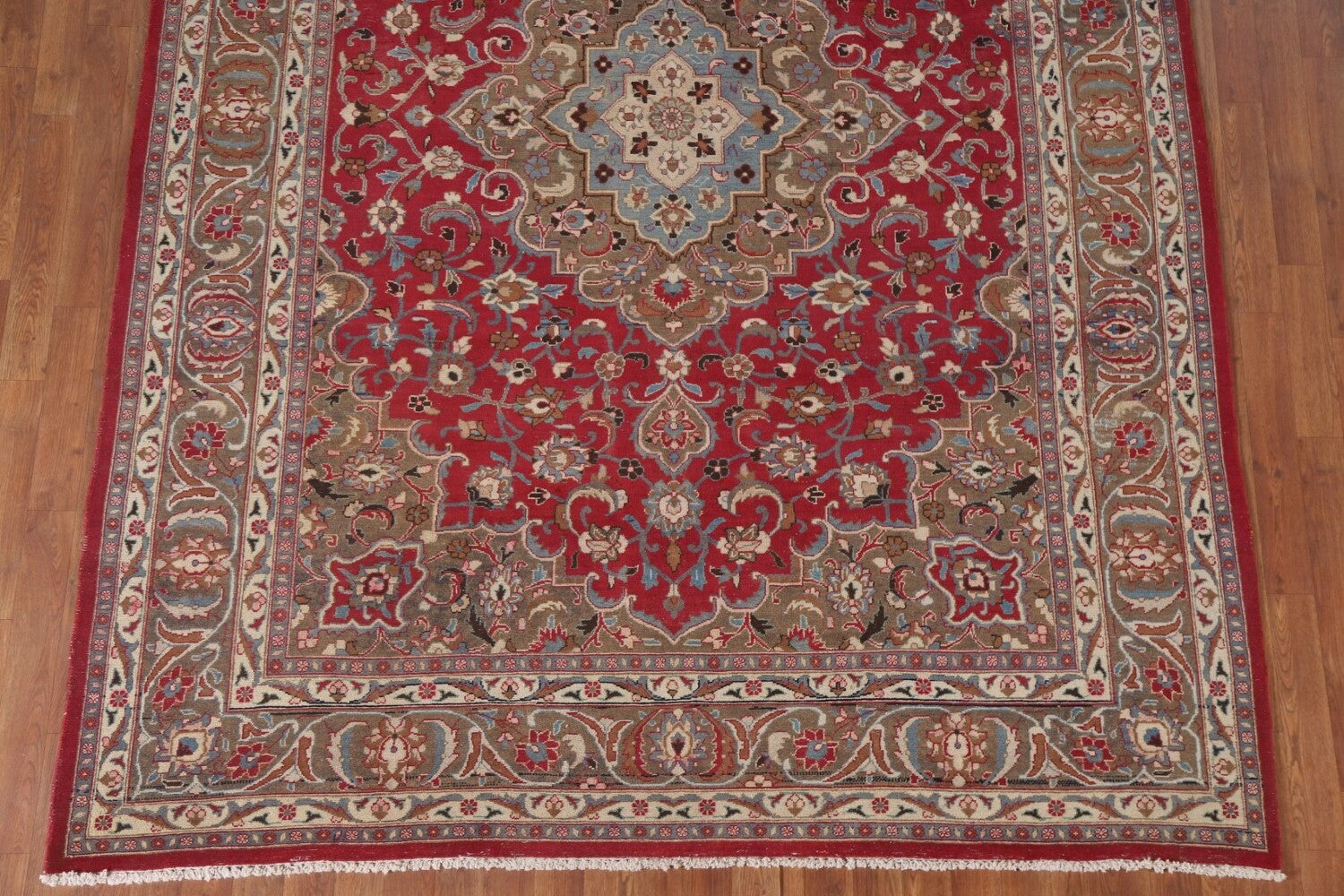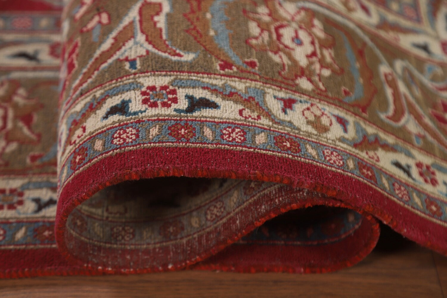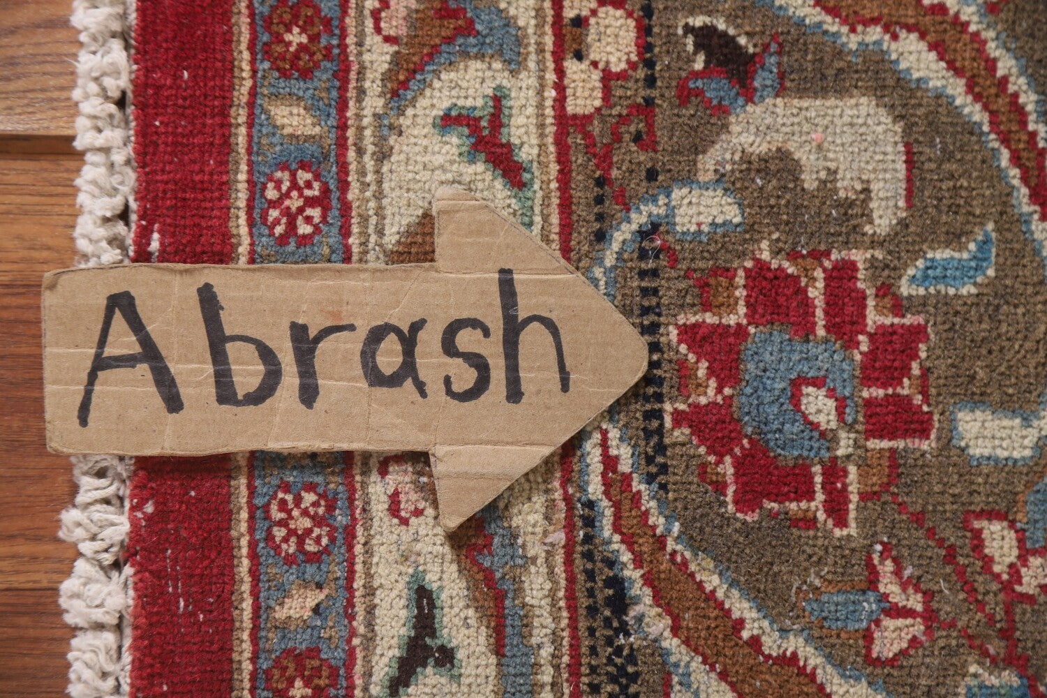 A Beautiful Genuine Persia ( Persia ) Tabriz rug is Hand Knotted by skillful weavers in Persia ( Persia ) with 100% Wool Material. This rug is in Very Good (Low Pile-Abrash) condition. dimensions are 9' 6'' X 6' 9'' in foot and 290 X 206 in centimeter. the primary color is Red.