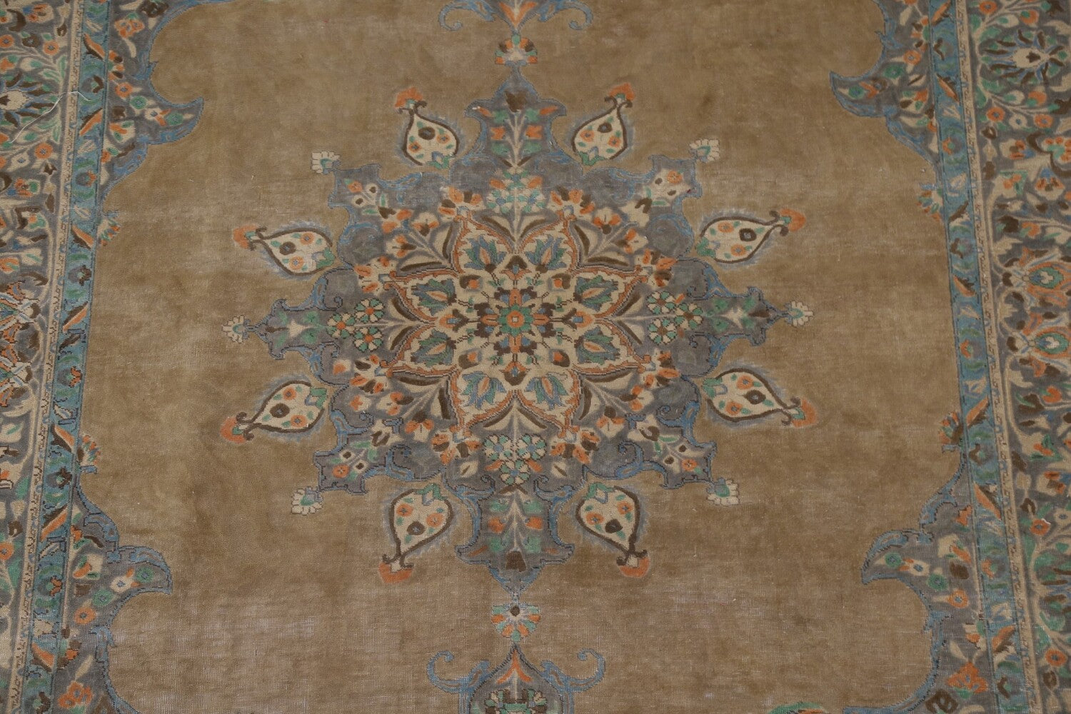 A Beautiful Genuine Persia ( Persia ) Tabriz rug is Hand Knotted by skillful weavers in Persia ( Persia ) with 100% Wool Material. This rug is in Very Good (Low Pile-Abrash) condition. dimensions are 10' 1'' X 7' 2'' in foot and 307 X 218 in centimeter. the primary color is Brown.