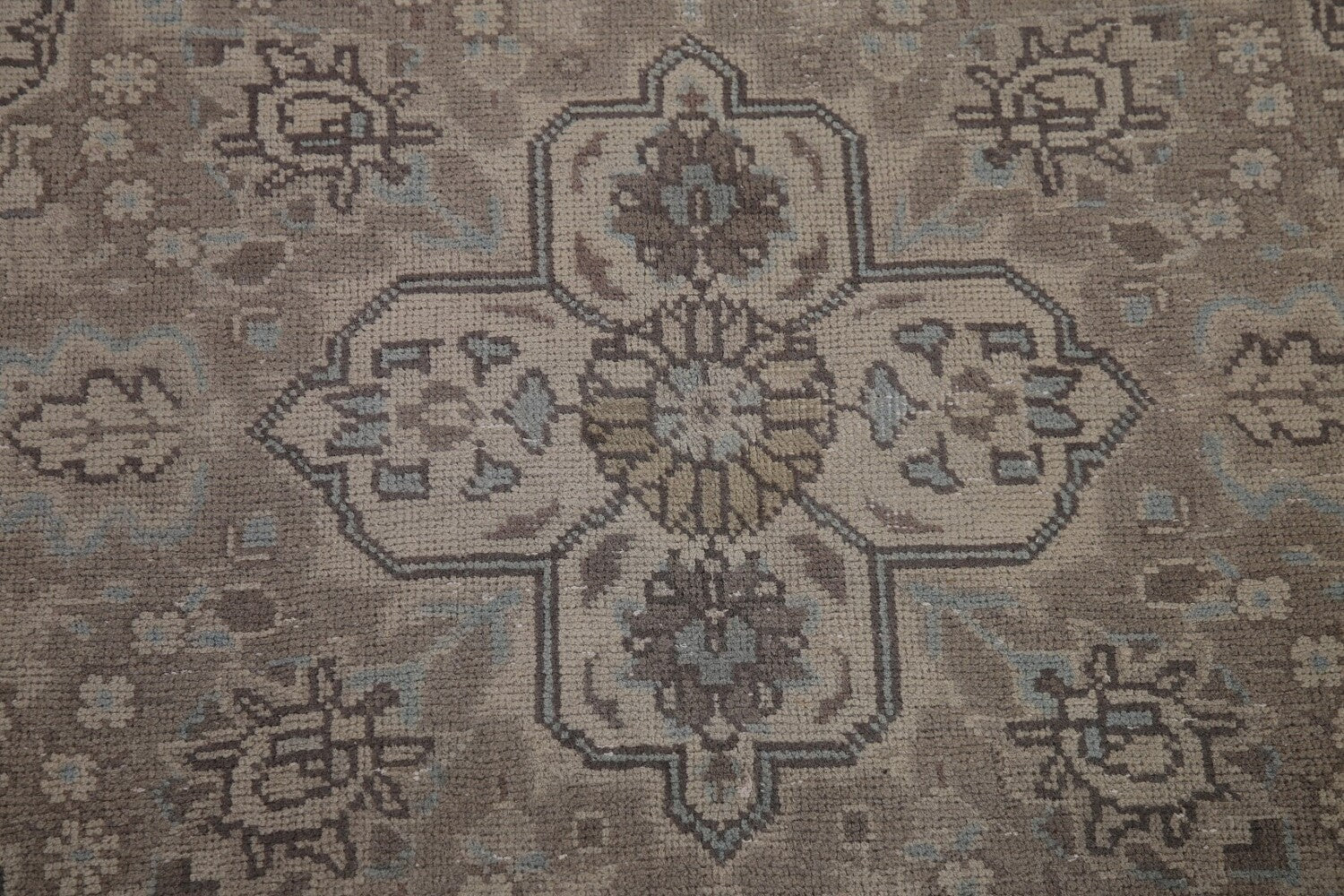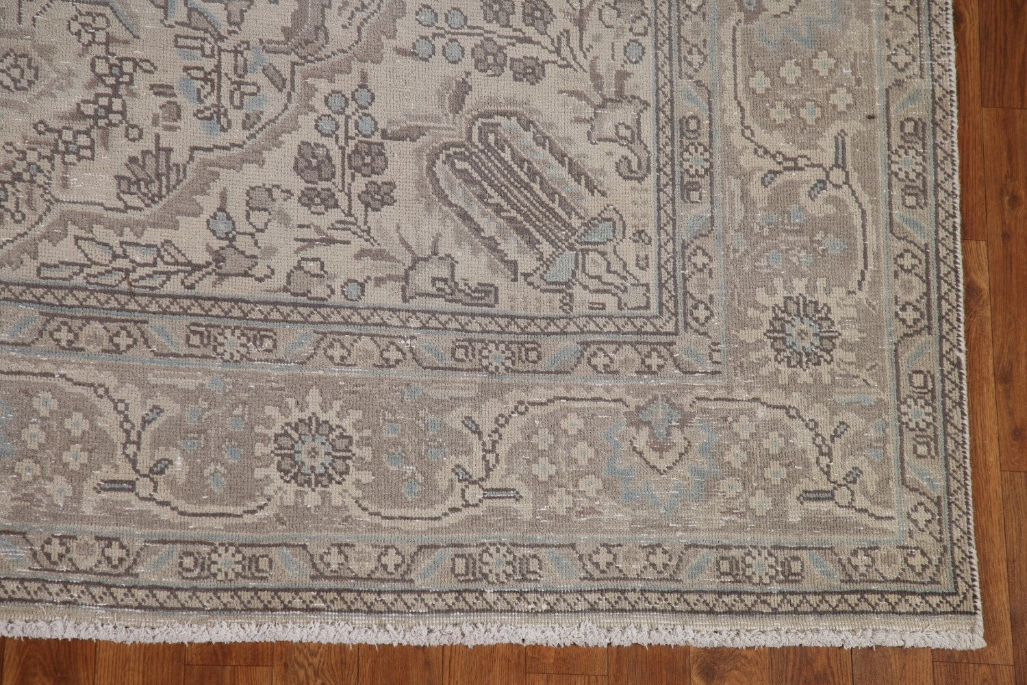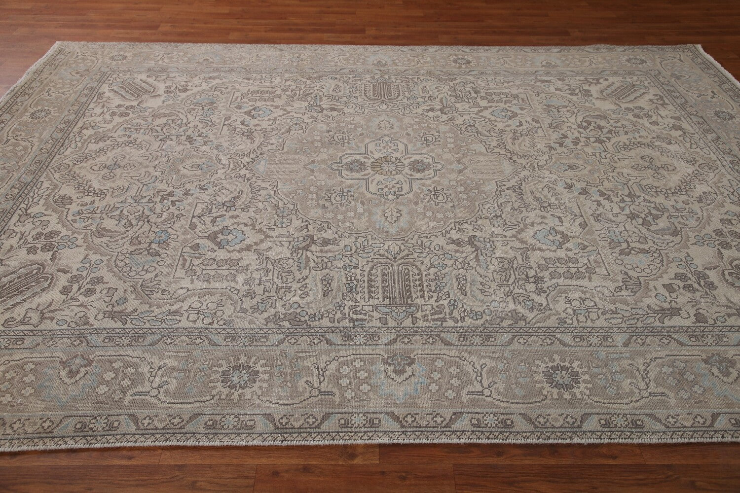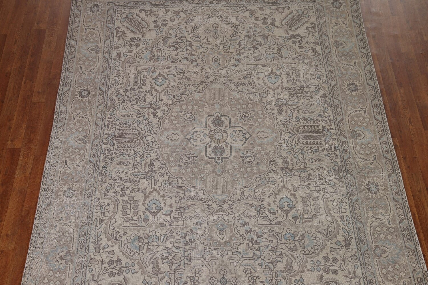 A Beautiful Genuine Persia ( Persia ) Tabriz rug is Hand Knotted by skillful weavers in Persia ( Persia ) with 100% Wool Material. This rug is in Very Good (Low Pile) condition. dimensions are 9' 9'' X 6' 9'' in foot and 297 X 206 in centimeter. the primary color is Beige & Ivories.