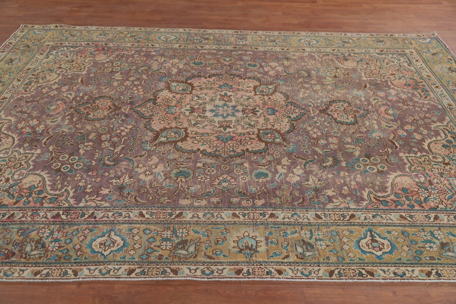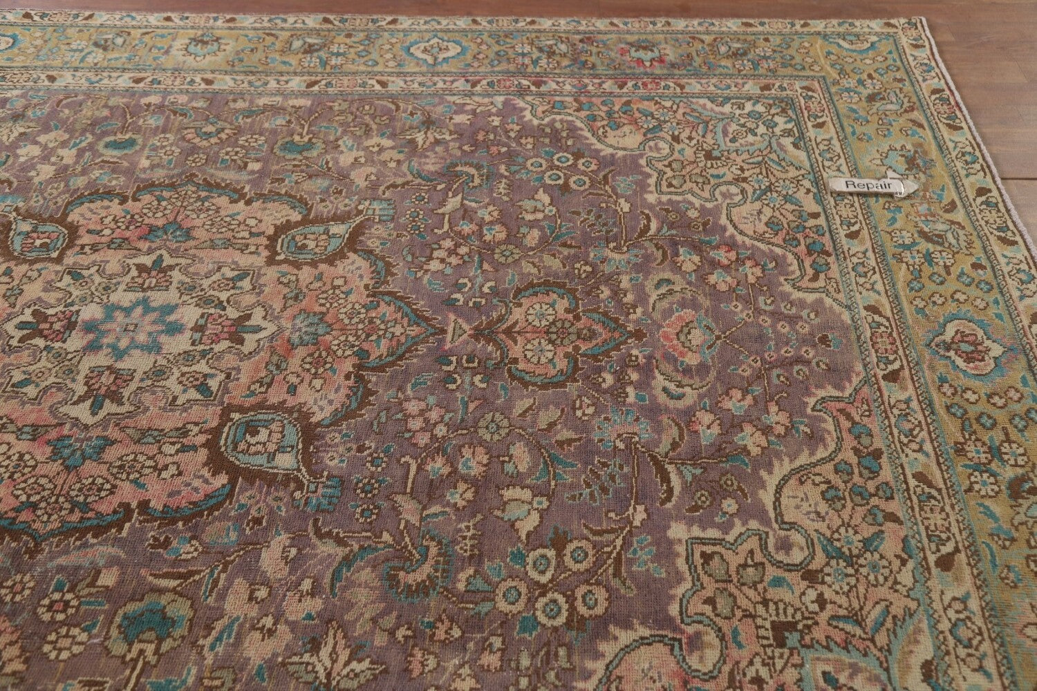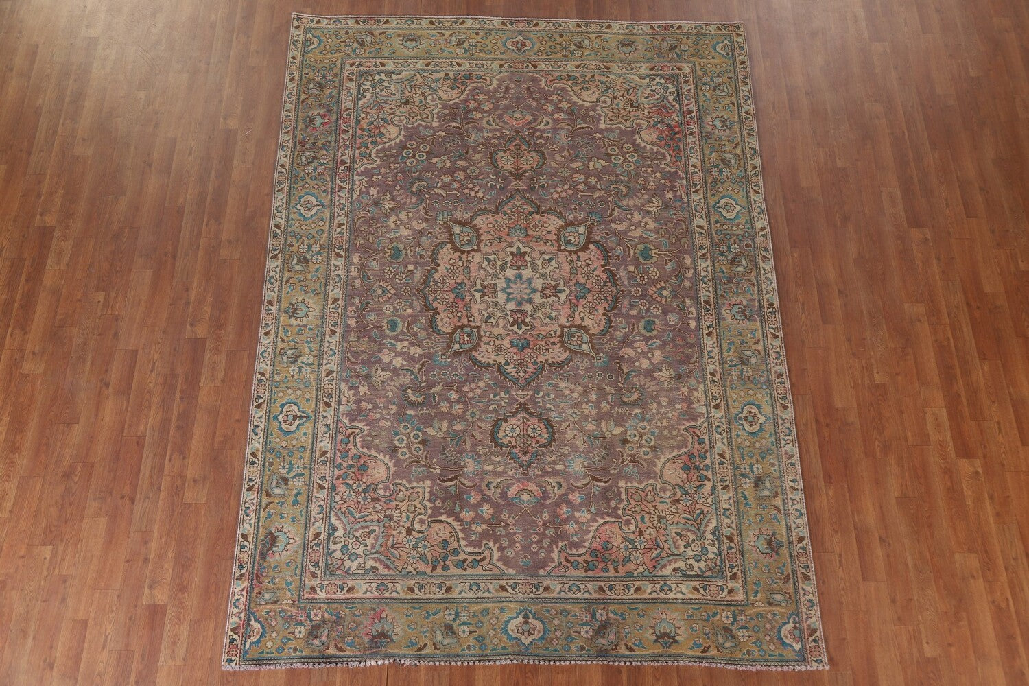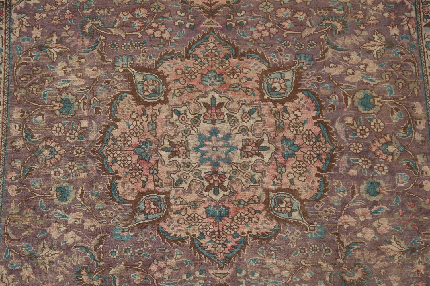 A Beautiful Genuine Persia ( Persia ) Tabriz rug is Hand Knotted by skillful weavers in Persia ( Persia ) with 100% Wool Material. This rug is in Very Good (Low Pile-Repair) condition. dimensions are 9' 3'' X 6' 7'' in foot and 282 X 201 in centimeter. the primary color is Purples.