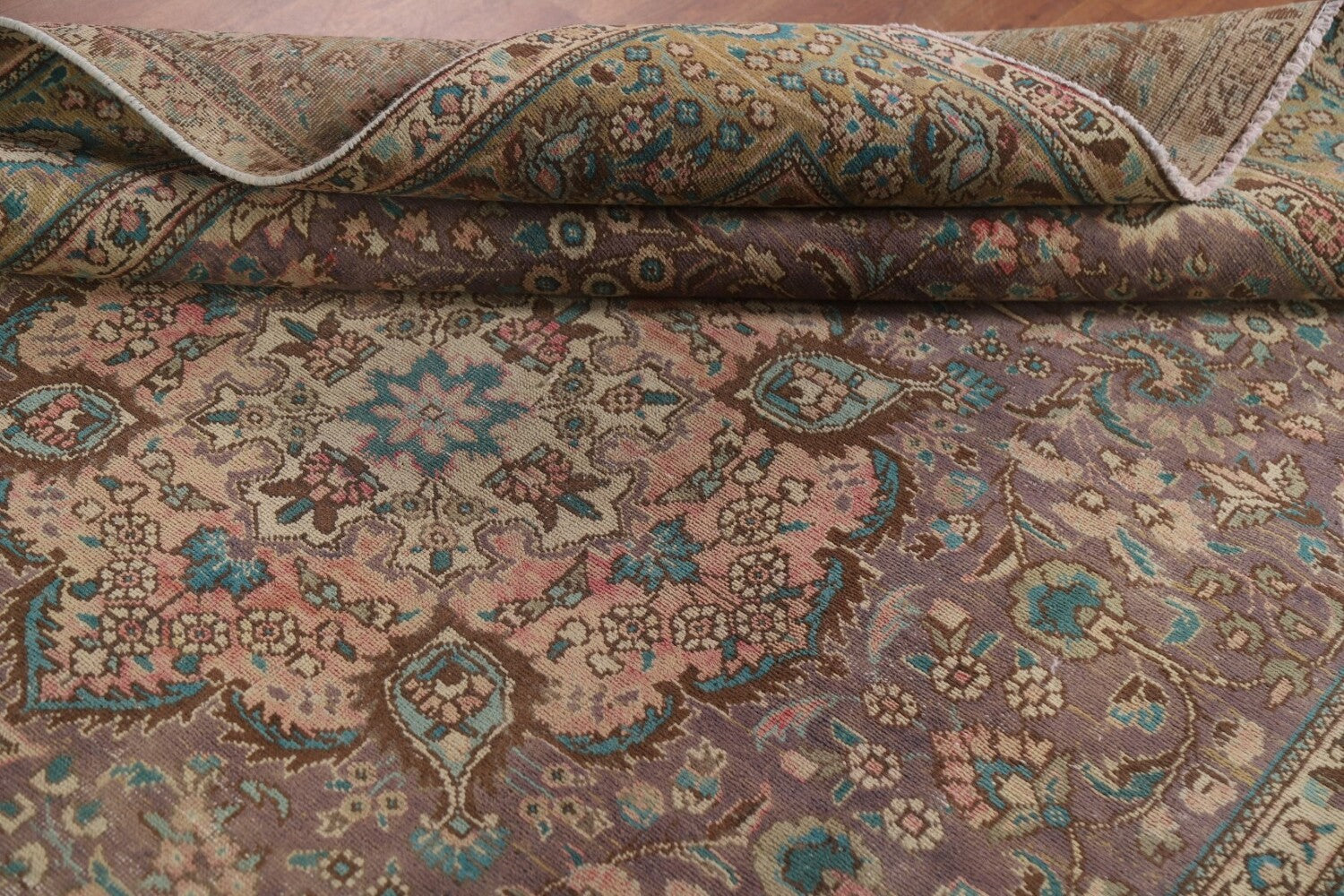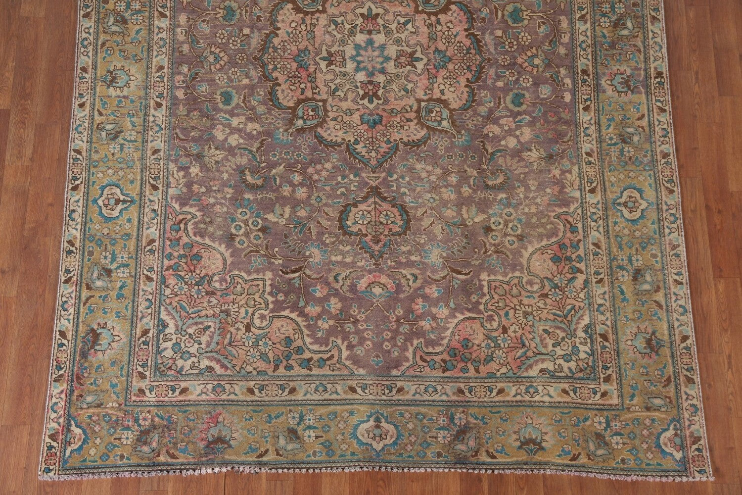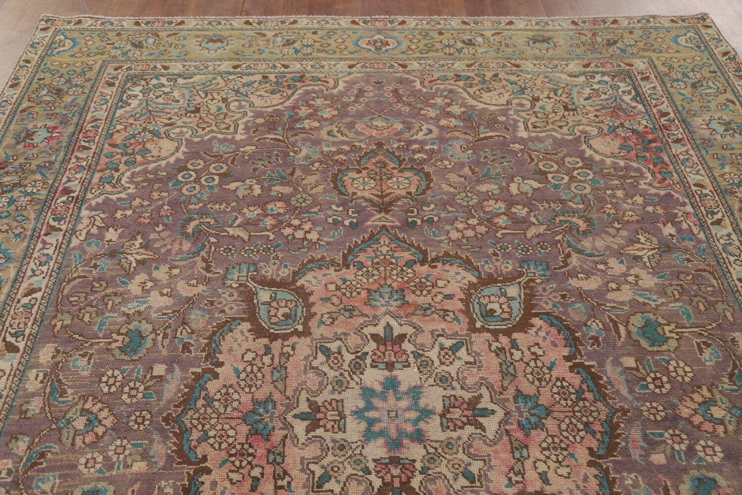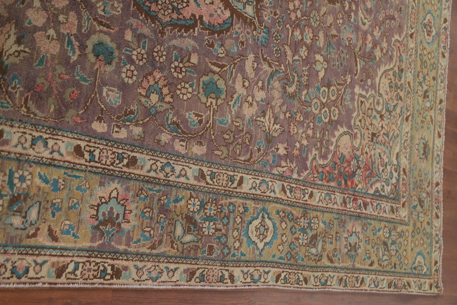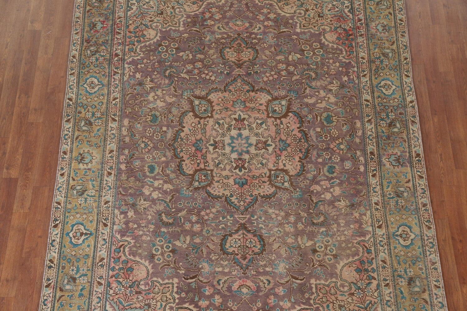 A Beautiful Genuine Persia ( Persia ) Tabriz rug is Hand Knotted by skillful weavers in Persia ( Persia ) with 100% Wool Material. This rug is in Very Good (Low Pile-Repair) condition. dimensions are 9' 3'' X 6' 7'' in foot and 282 X 201 in centimeter. the primary color is Purples.