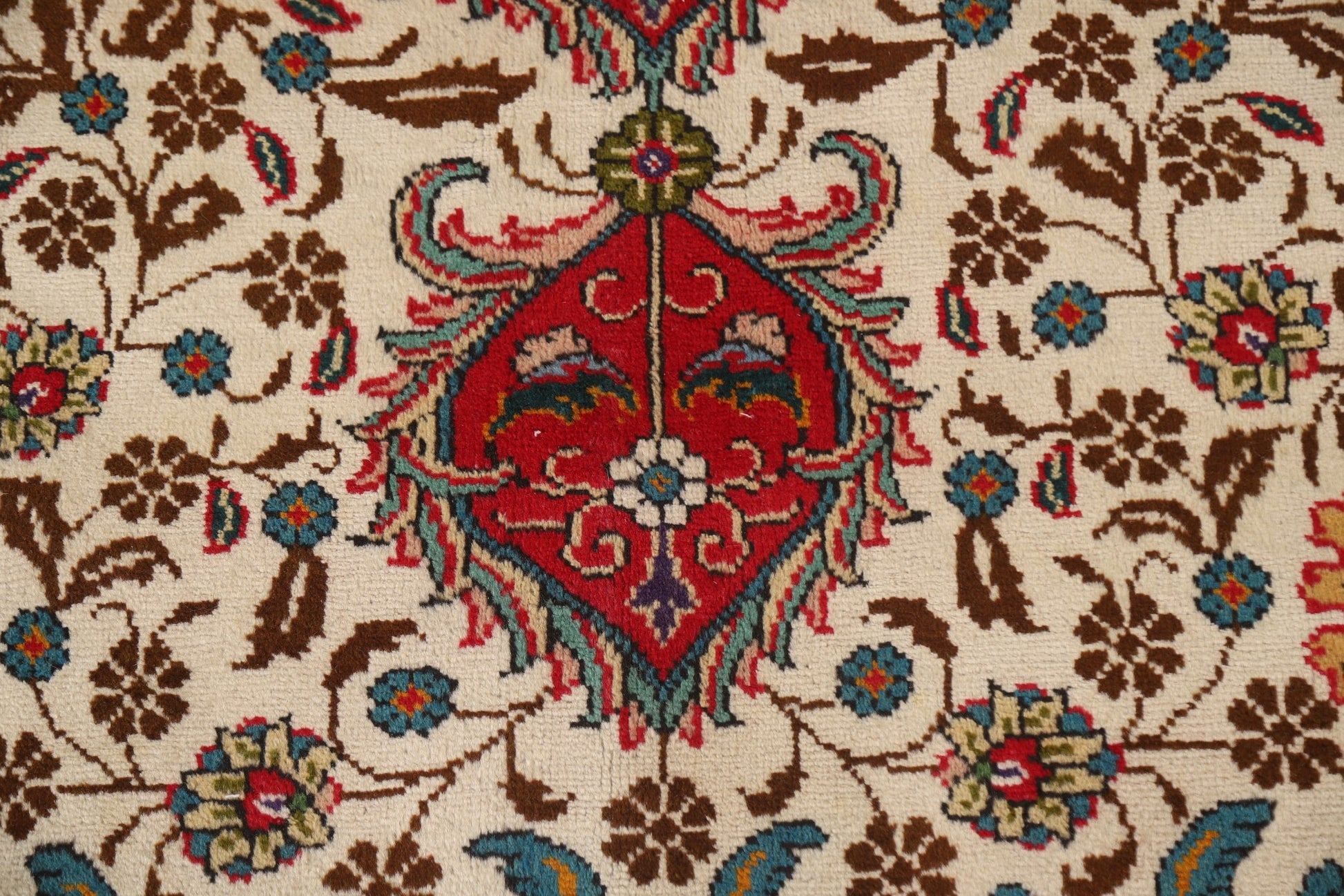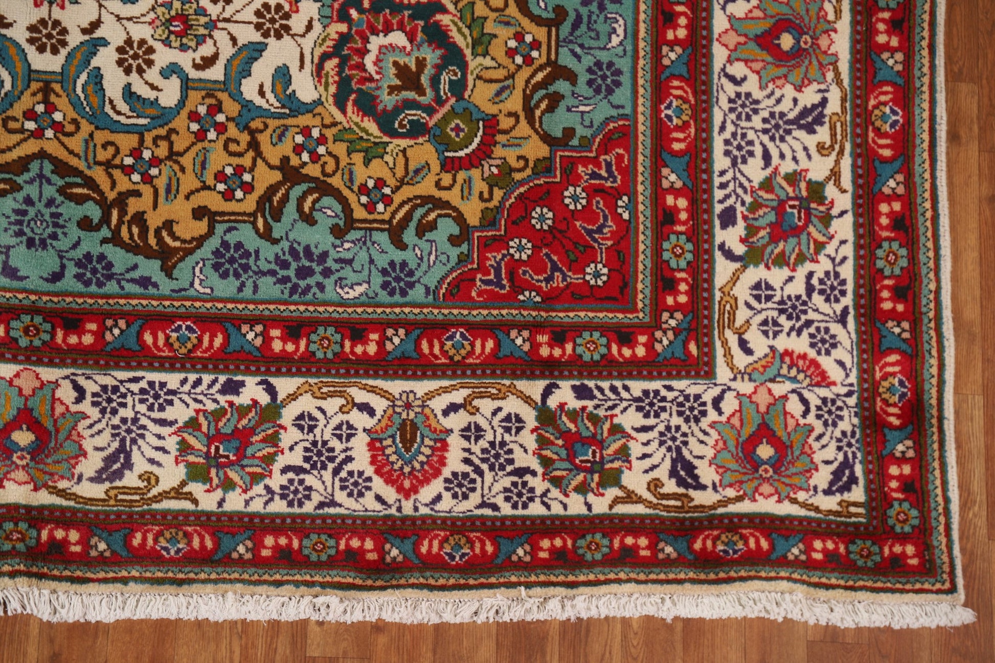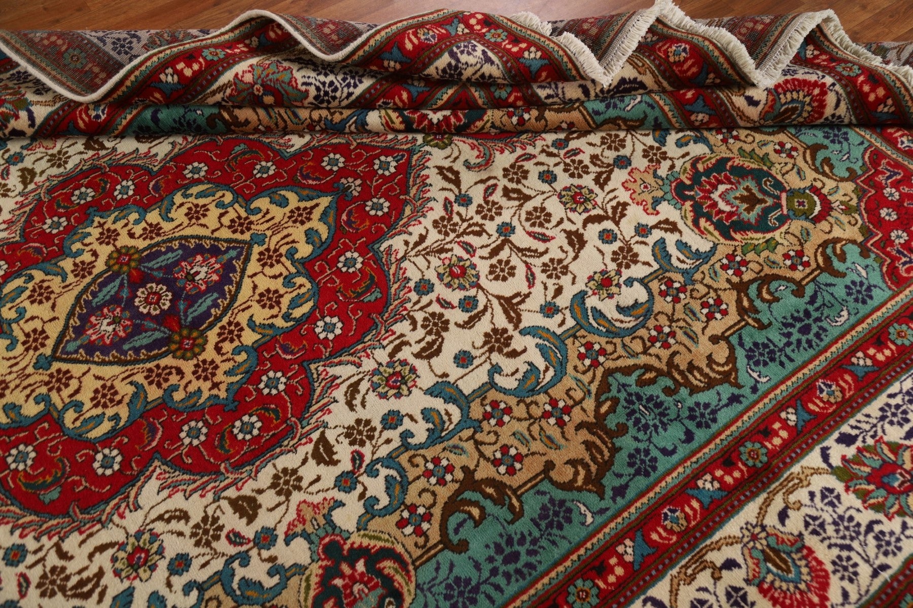 A Beautiful Genuine Persia ( Persia ) Tabriz rug is Hand Knotted by skillful weavers in Persia ( Persia ) with 100% Wool Material. This rug is in Very Good condition. dimensions are 11' 5'' X 8' 3'' in foot and 348 X 251 in centimeter. the primary color is Beige & Ivories.