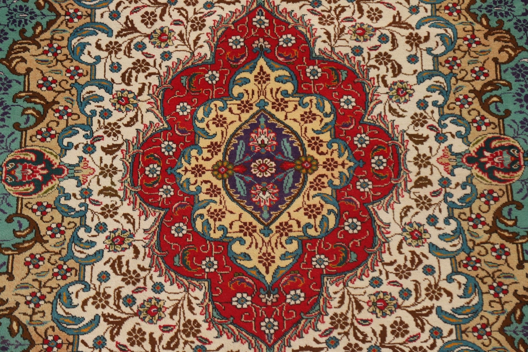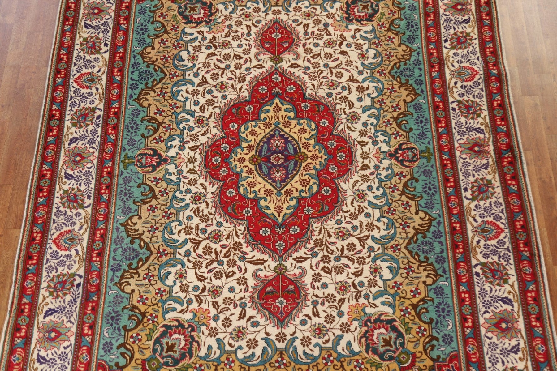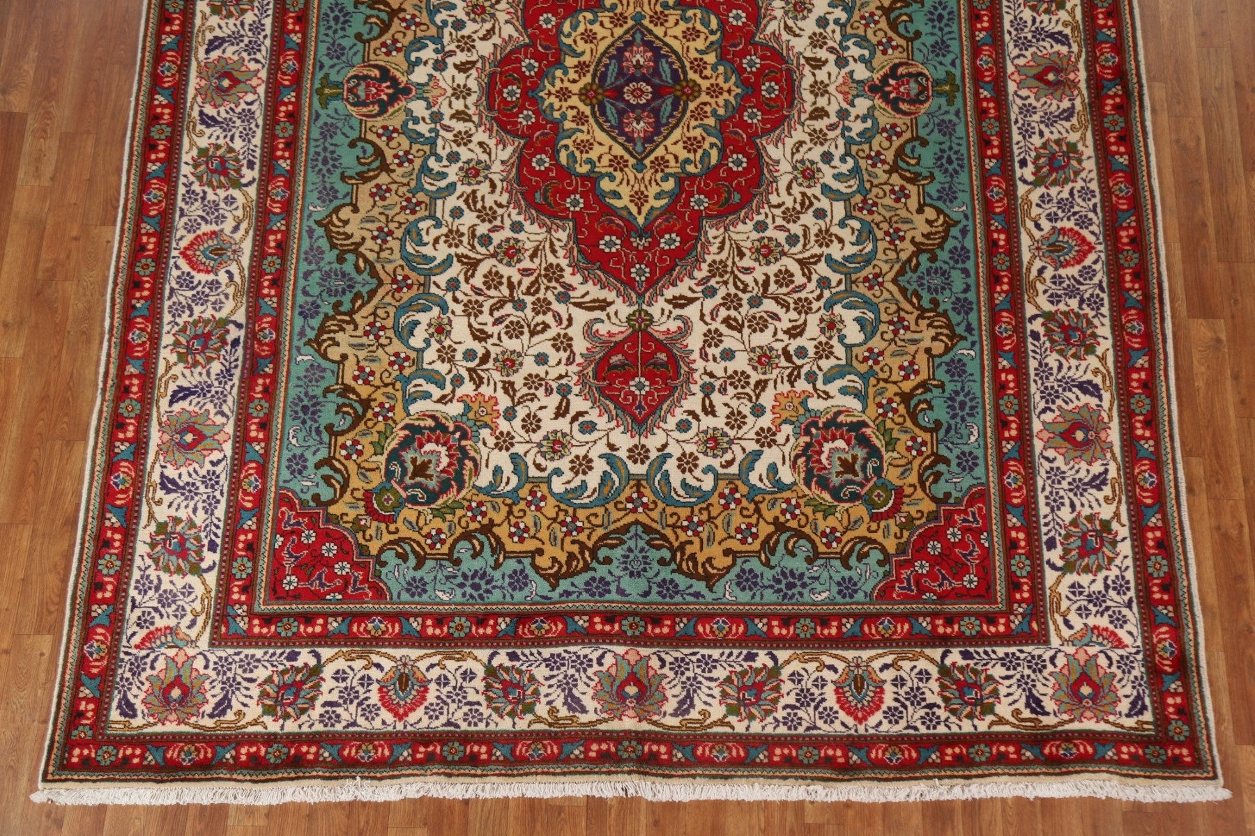 A Beautiful Genuine Persia ( Persia ) Tabriz rug is Hand Knotted by skillful weavers in Persia ( Persia ) with 100% Wool Material. This rug is in Very Good condition. dimensions are 11' 5'' X 8' 3'' in foot and 348 X 251 in centimeter. the primary color is Beige & Ivories.